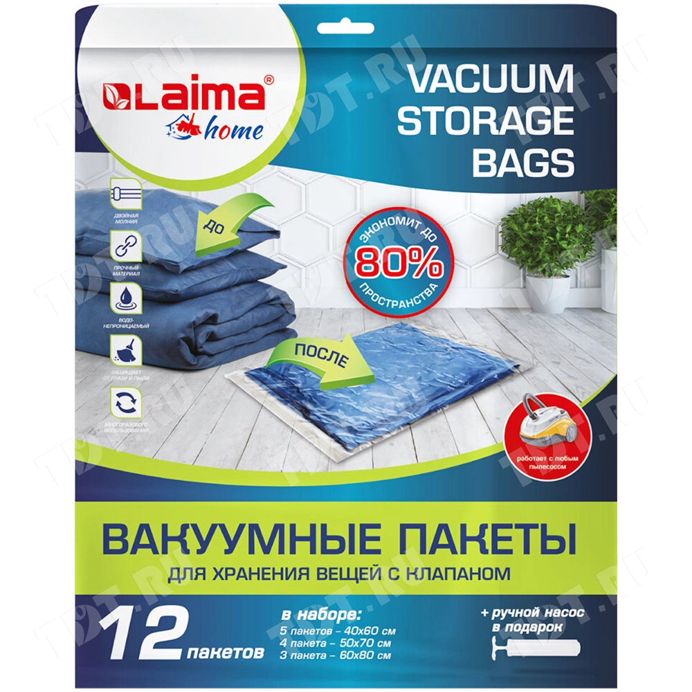 Набор прозрачных вакуумных пакетов Laima Home «КОМПЛЕКТ» для компактного хранения вещей. В комплект входят 12 пакетов:
