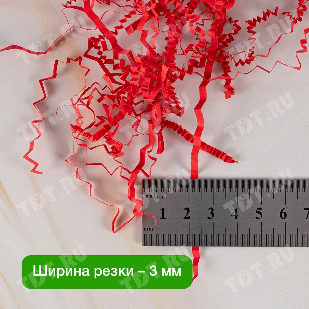 Бумажный подарочный наполнитель «Маковое поле» из цветной бумаги красного цвета, весом 1 кг, плотностью 80 г/м², шириной резки 3 мм. Производится в России.