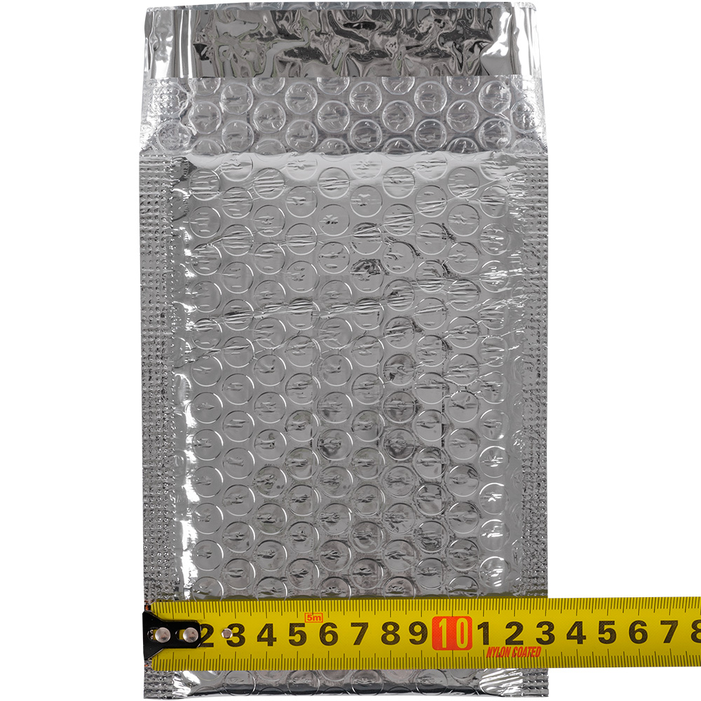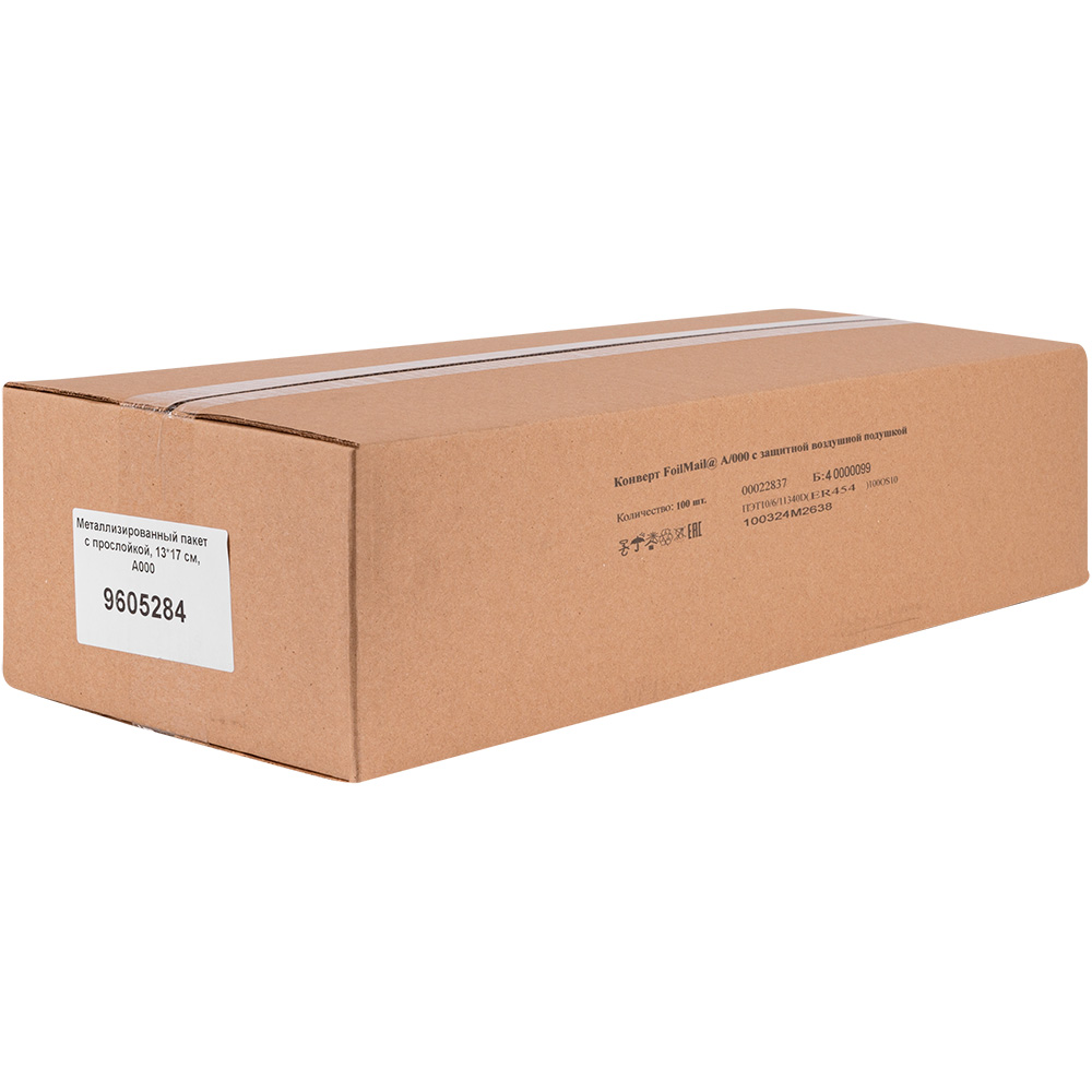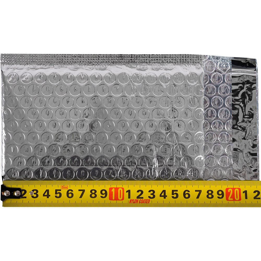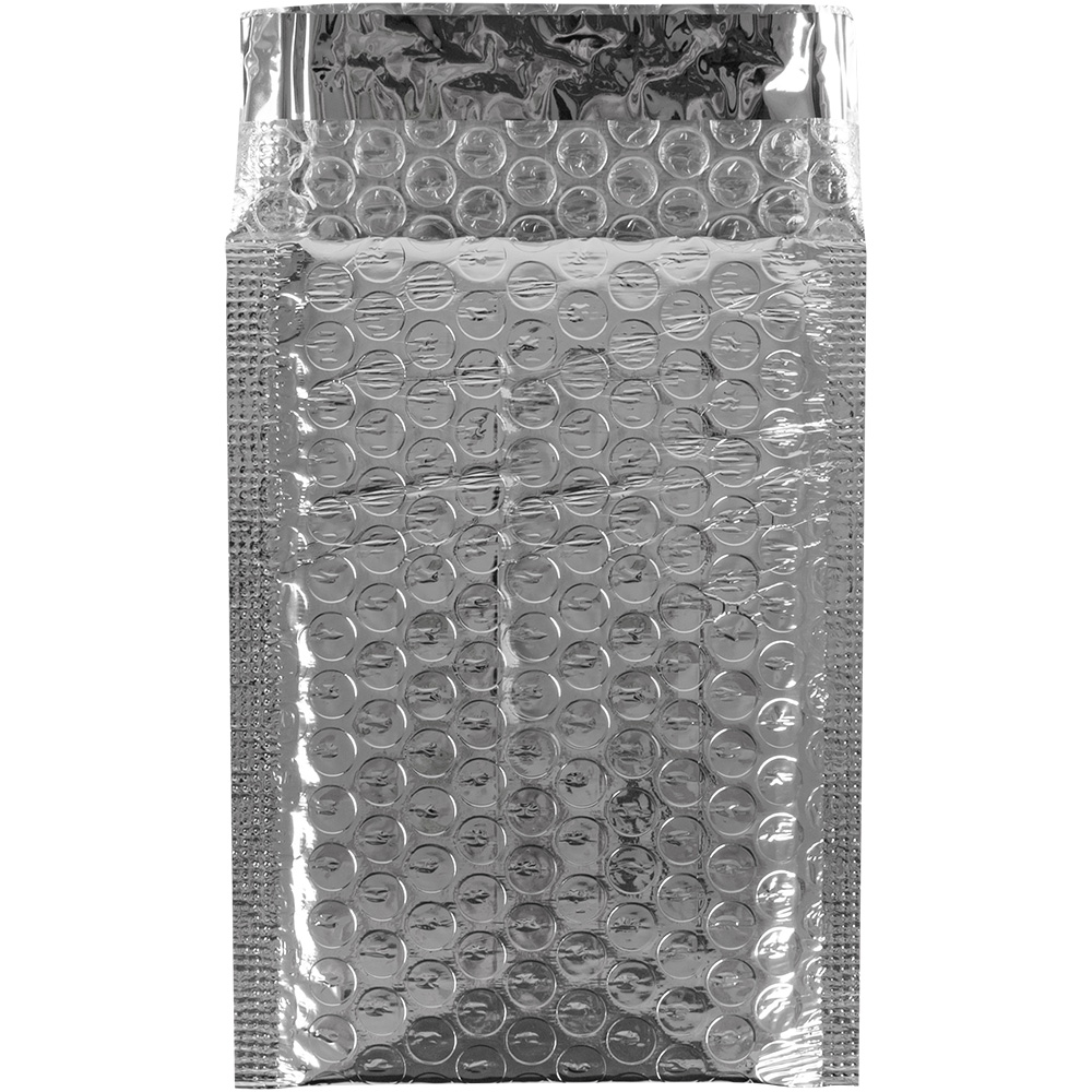 Серебристый металлизированный пакет А/000 с воздушной прослойкой шириной 13 см и длиной 17 см. Внутренние размеры — 11*16 см. Изготовлен из лавсана (внешний слой) и полиэтилена (внутренняя вставка). Производится в России.