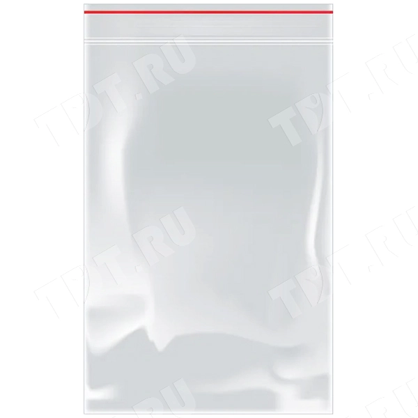 Пакеты Zip-Lock, прозрачного цвета с красной полосой, длиной 150 мм, шириной 100 мм, толщиной 22-25 мкм, в упаковке по 100 штук. Материал — полиэтилен высокого давления (ПВД). Производятся в Китае.