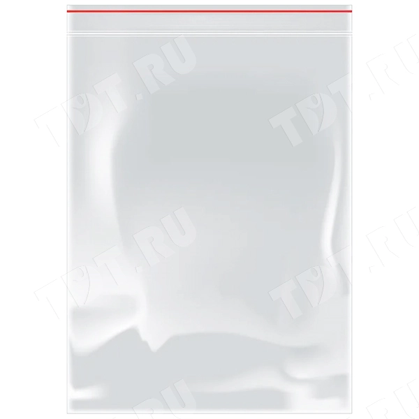 Пакеты Zip-Lock, прозрачного цвета с красной полосой, длиной 250 мм, шириной 200 мм, толщиной 22-25 мкм, в упаковке по 100 штук. Материал — полиэтилен высокого давления (ПВД). Производятся в Китае.