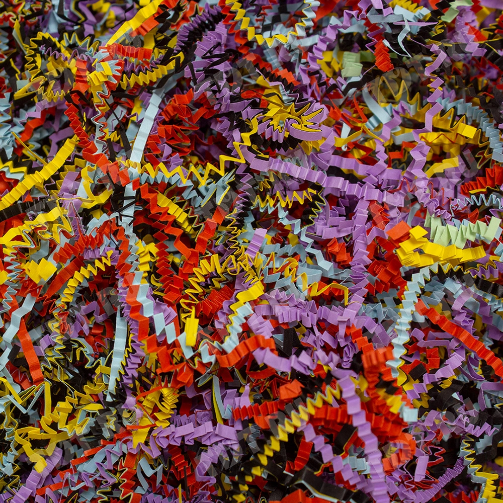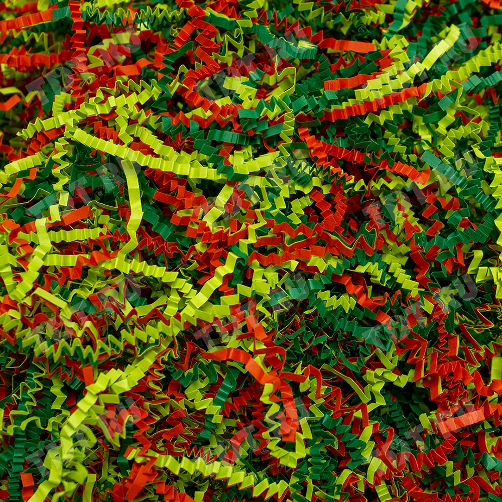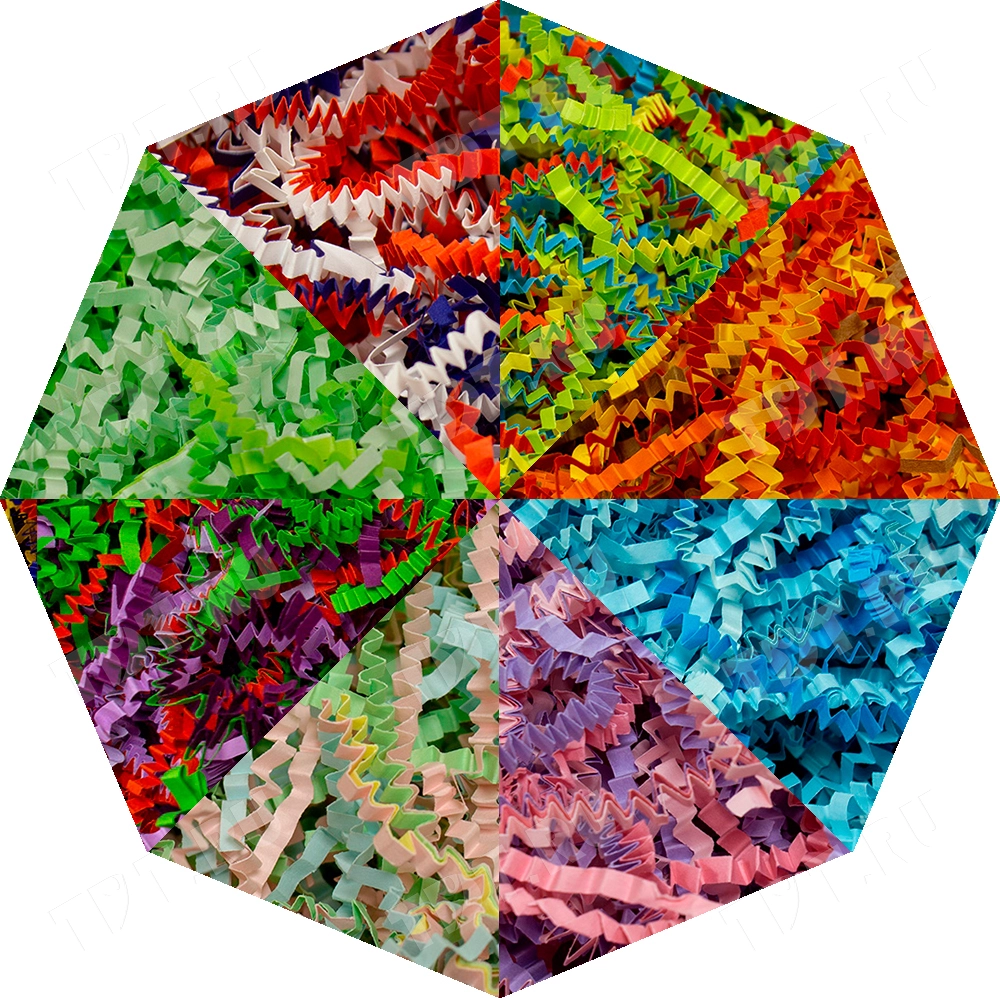 Бумажный подарочный наполнитель «Микс 1» — цвета в ассортименте, весом 50 г, плотностью 80 г/м², шириной резки 3 мм. Производится в России.