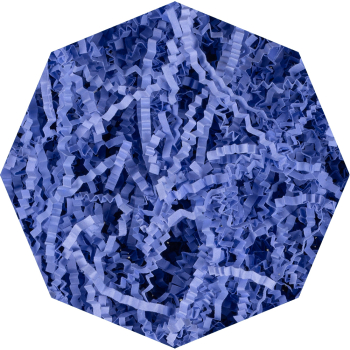 Бумажный подарочный наполнитель «Колокольчики» из цветной бумаги, сине-фиолетовый, весом 1 кг, плотностью 80 г/м², шириной резки 3 мм. Производится в России.