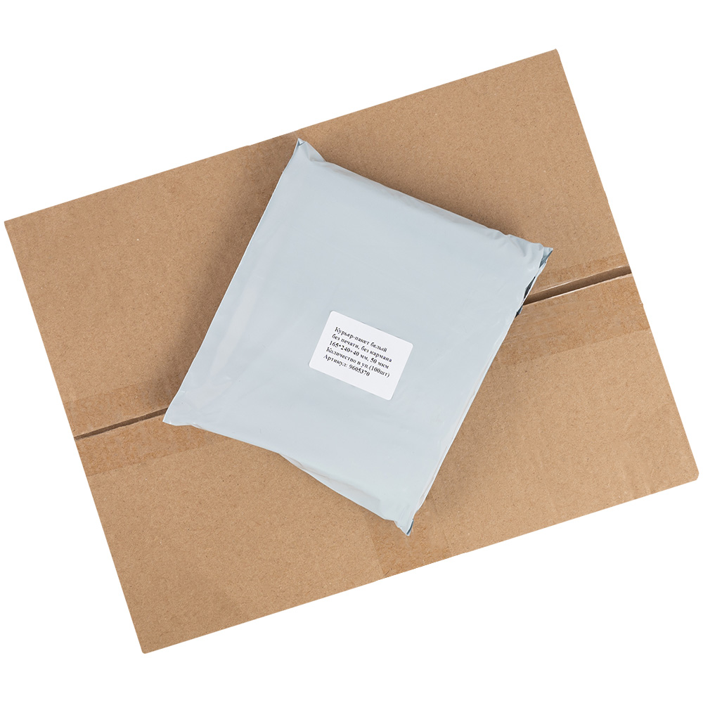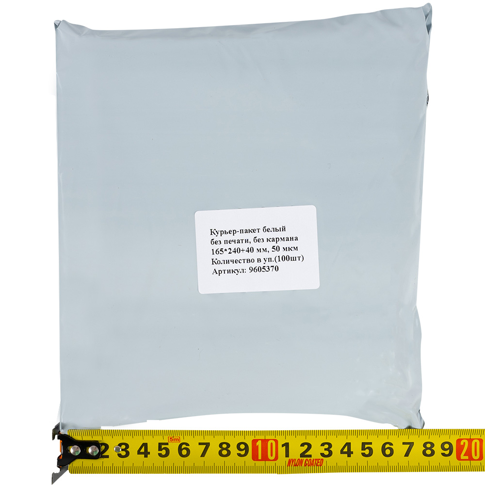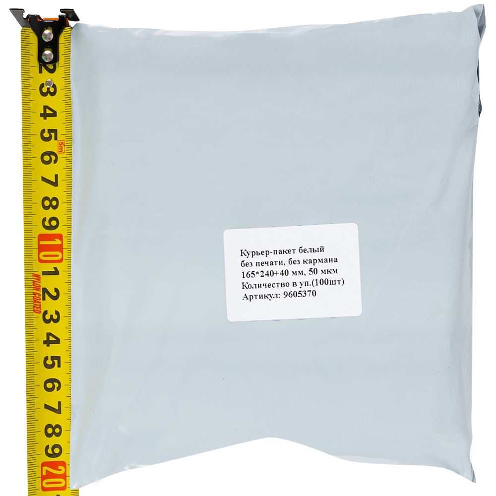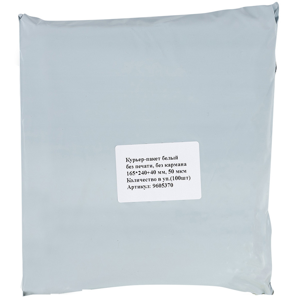 Курьер-пакет белый без печати, без кармана, 165*240+40 мм, 50 мкм, 100 шт.