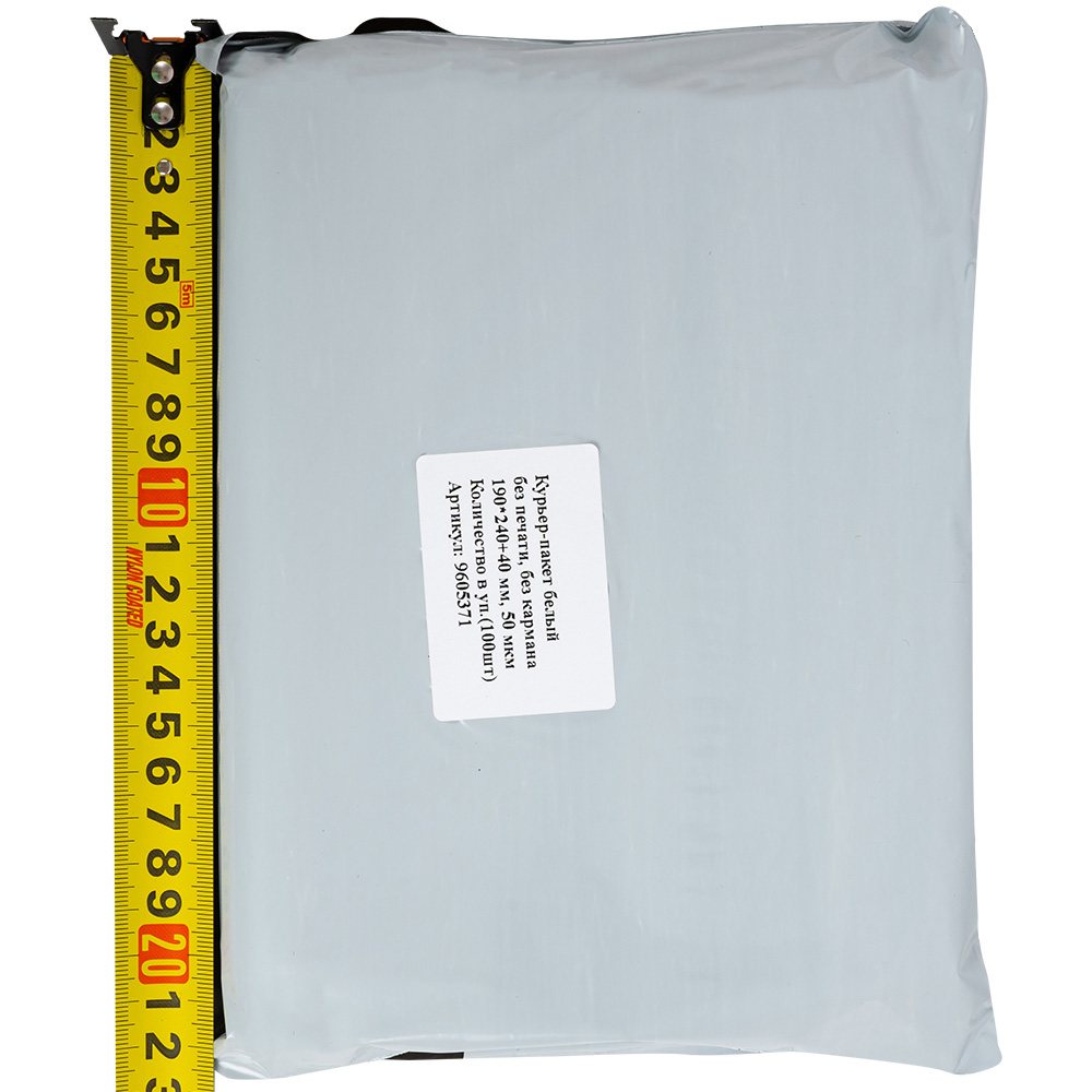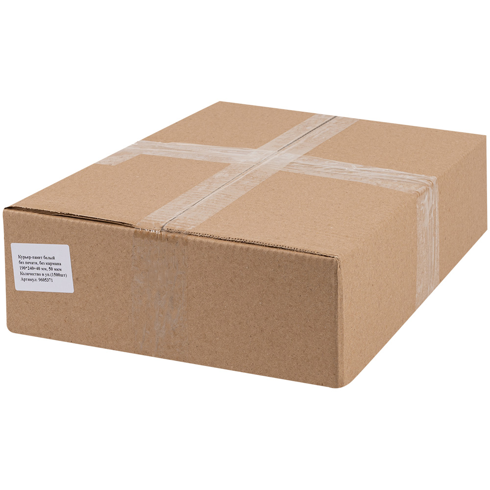 Курьер-пакет белый без печати, без кармана, 190*240+40 мм, 50 мкм, 100 шт.