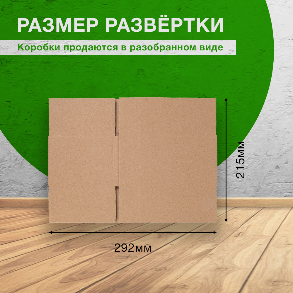 Картонный короб СДЭК тип «XS» бурого цвета, длиной 170 мм, шириной 120 мм и высотой 90 мм. Изготовлен из трехслойного картона марки Т-21 В. Полезный объём — 1.84 л. В упаковке 25 штук.