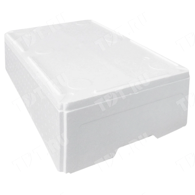 Пищевые термоконтейнеры FB-025 с крышкой, объемом 25 л, длиной 610 мм, шириной 350 мм, высотой без учета крышки 164 мм. Материал: пенопласт. Производятся в России.