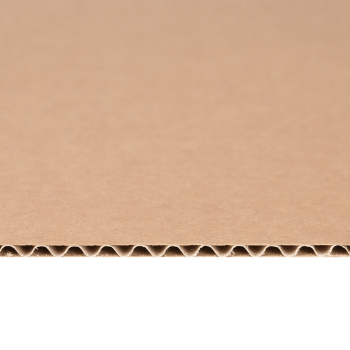 Трехслойный лист гофрокартона бурого цвета, марки Т-21 В, длиной 1200 мм, шириной 1000 мм, толщиной 2.5-3.2 мм, площадью 1.2 м², направление волны вдоль стороны 1200 мм. Производится в России.