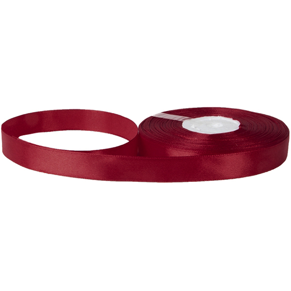 Атласная лента вишневого цвета, шириной 15 мм, намоткой 23 метра. Шелковые ленты предназначены для отделки и декорирования изделий из ткани, оформления праздничных мероприятий, упаковки подарков и цветов.