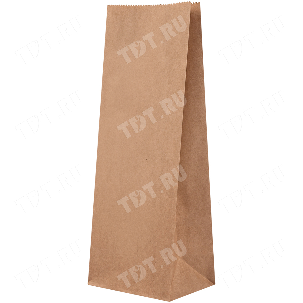 Бумажный крафт пакет с прямоугольным дном без ручек длиной 100 мм, шириной 70 мм, высотой 330 мм, плотностью 70 г/м². Пакеты производятся в России.