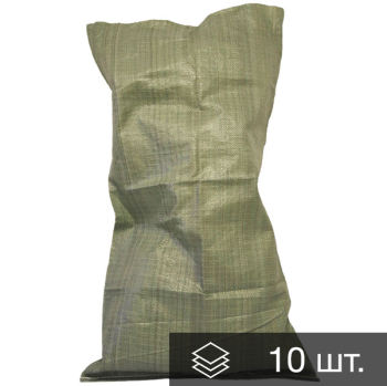 Полипропиленовый мешок, зеленого цвета, длиной 95 см, шириной 55 см. В упаковке – 10 мешков. Материал – полипропилен (ПП). Производится в России.