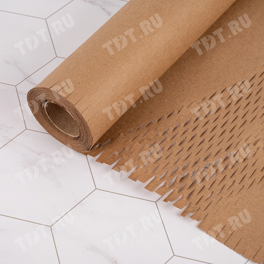 Оберточная сетчатая (сотовая) крафт бумага в рулоне цвета крафт, шириной 50 см, намоткой 10 м, плотностью 80 г/м². Экологически чистый упаковочный материал. Производится в России.