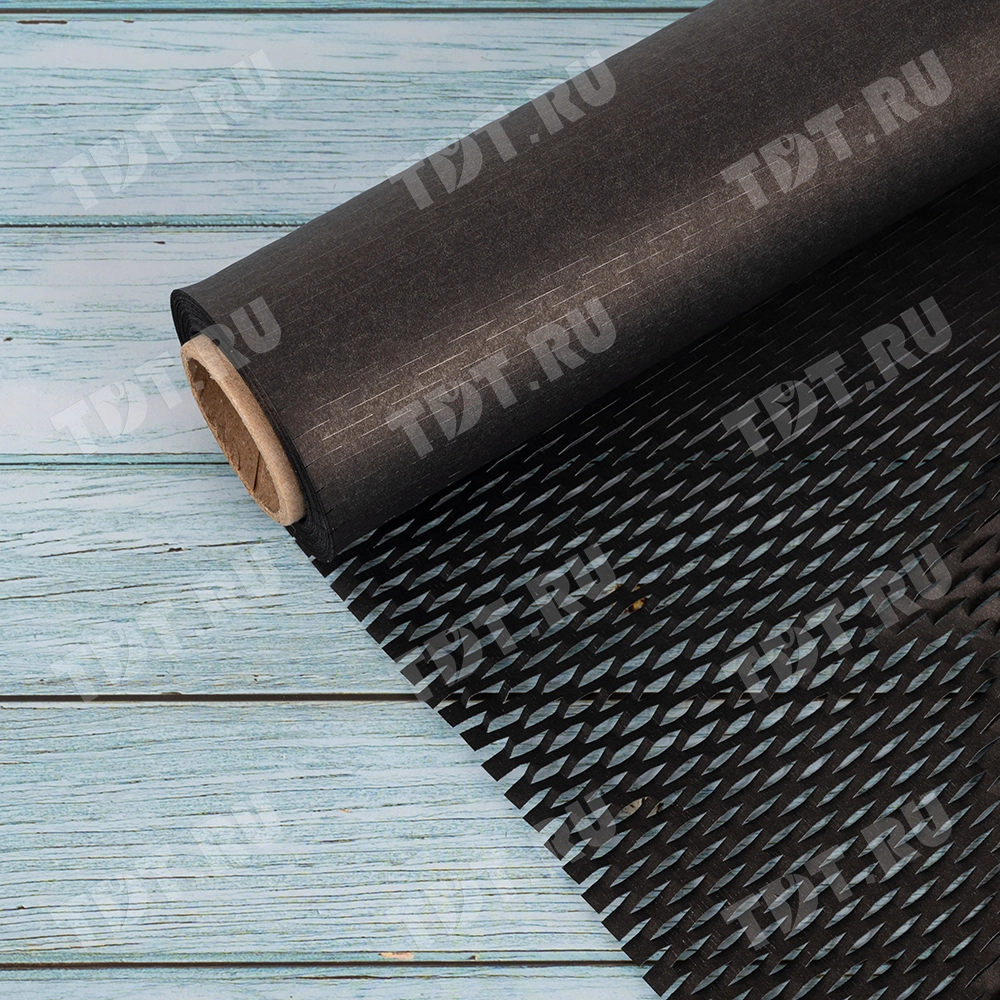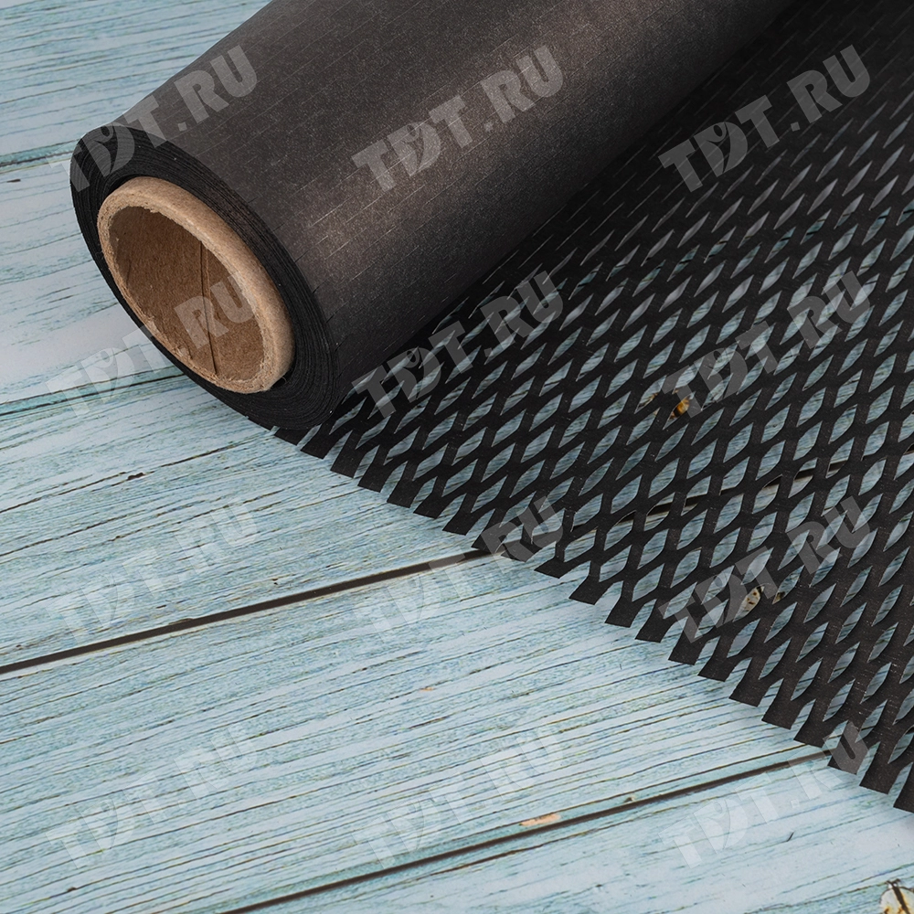 Оберточная сетчатая (сотовая) крафт бумага в рулоне, чёрного цвета, шириной 50 см, намоткой 10 м, плотностью 80 г/м². Экологически чистый упаковочный материал. Производится в России.
