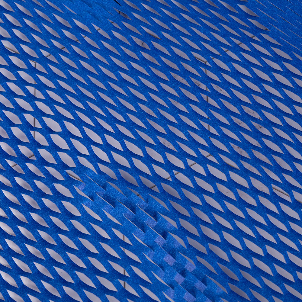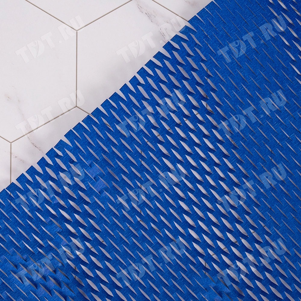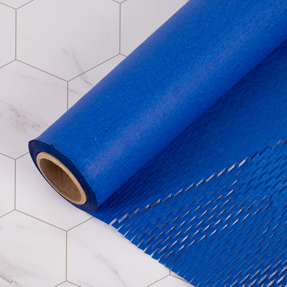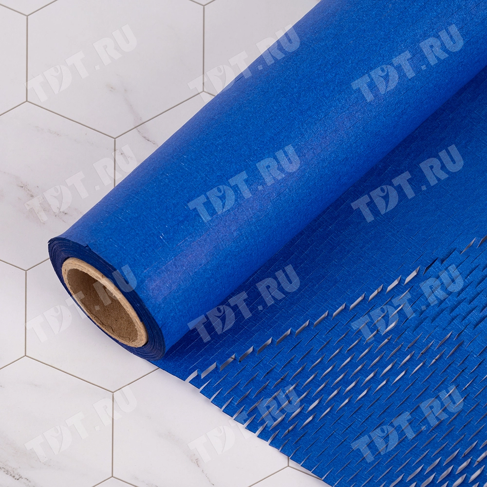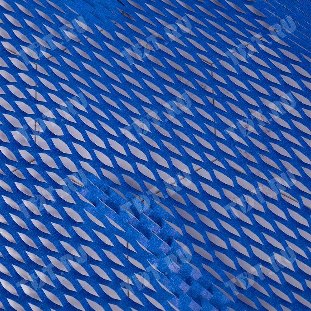 Оберточная сетчатая (сотовая) крафт бумага в рулоне синего цвета, шириной 50 см, намоткой 10 м, плотностью 80 г/м². Экологически чистый упаковочный материал. Производится в России.