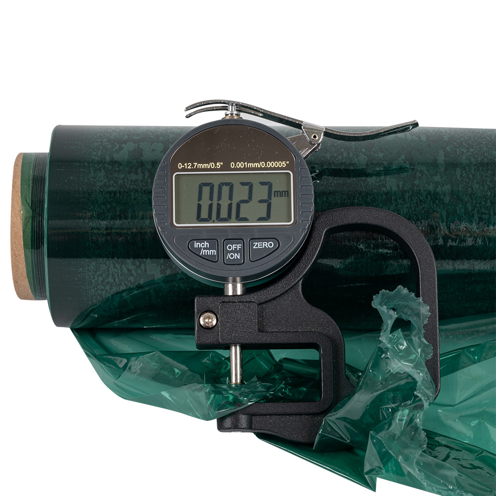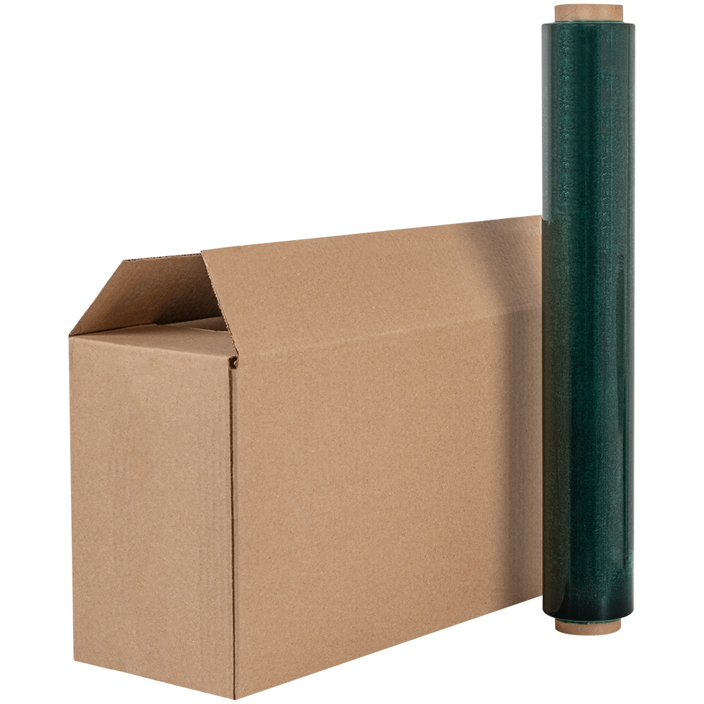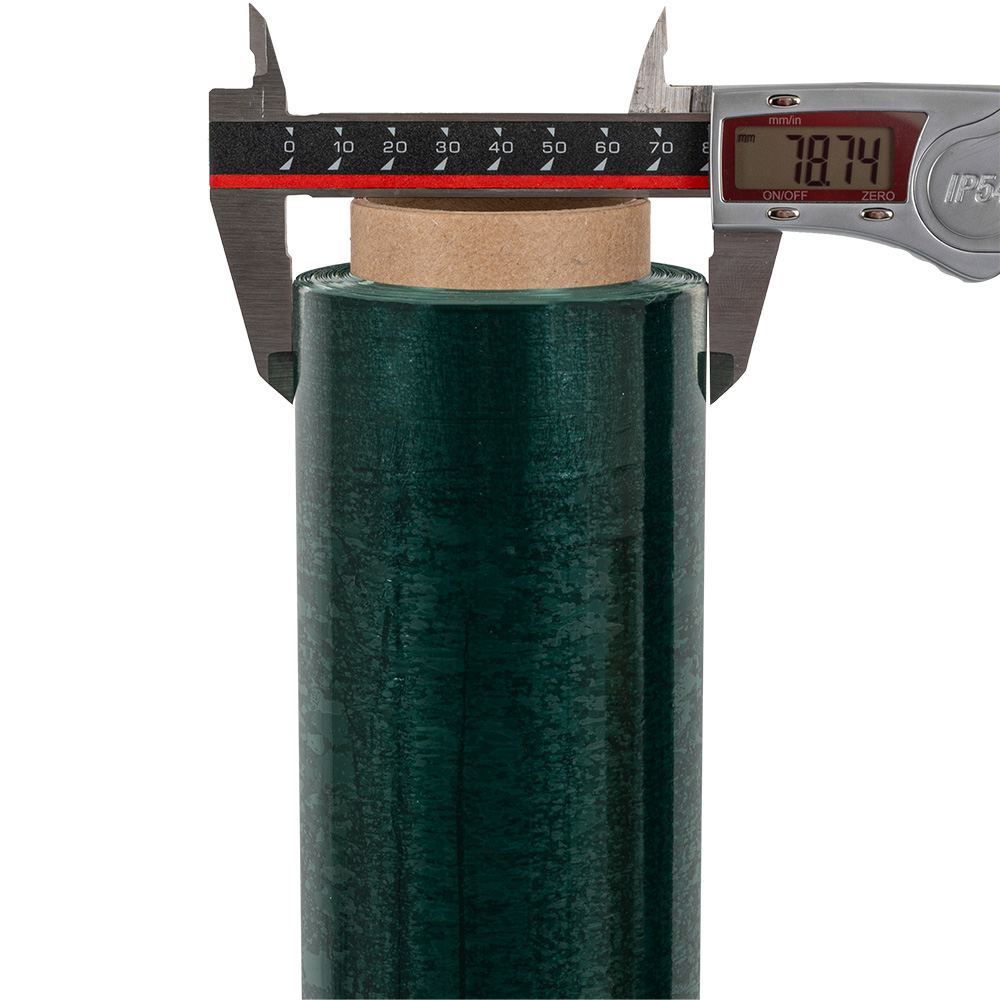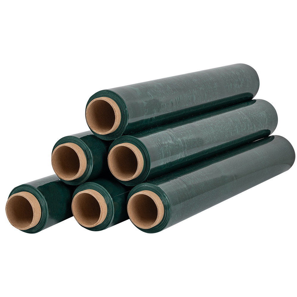 Стрейч пленка «Благородный малахит», темно-зеленая, в рулоне намоткой 100 м, шириной 500 мм, толщиной 20 мкм, вес рулона 1.15 кг, вес втулки 150 г. Изготовлена из первичных гранул LLDPE. Производится в России.