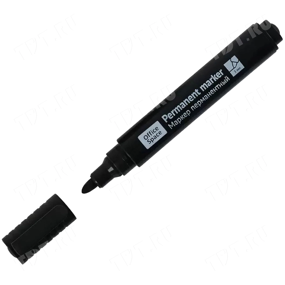 Маркер перманентный OfficeSpace «8004А», спиртовой, толщиной пера 3 мм, черного цвета, пулевидный наконечник. Производится в Китае.