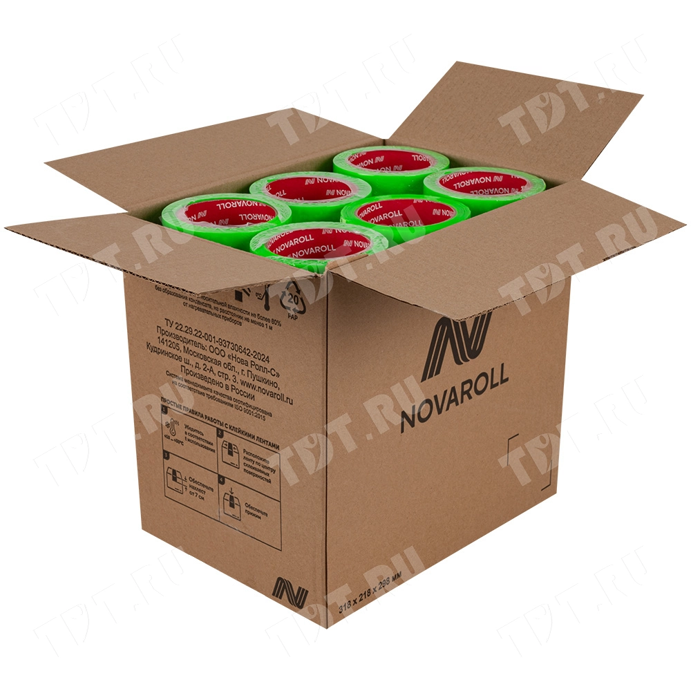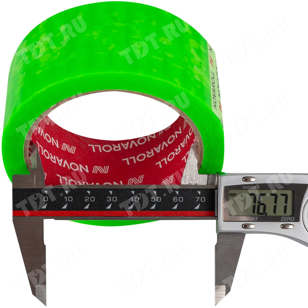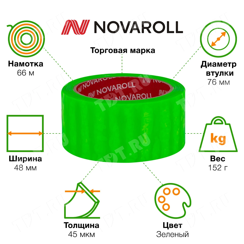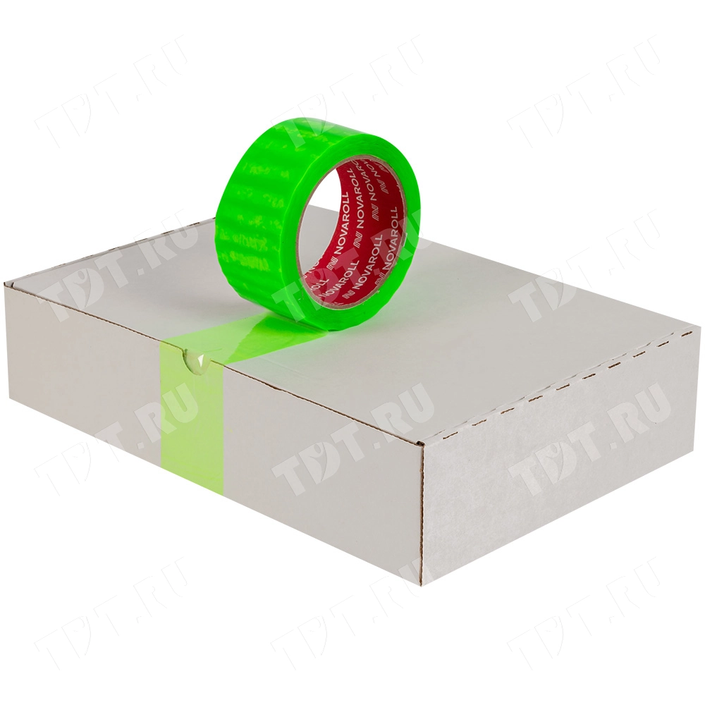 Клейкая лента Nova Roll ID Tape зелёная шириной 48 мм, диаметром втулки 76 мм, намоткой 66 метров, толщиной 45 мкм для ручной упаковки. Лента окрашена флюоресцентной краской, что позволяет защитить товар от несанкционированного вскрытия.Производится в России.