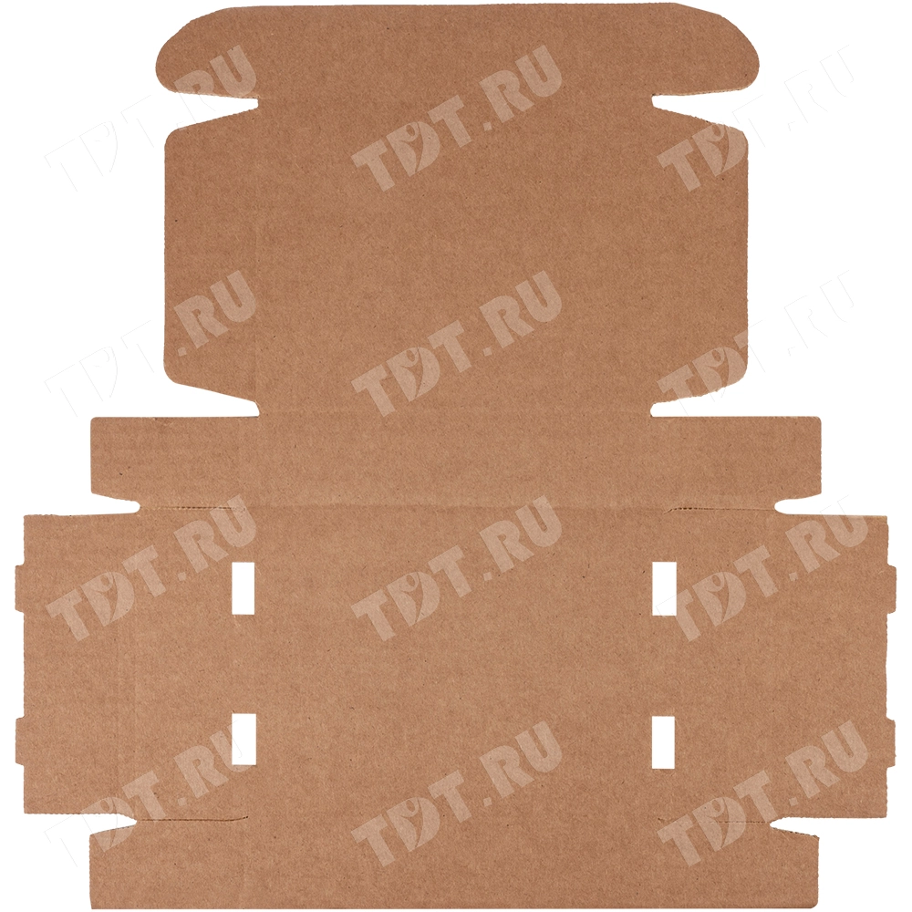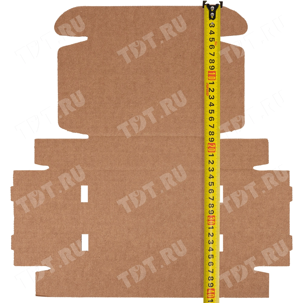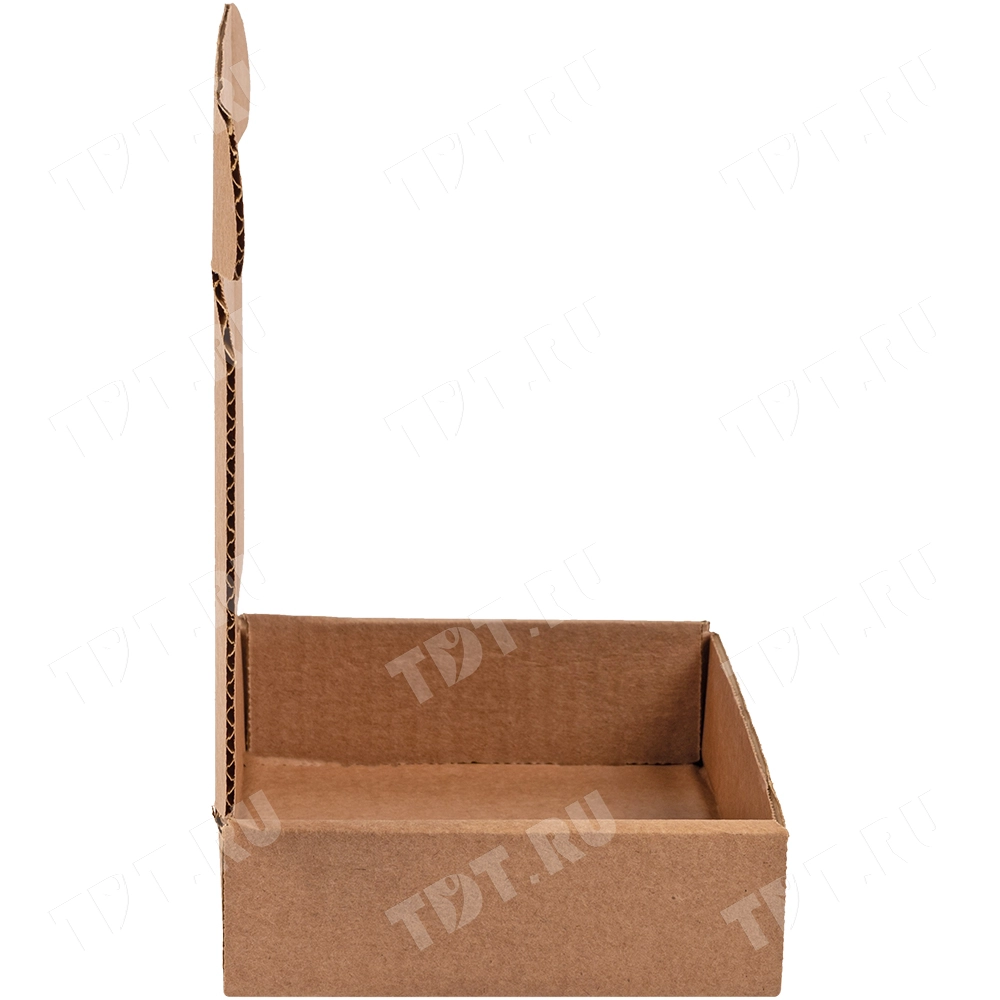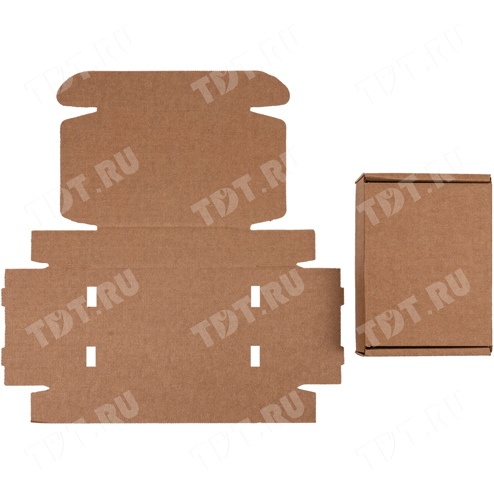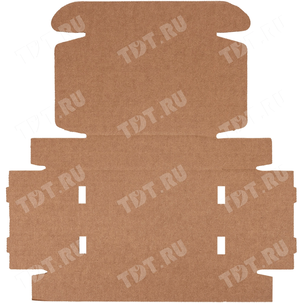 Короб №64/1 бурого цвета, длиной 170 мм, шириной 130 мм и высотой 40 мм. Изготовлен из гофрокартона Т-23 В (макулатура). Полезный объём — 0.9 л.