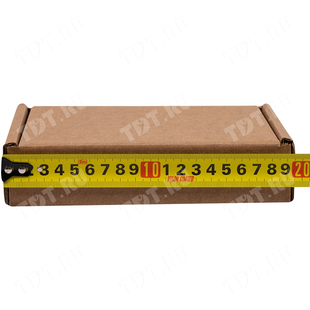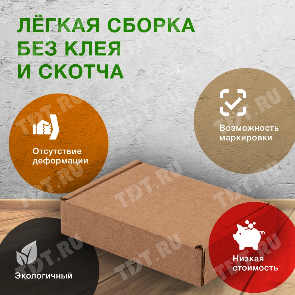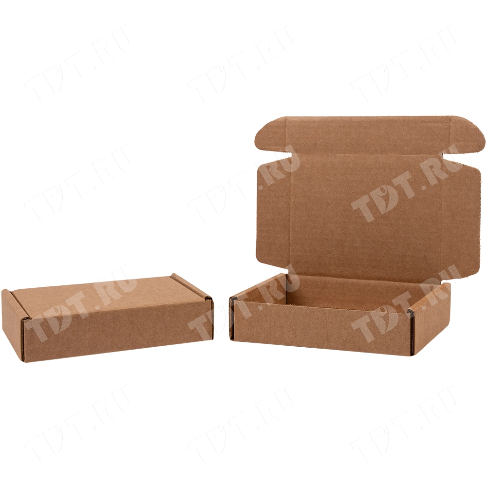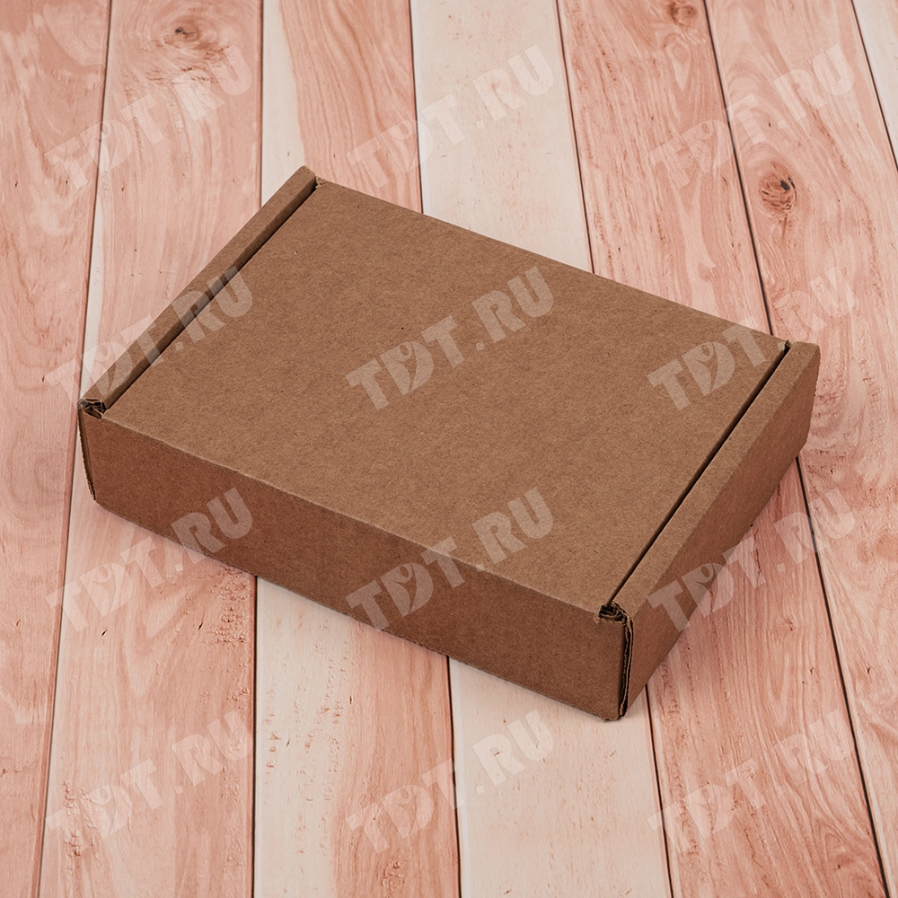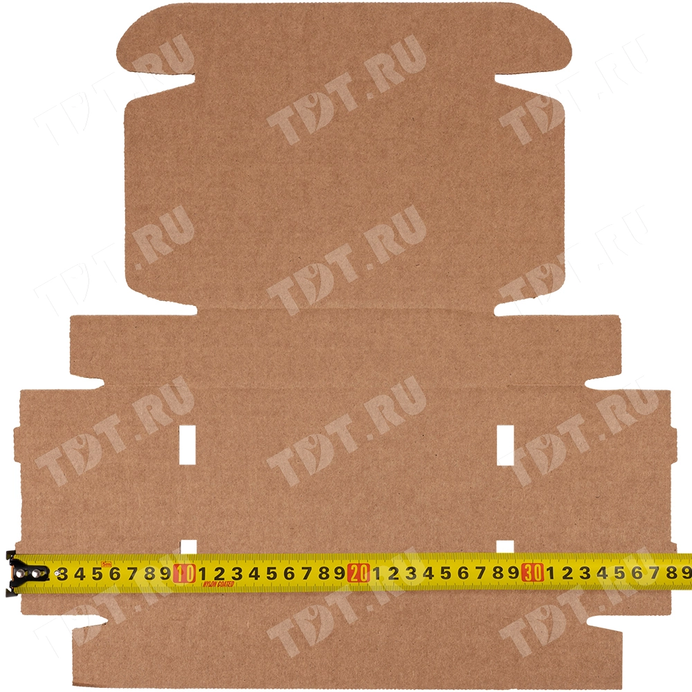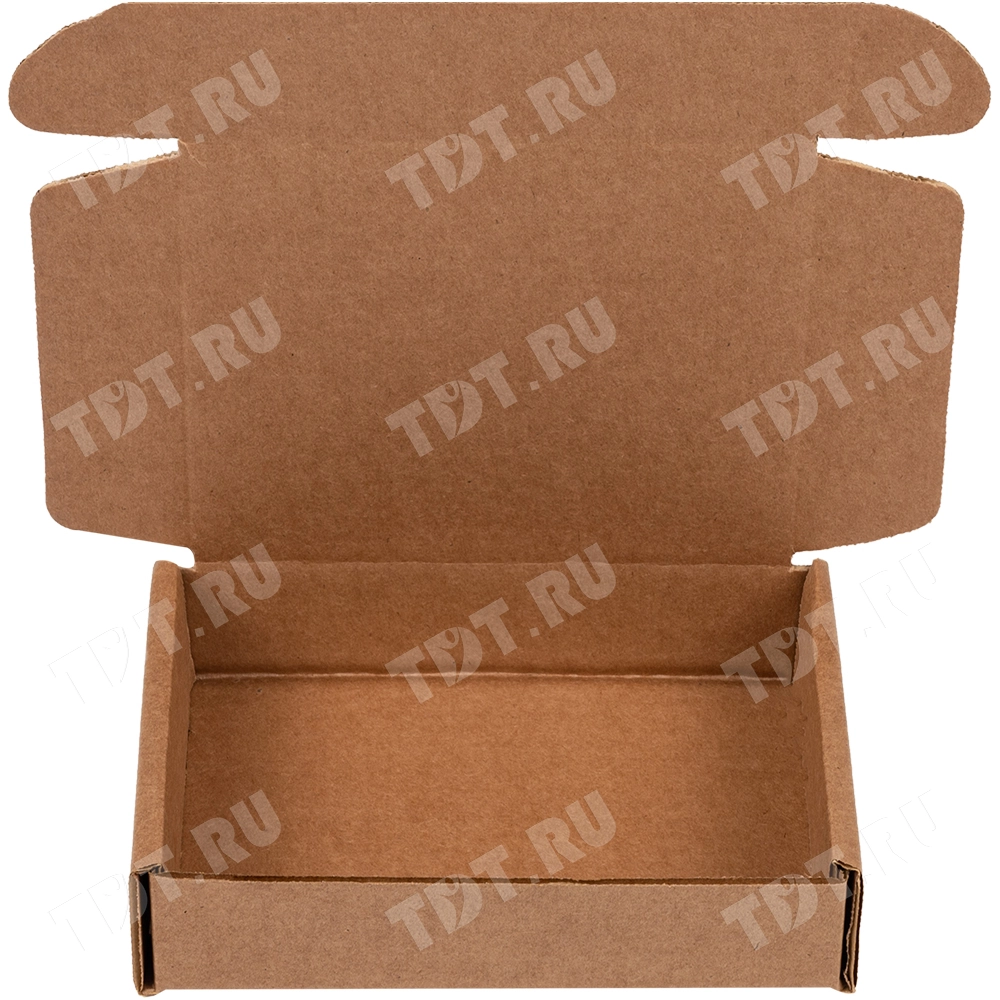 Короб №64/1 бурого цвета, длиной 170 мм, шириной 130 мм и высотой 40 мм. Изготовлен из гофрокартона Т-23 В (макулатура). Полезный объём — 0.9 л.