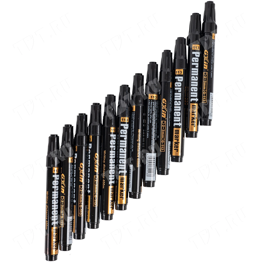 Маркер перманентный Gxin G-113, черный, 3 мм, 12 шт./уп.