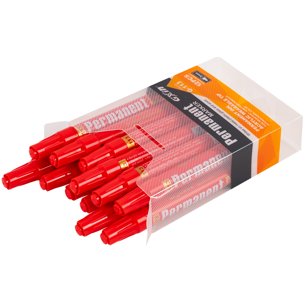 Маркер перманентный Gxin G-113, красный, 3 мм, 12 шт./уп.