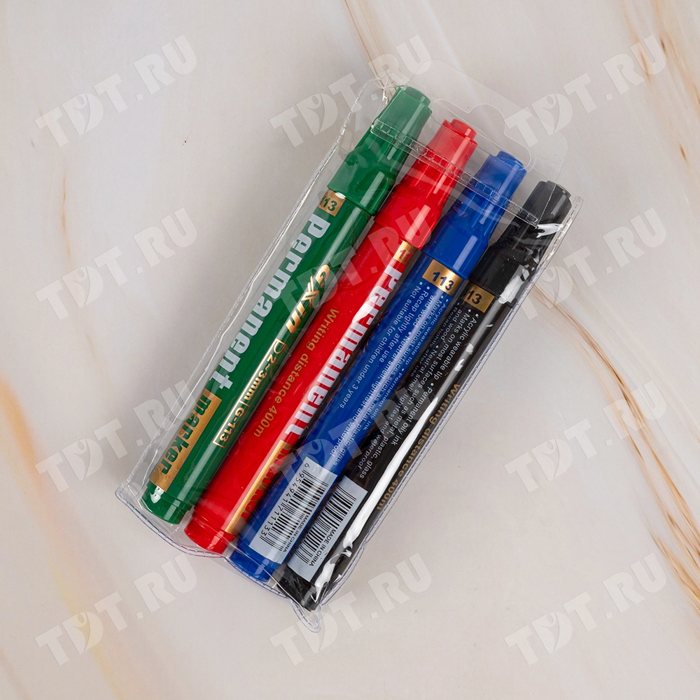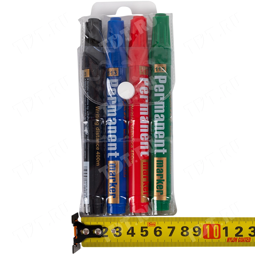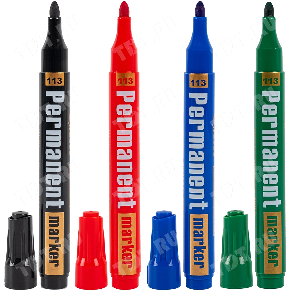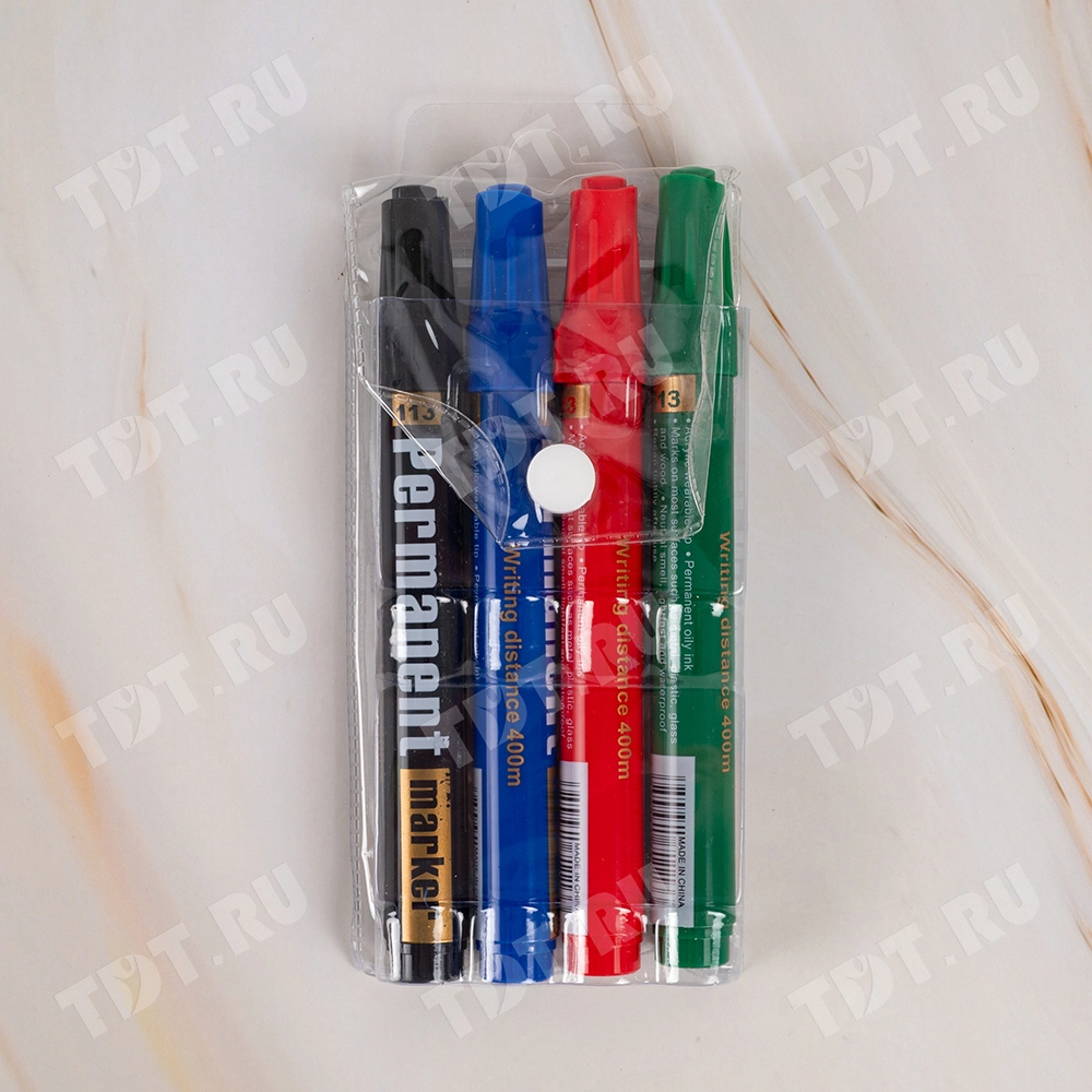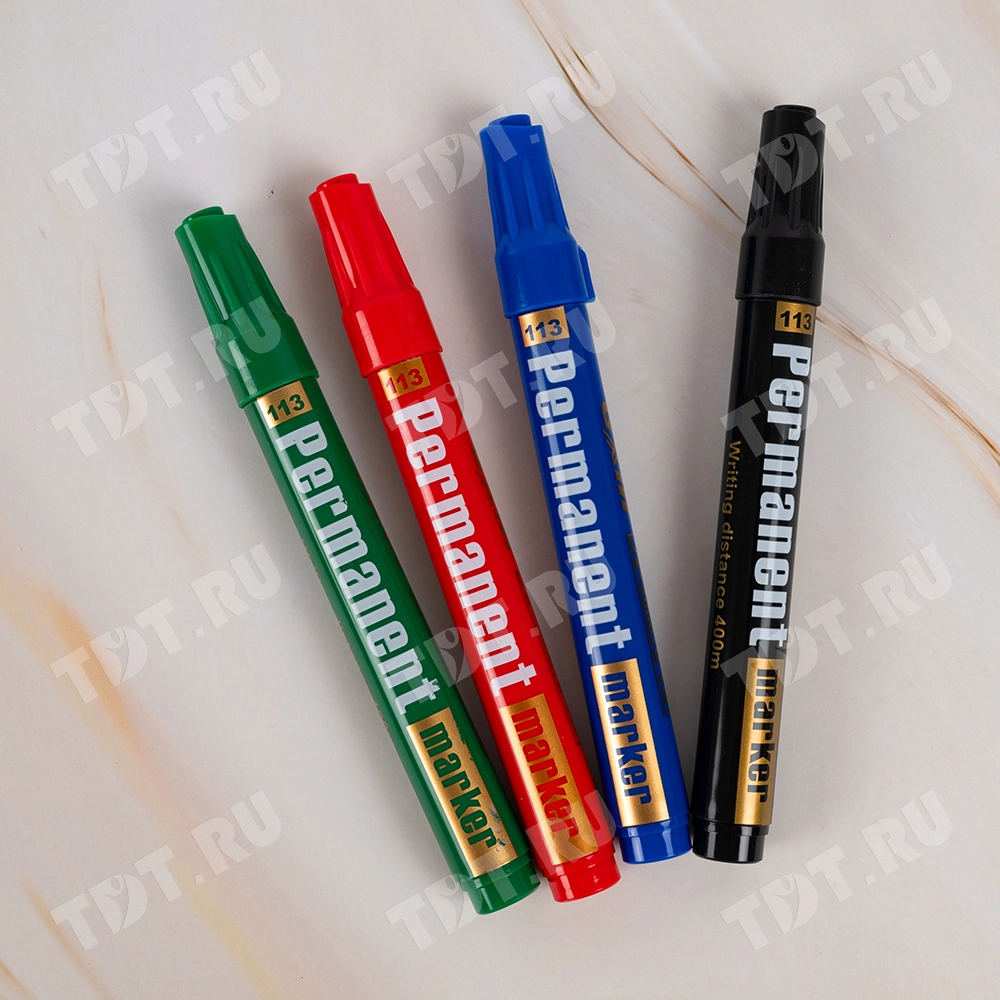Маркер перманентный Gxin G-113-4, на спиртовой основе, толщиной пера 3 мм, пулевидный наконечник. Набор из четырех цветов – черный, красный, синий, зеленый. Продаются упаковками, упаковка – ОПП бокс с европодвесом, вложение в бокс – 4 маркера. Производится в Китае.