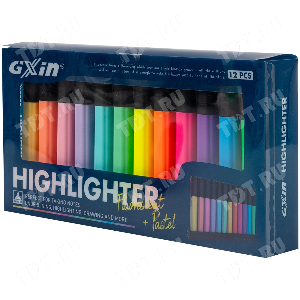 Текстовыделитель Gxin Highlighter G-342, набор 6A+6D цветов, 2-5 мм, 12 шт./уп.