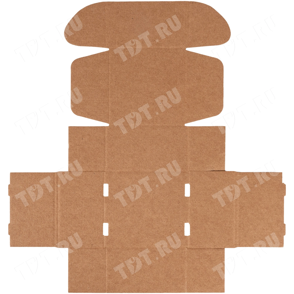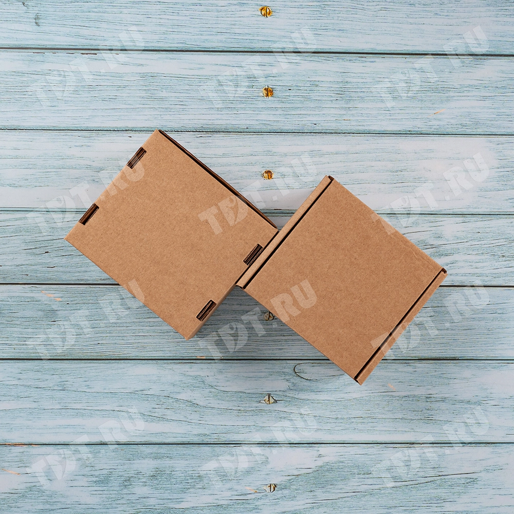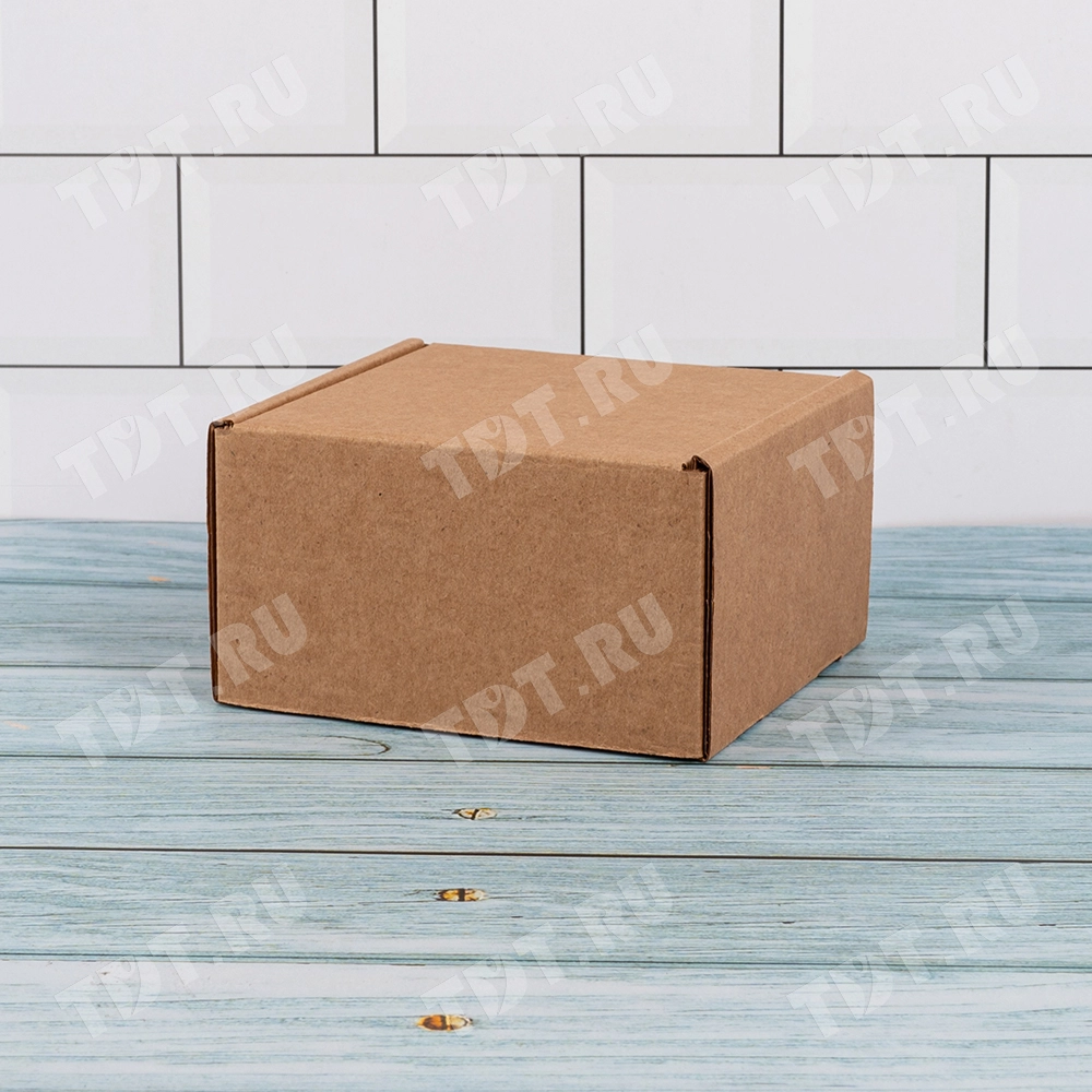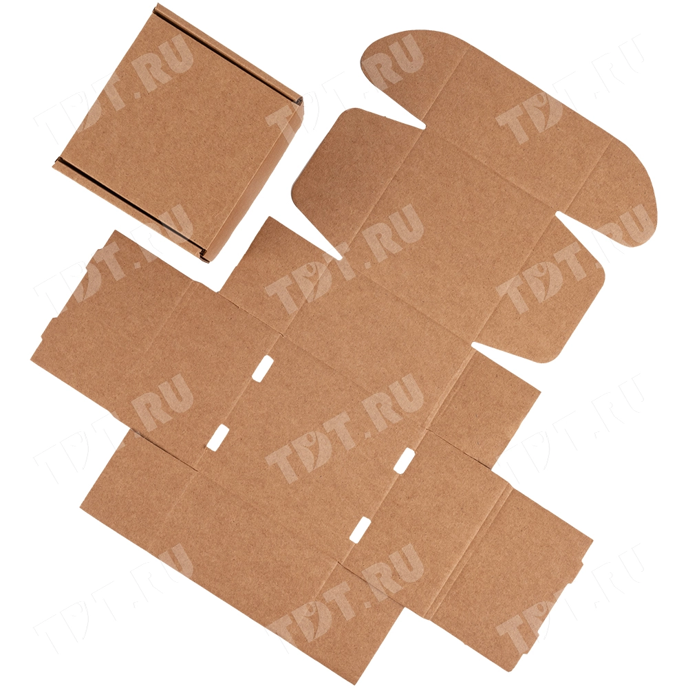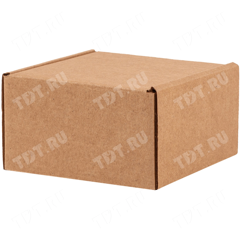 Самосборный короб №124 бурого цвета, длиной 100 мм, шириной 100 мм и высотой 60 мм. Изготовлен из гофрокартона Т-23 Е. Полезный объём — 0.6 л.