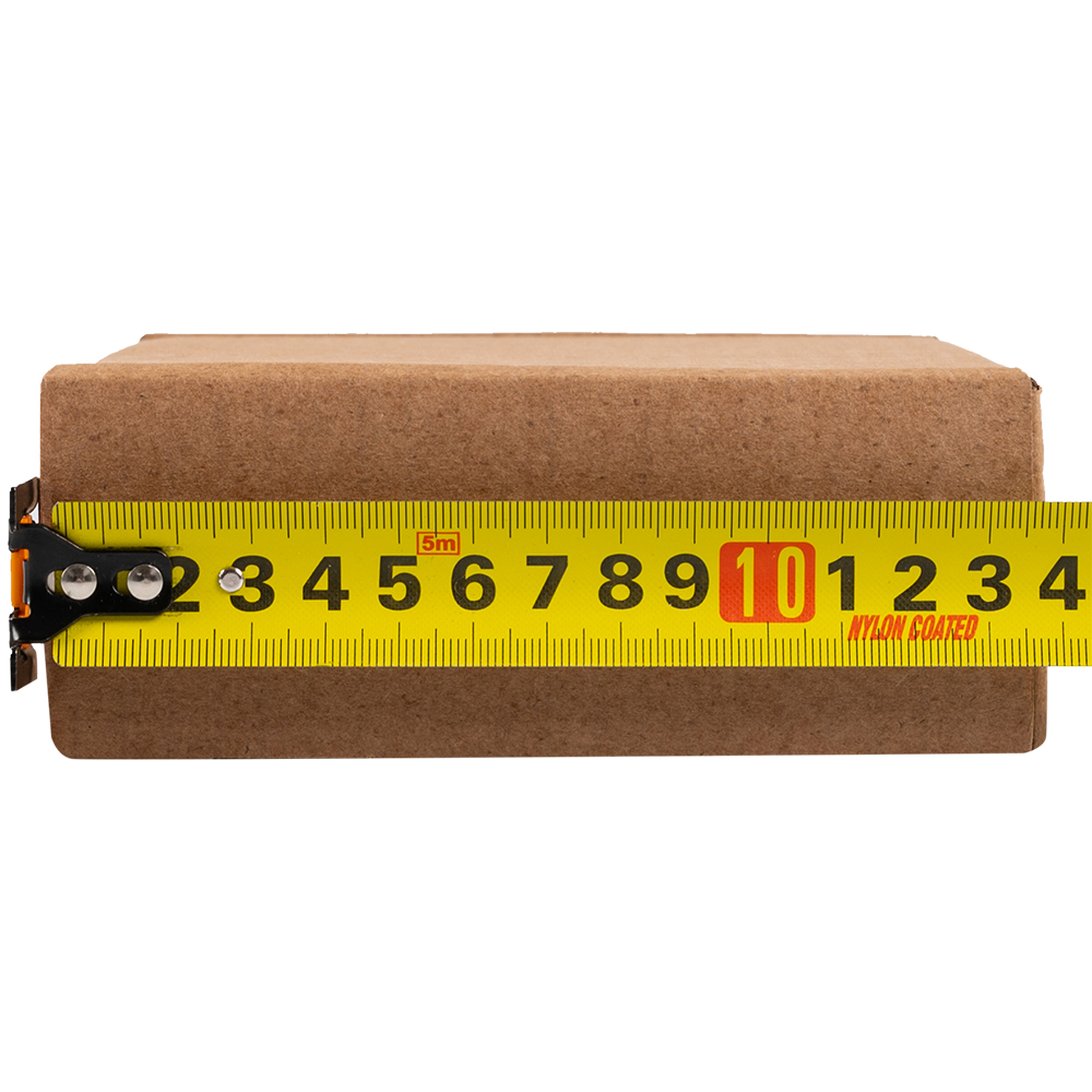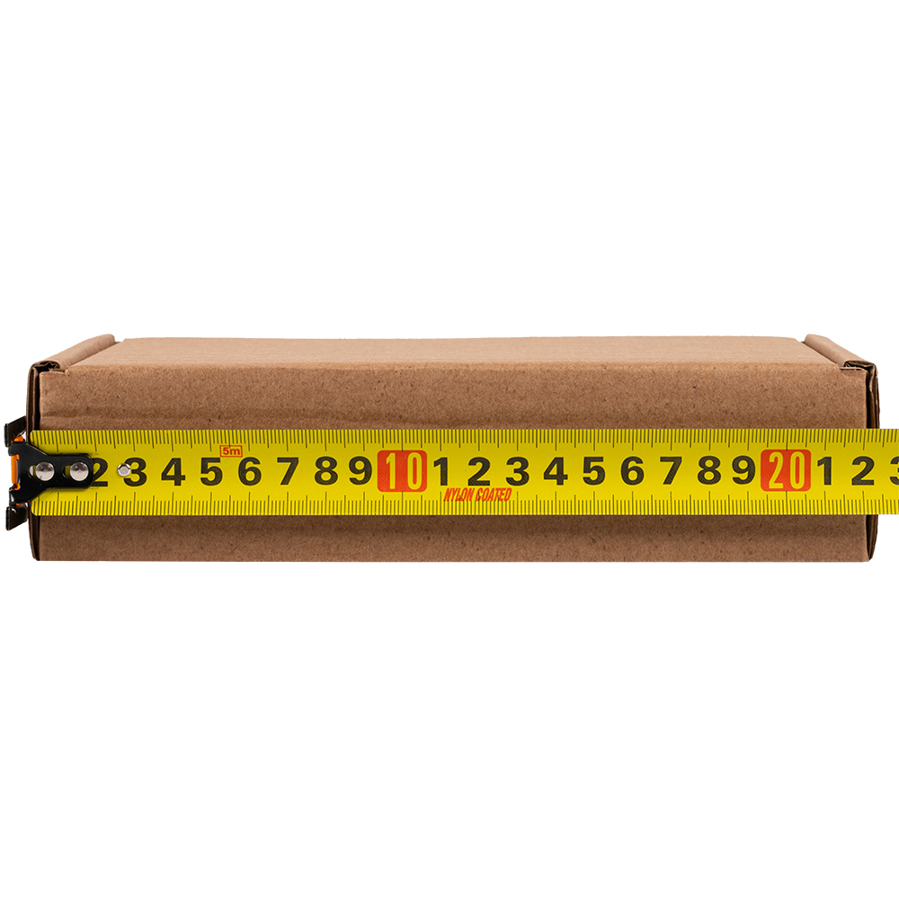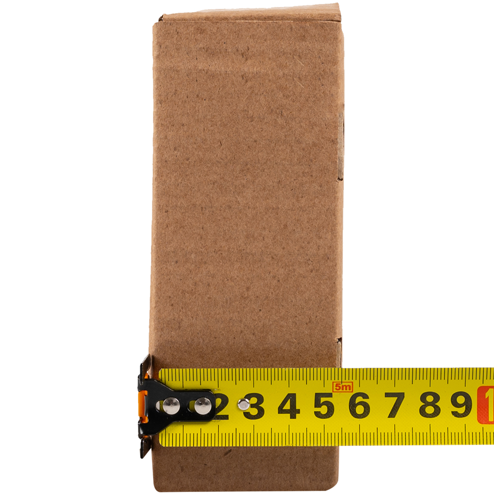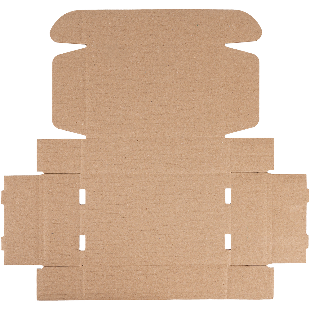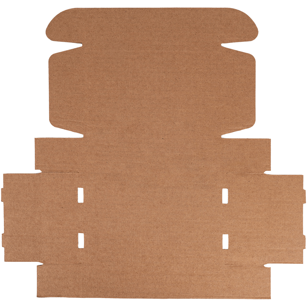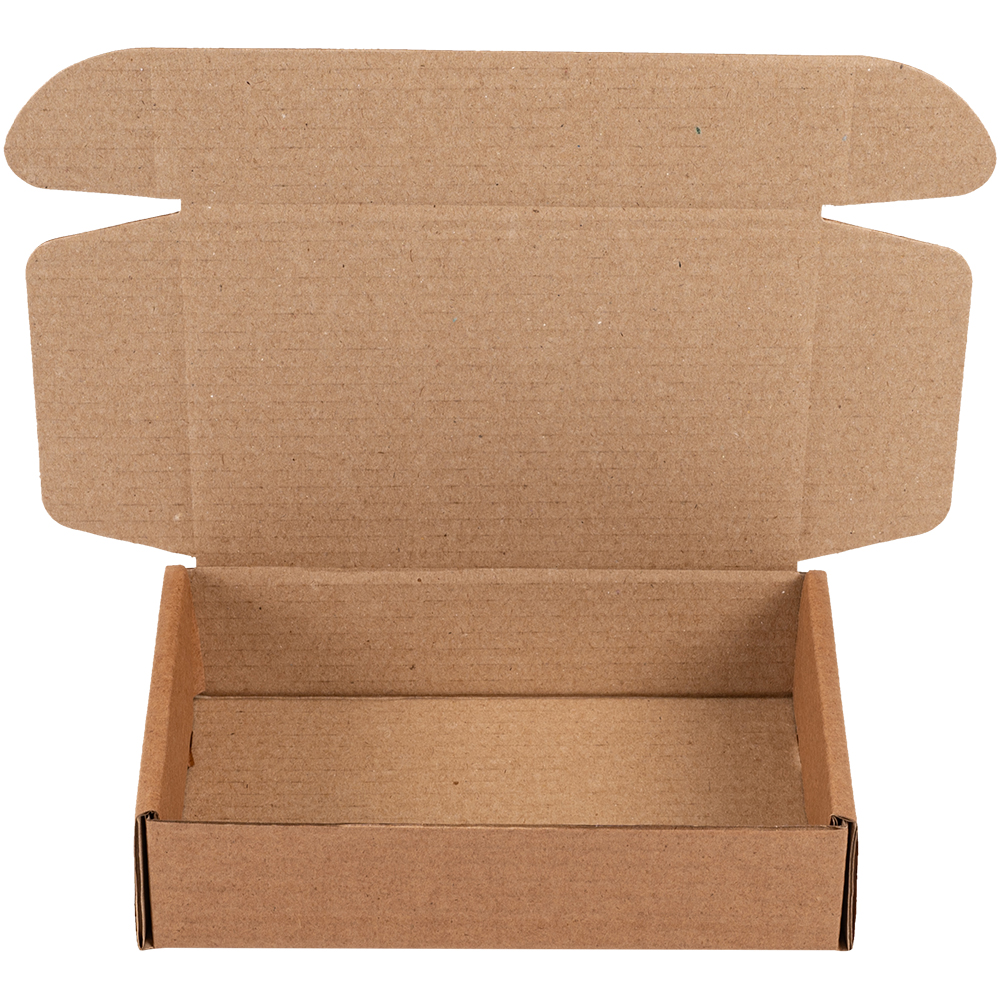 Самосборный короб №128 бурого цвета, длиной 200 мм, шириной 130 мм и высотой 50 мм. Изготовлен из гофрокартона Т-23 В. Полезный объём — 1.3 л.