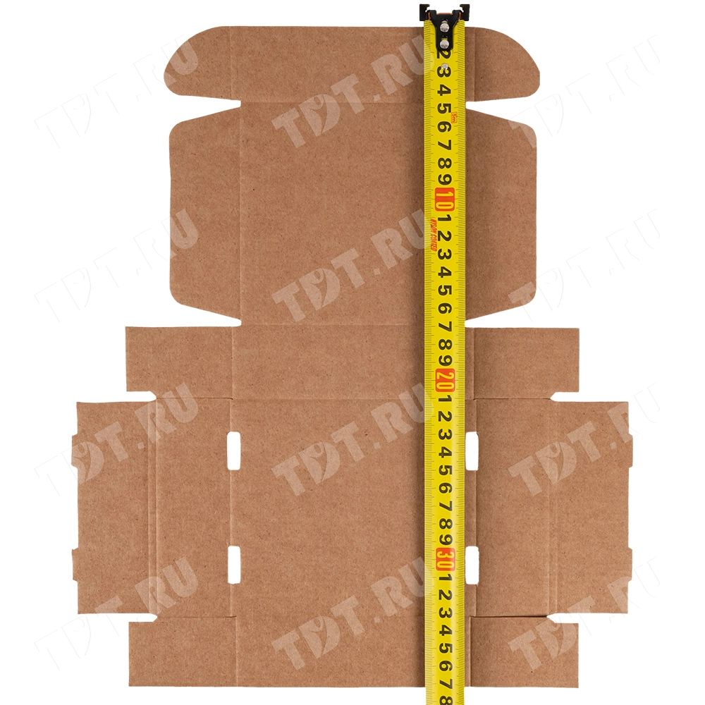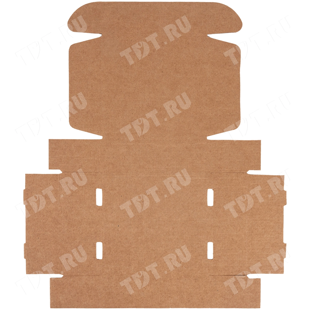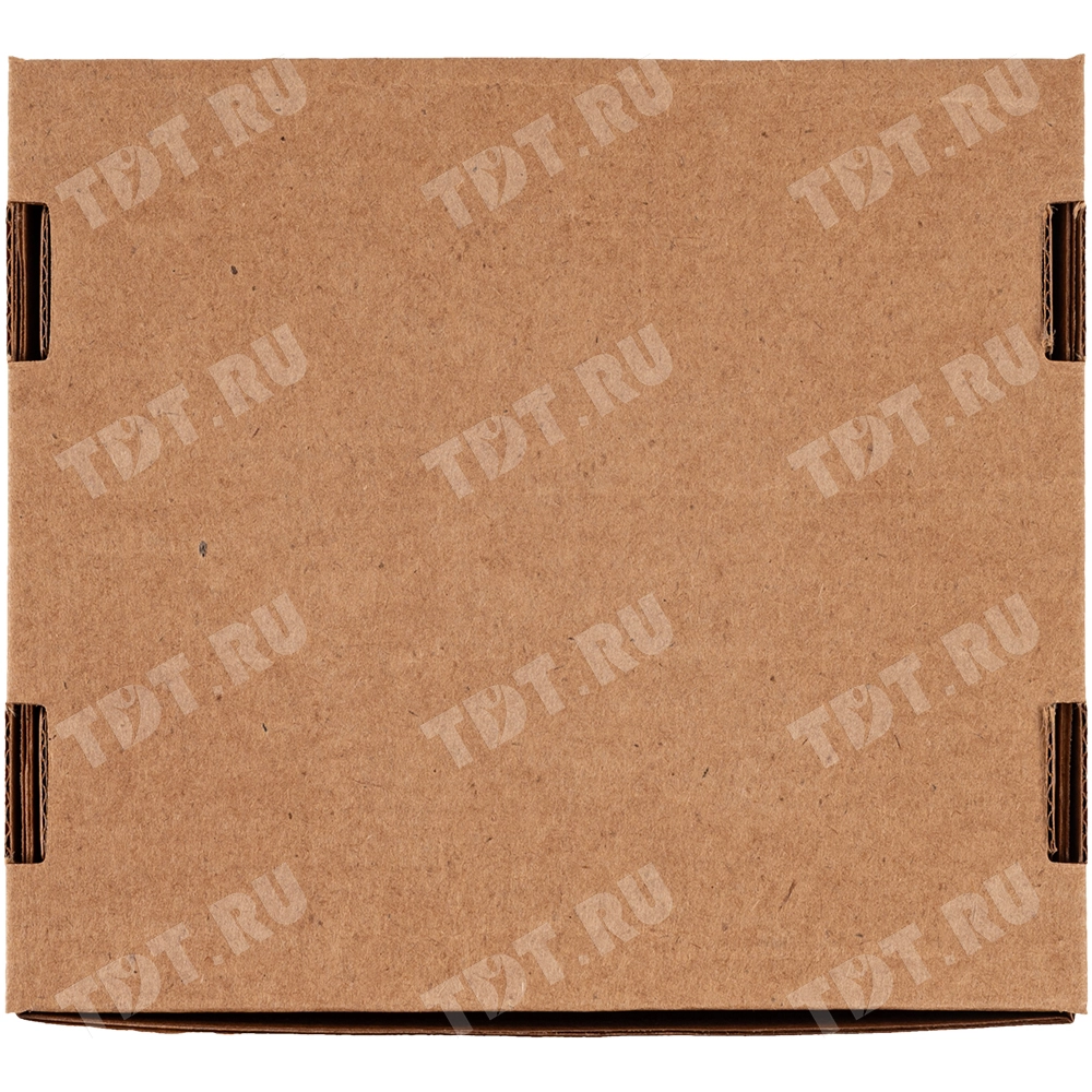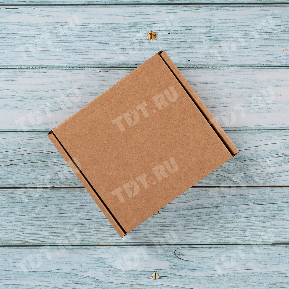 Самосборный короб №129 бурого цвета, длиной 125 мм, шириной 120 мм и высотой 40 мм. Изготовлен из гофрокартона Т-23 Е. Полезный объём — 0.6 л.