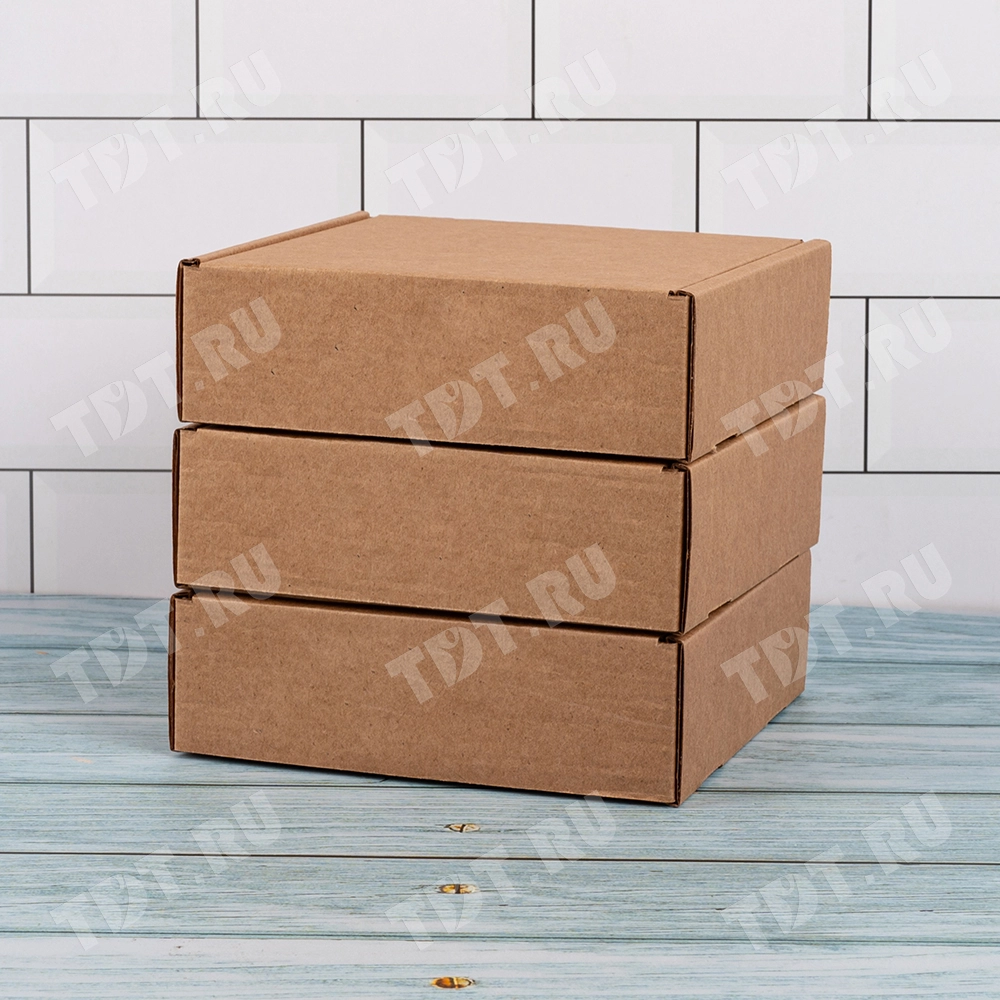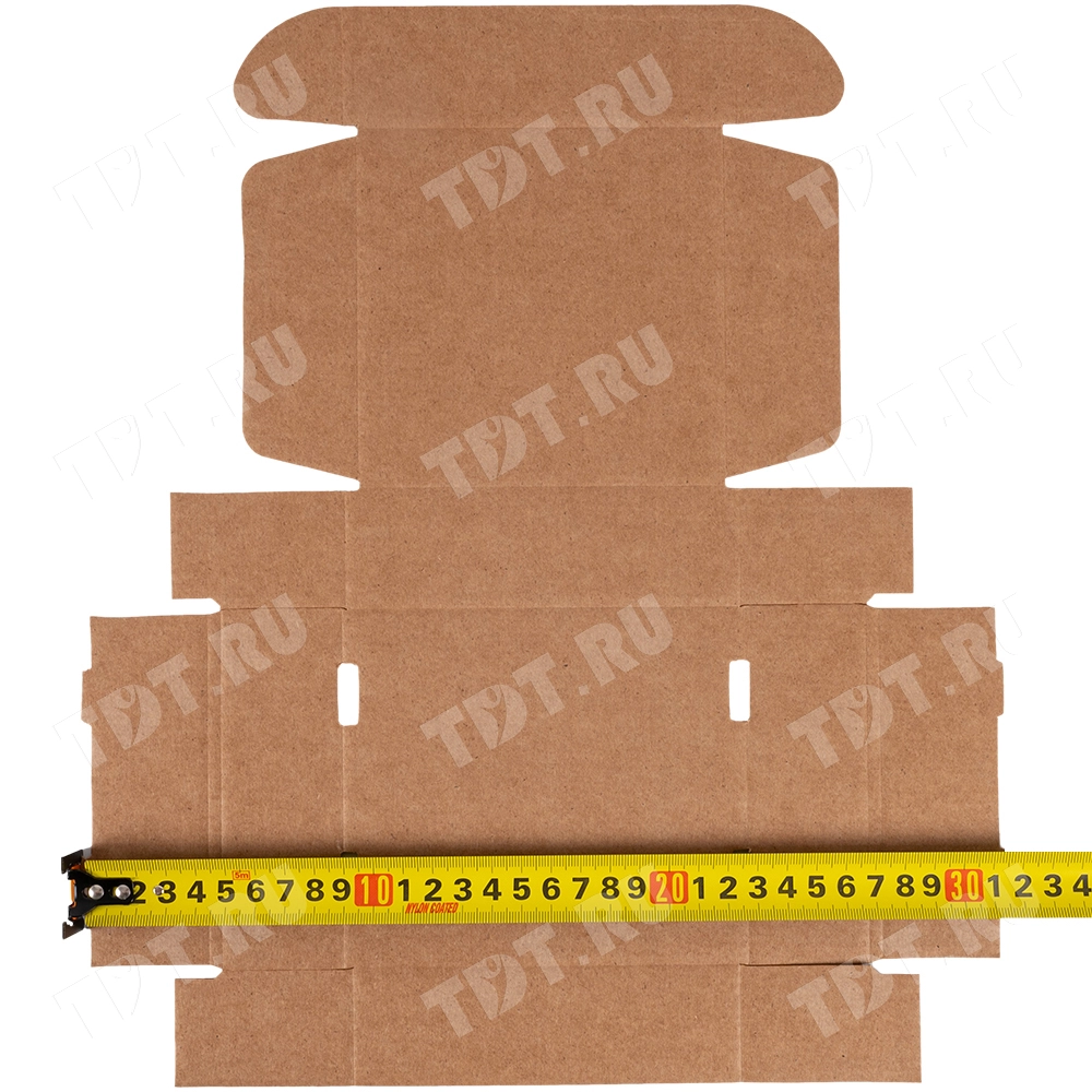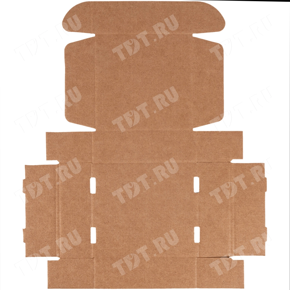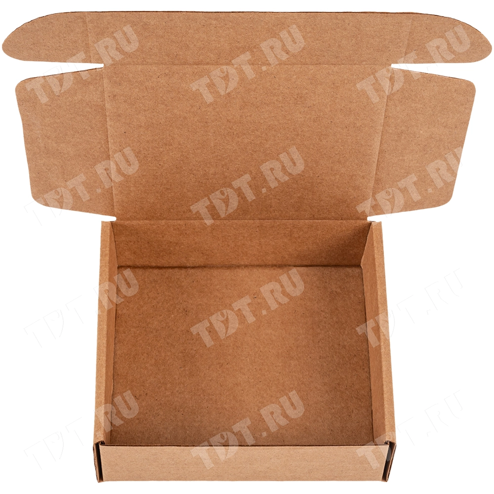 Самосборный короб №129 бурого цвета, длиной 125 мм, шириной 120 мм и высотой 40 мм. Изготовлен из гофрокартона Т-23 Е. Полезный объём — 0.6 л.