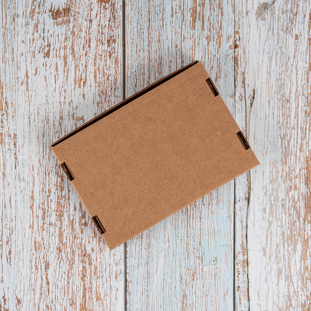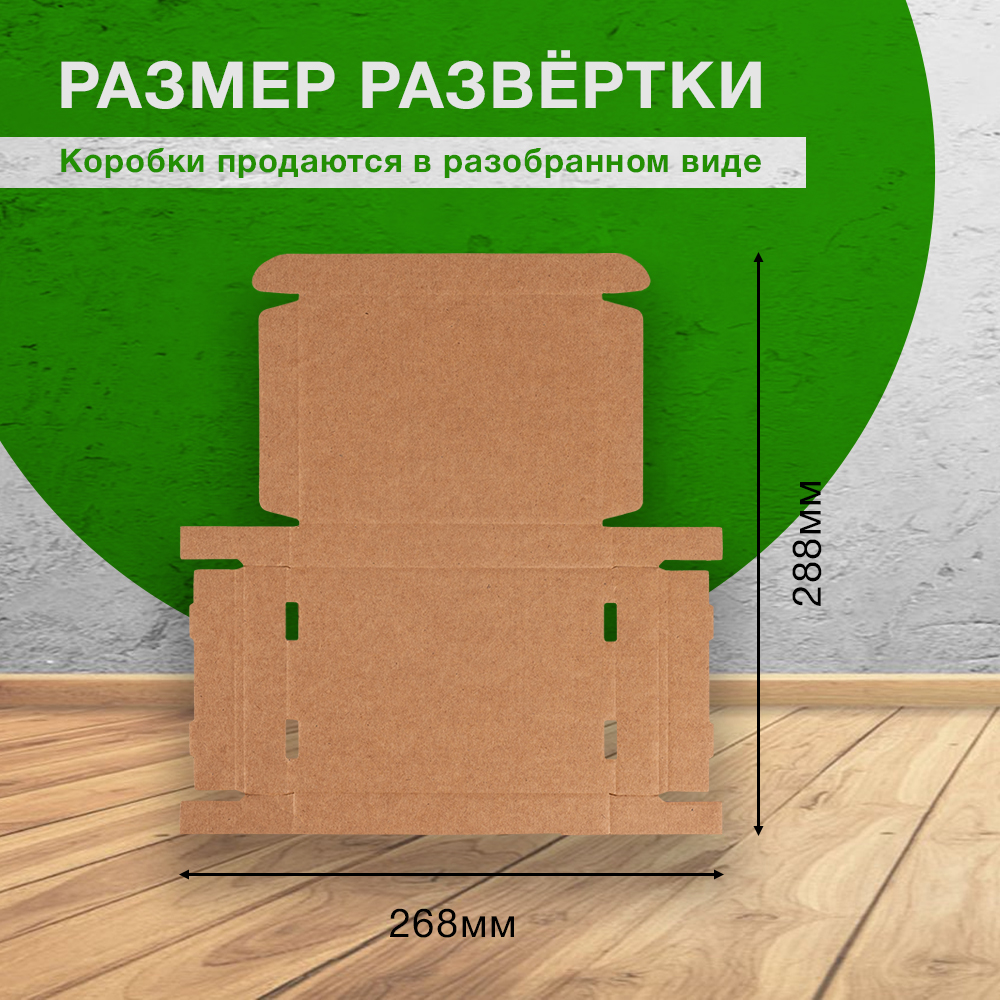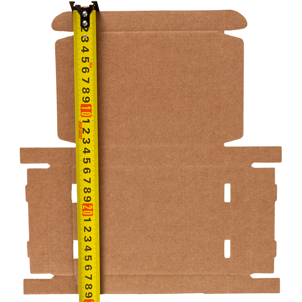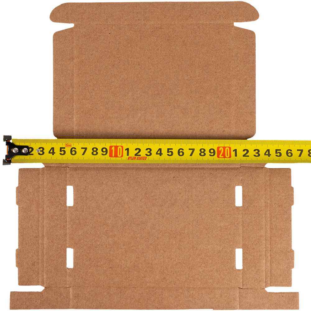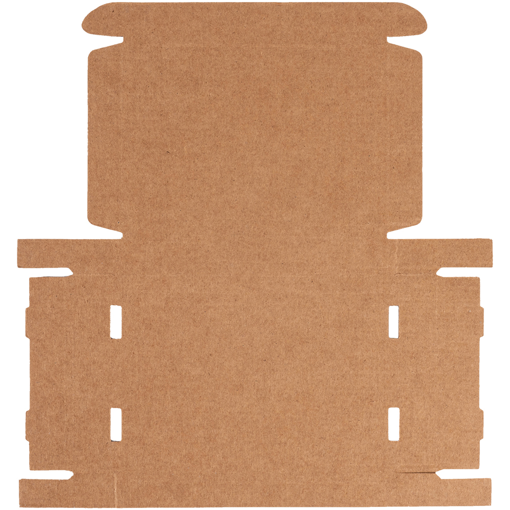 Самосборный короб №131 бурого цвета, длиной 150 мм, шириной 110 мм и высотой 20 мм. Изготовлен из гофрокартона Т-23 Е. Полезный объём — 0.33 л.