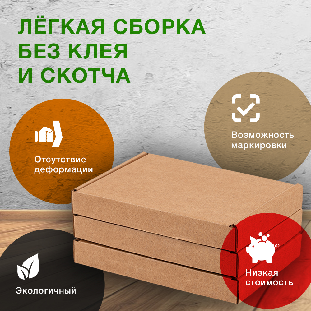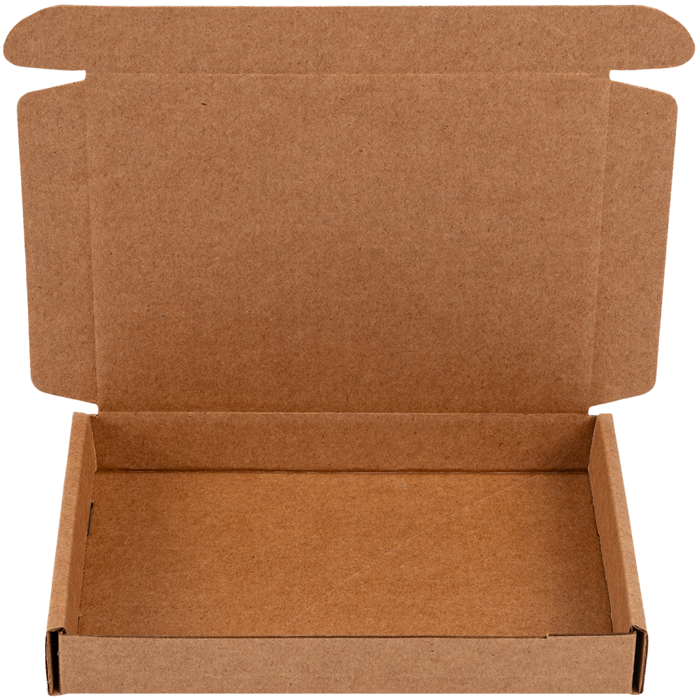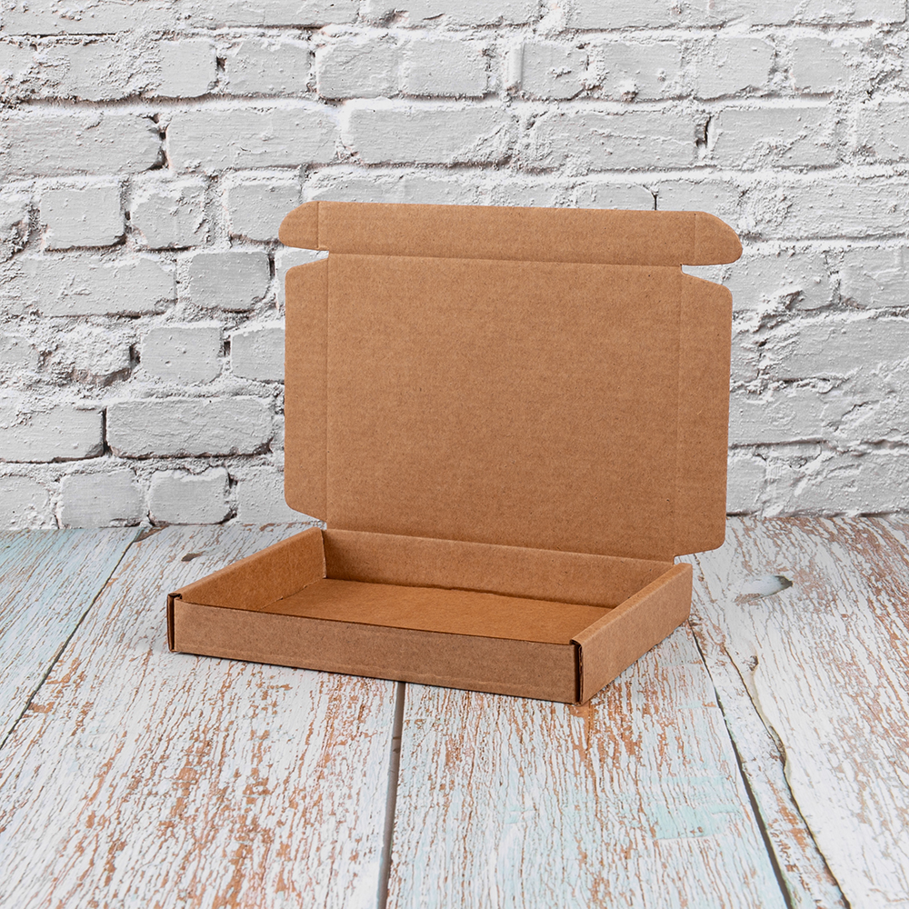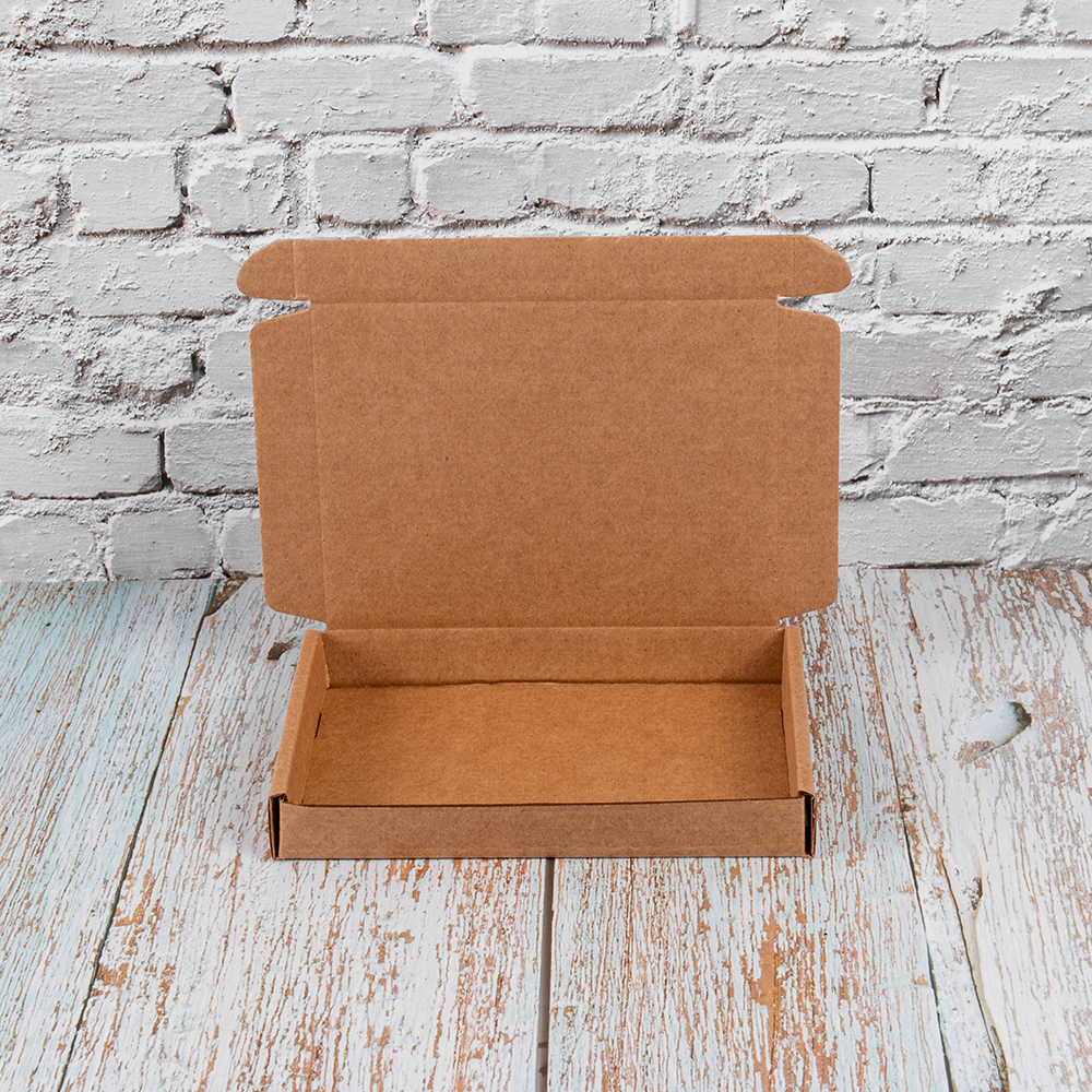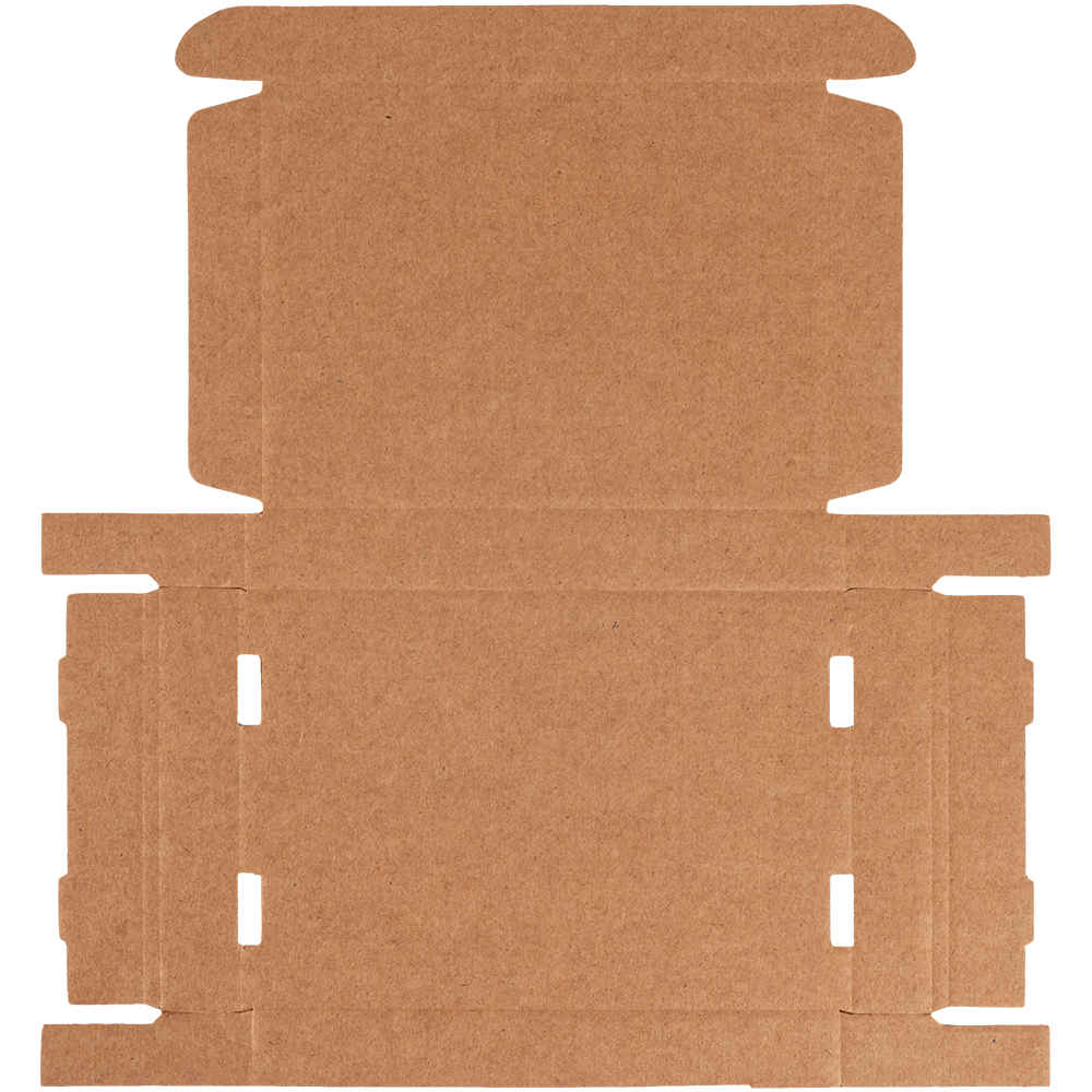 Самосборный короб №131 бурого цвета, длиной 150 мм, шириной 110 мм и высотой 20 мм. Изготовлен из гофрокартона Т-23 Е. Полезный объём — 0.33 л.