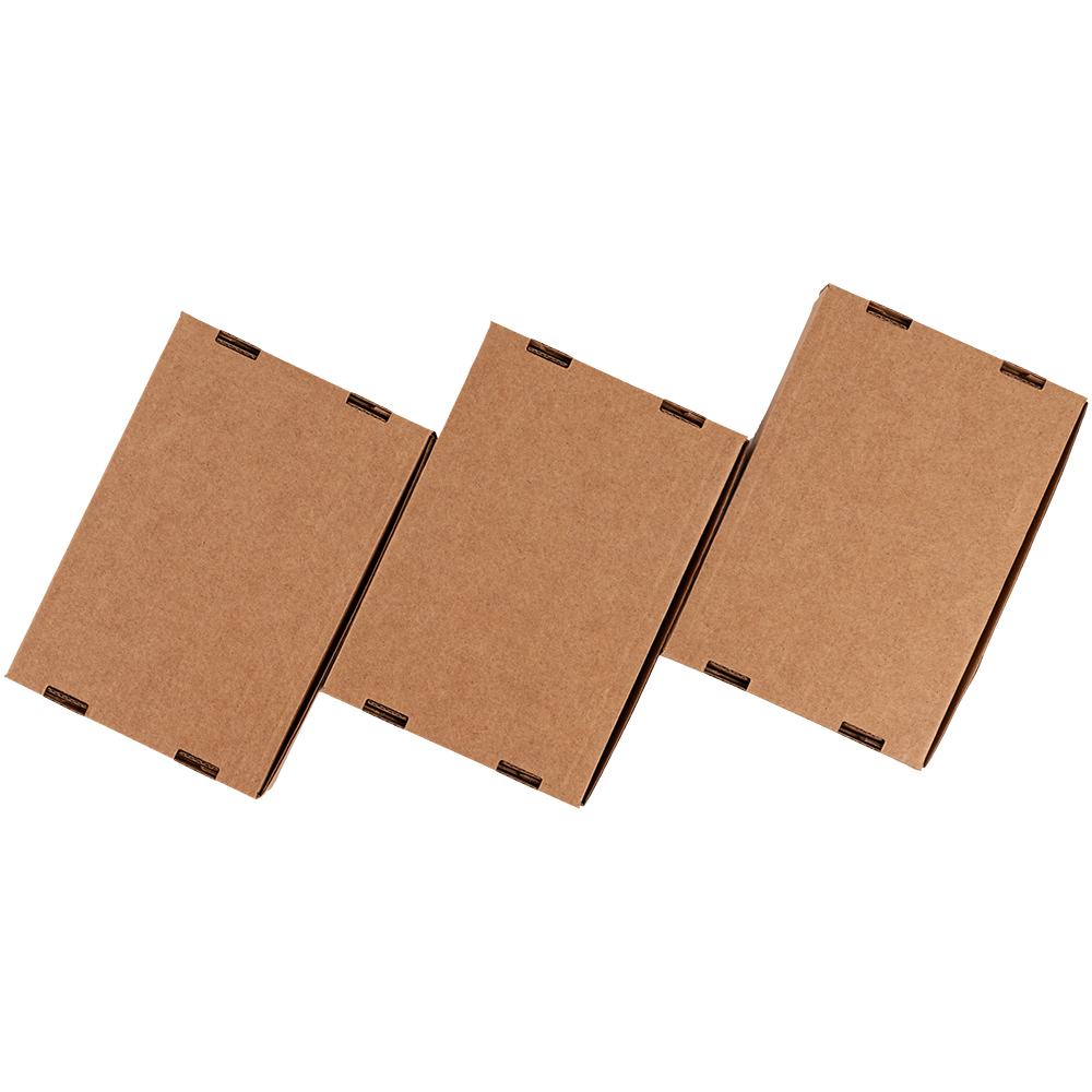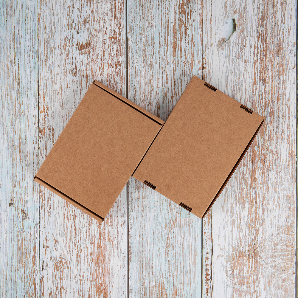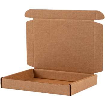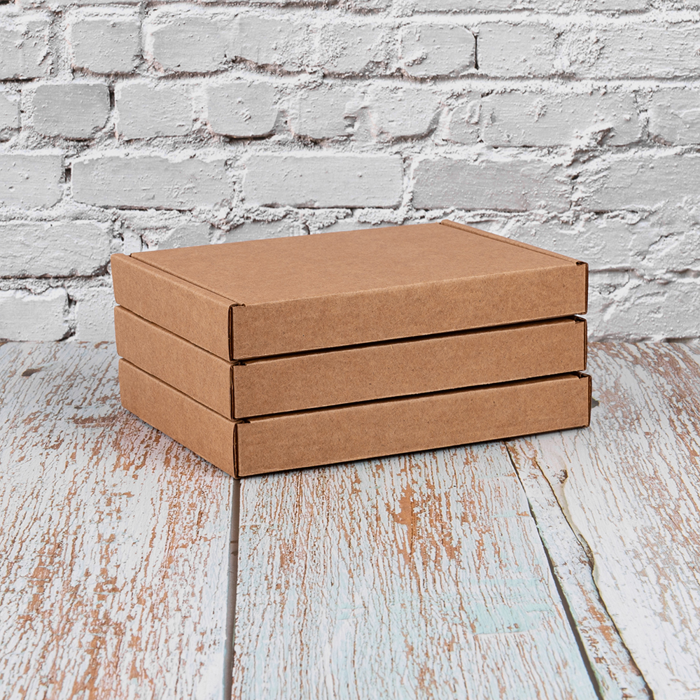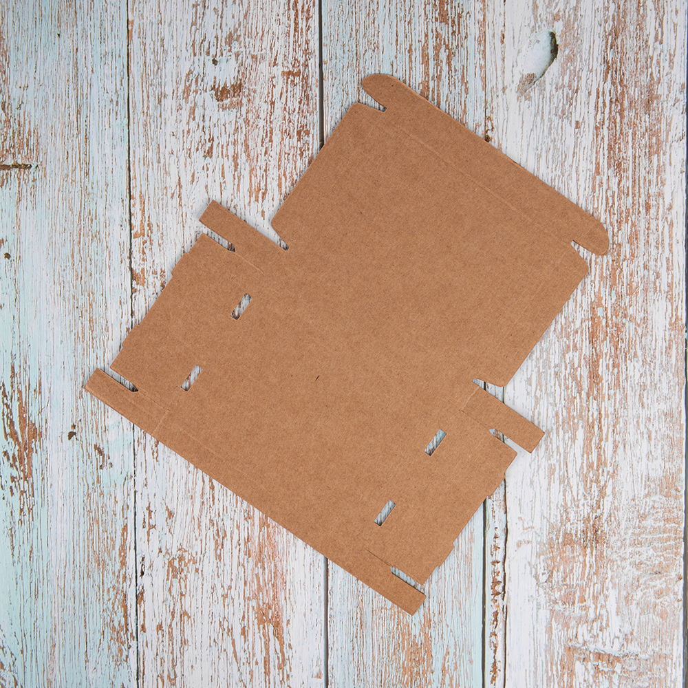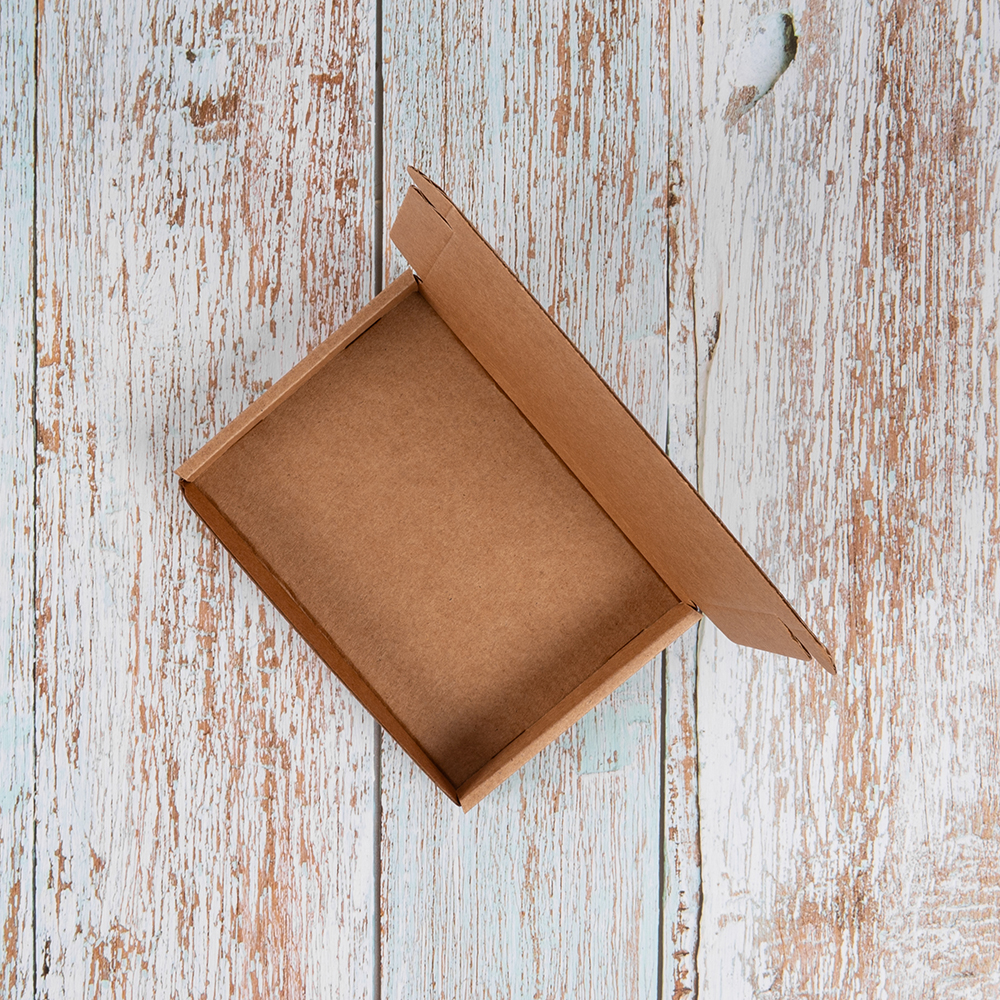 Самосборный короб №131 бурого цвета, длиной 150 мм, шириной 110 мм и высотой 20 мм. Изготовлен из гофрокартона Т-23 Е. Полезный объём — 0.33 л.