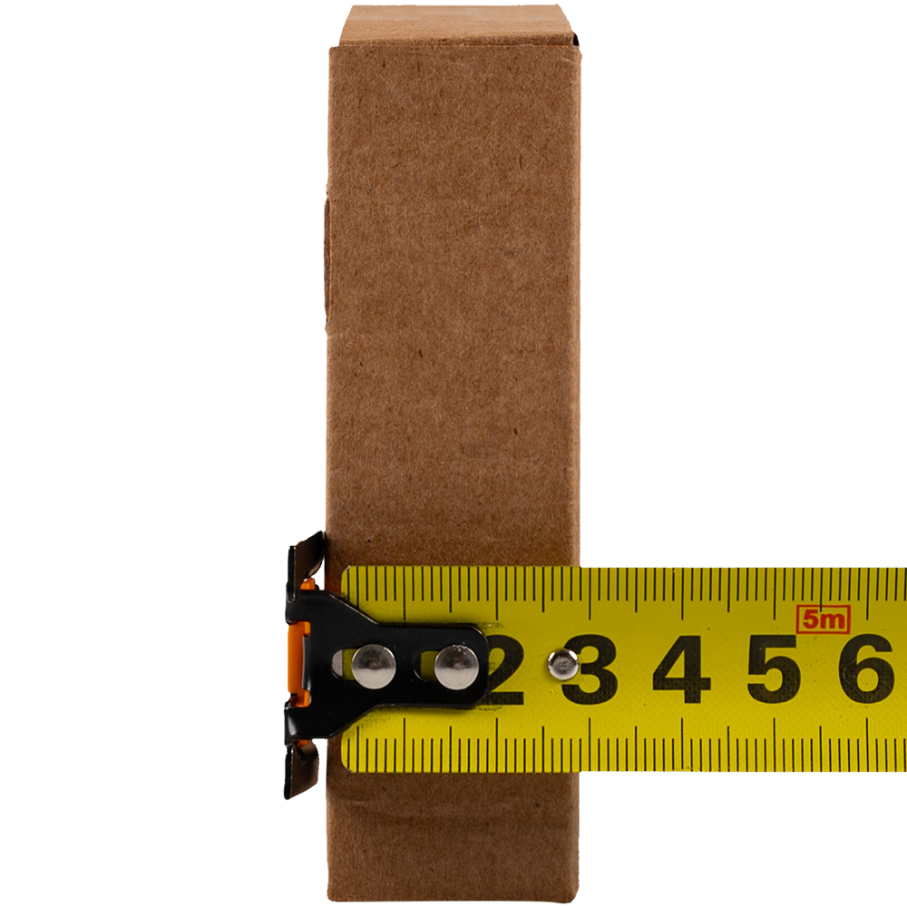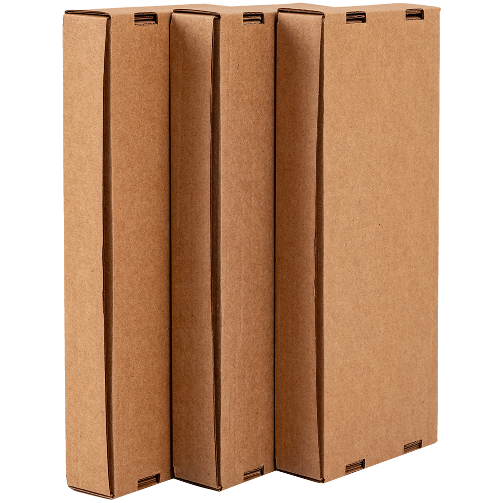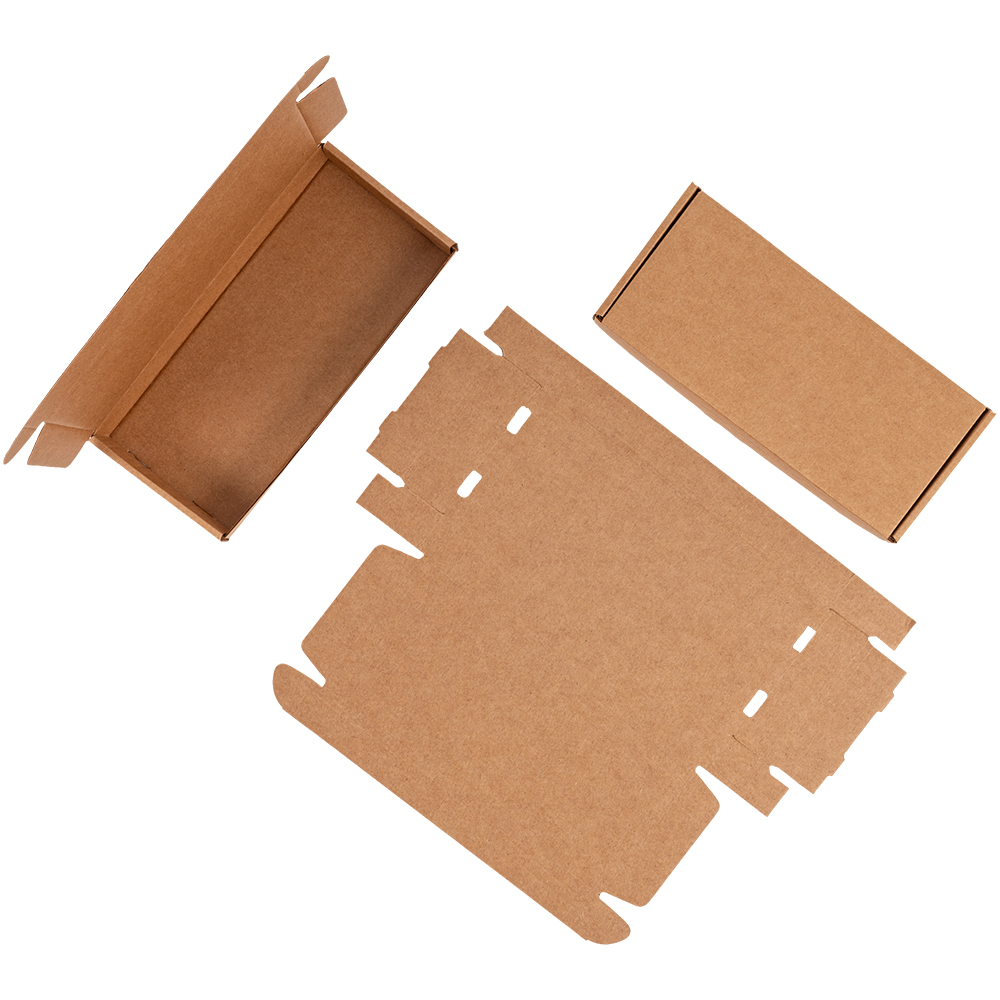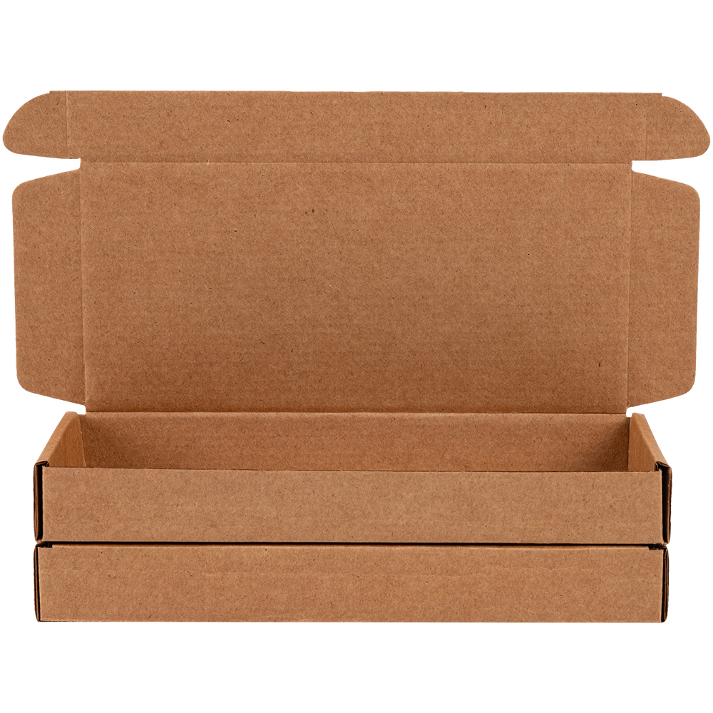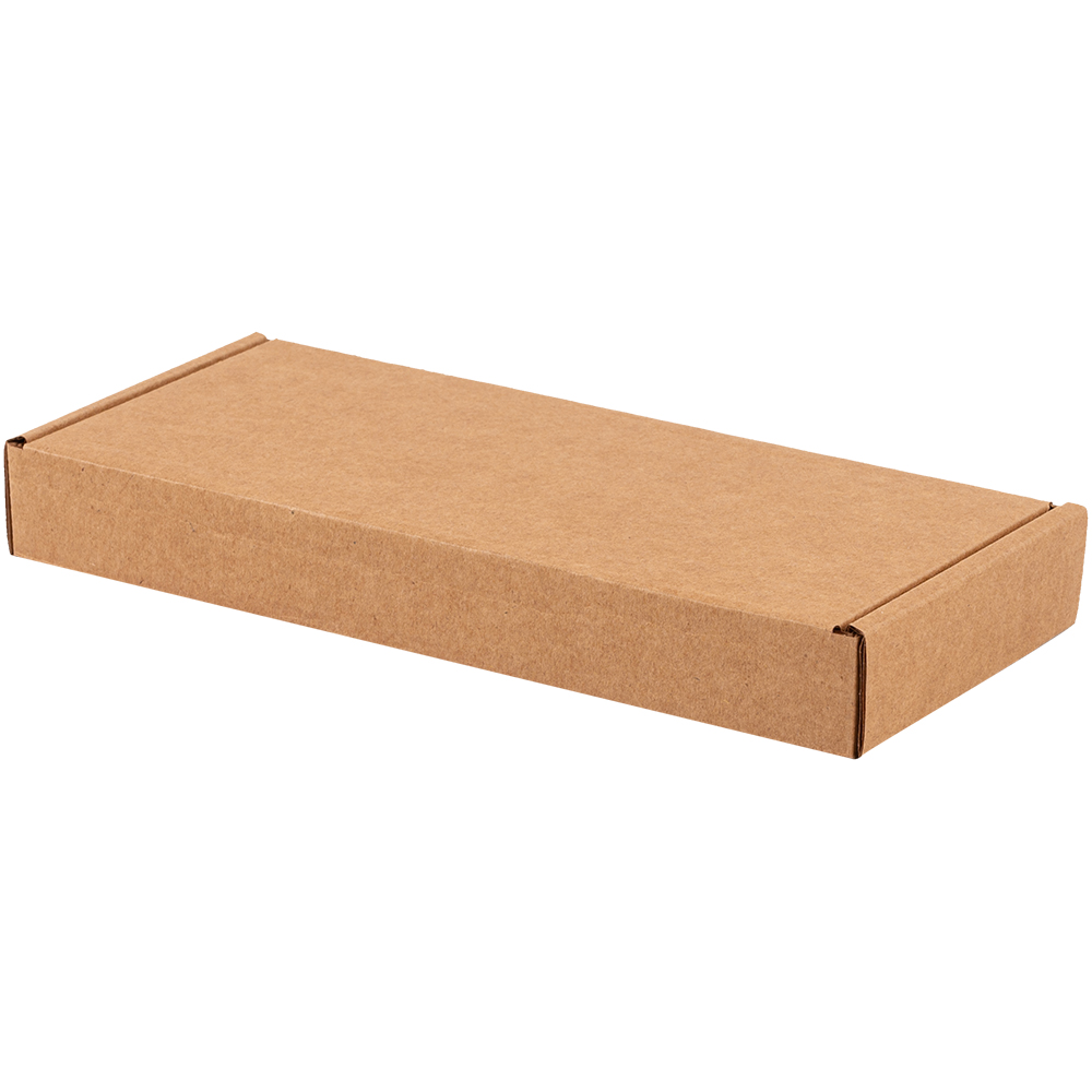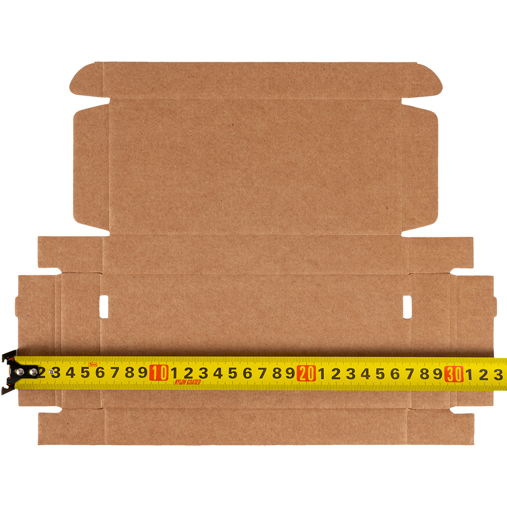 Самосборный короб №132 бурого цвета, длиной 200 мм, шириной 90 мм и высотой 25 мм. Изготовлен из гофрокартона Т-23 Е. Полезный объём — 0.45 л.