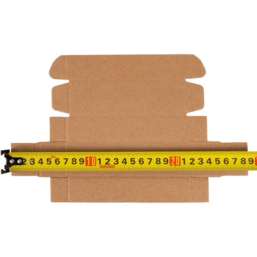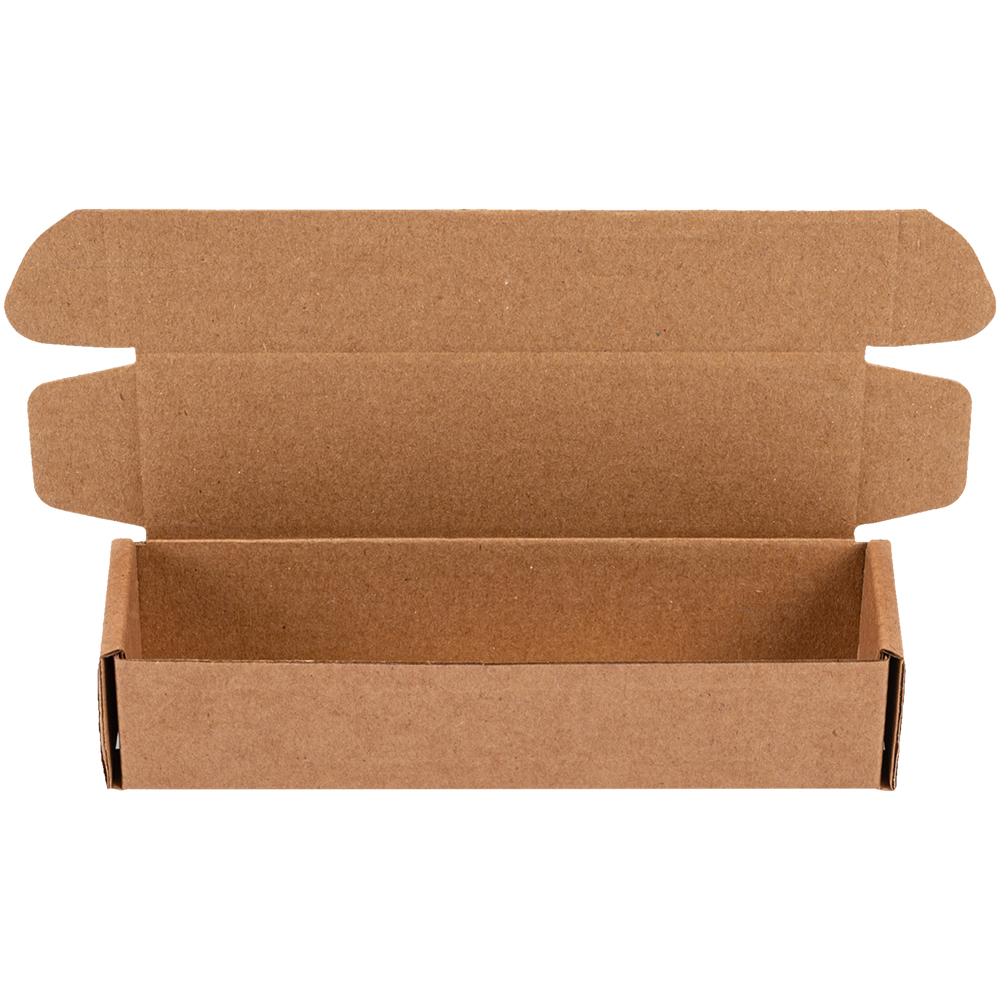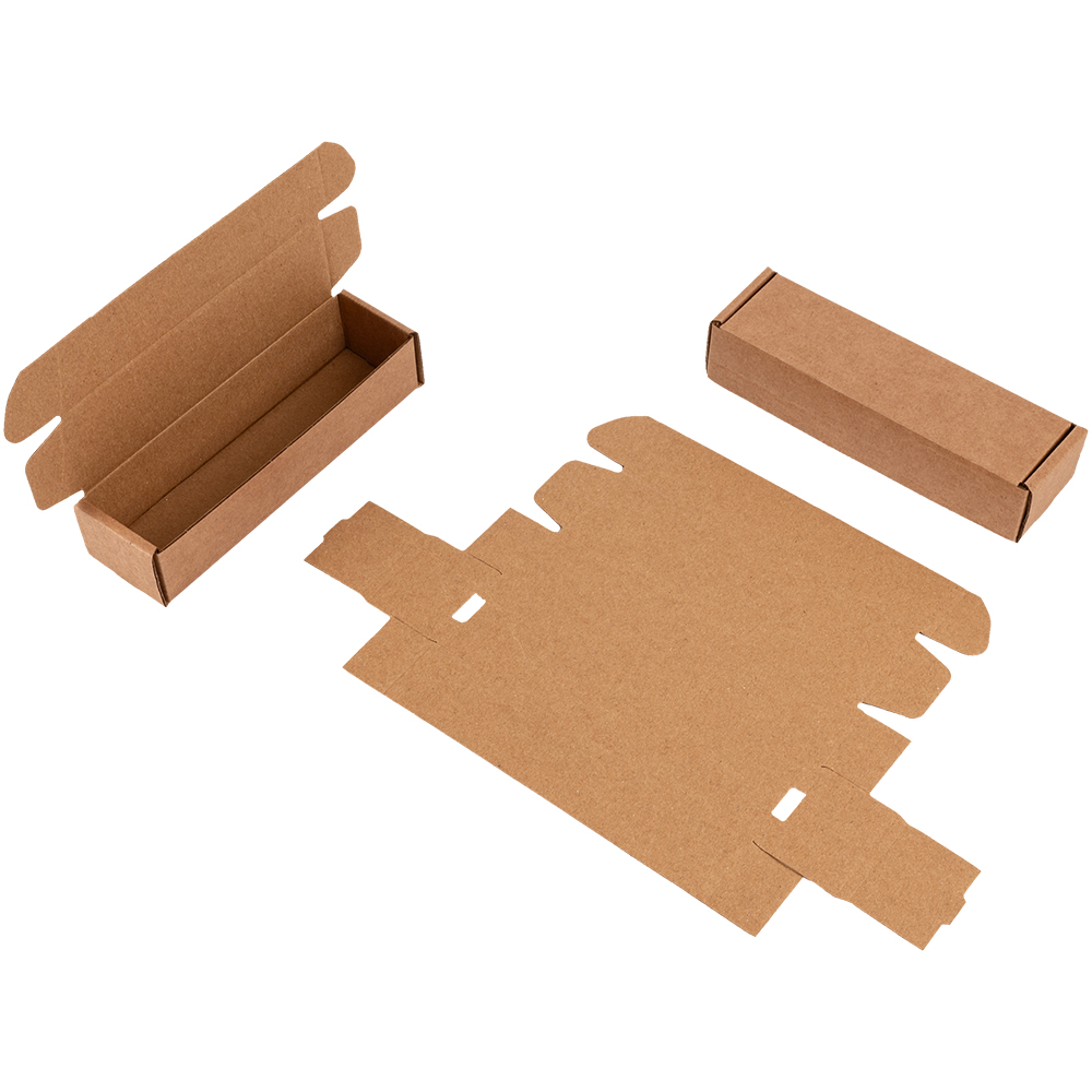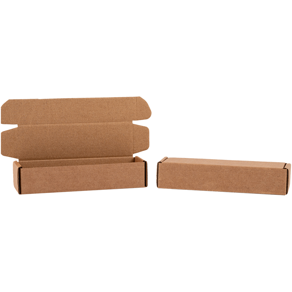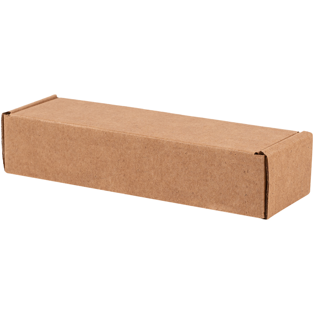 Самосборный короб №135 бурого цвета, длиной 140 мм, шириной 40 мм и высотой 30 мм. Изготовлен из гофрокартона Т-23 Е. Полезный объём — 0.17 л.
