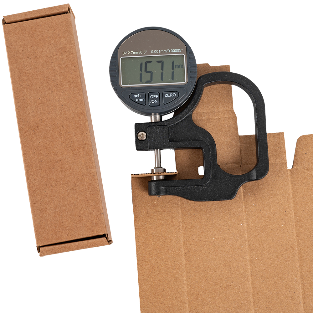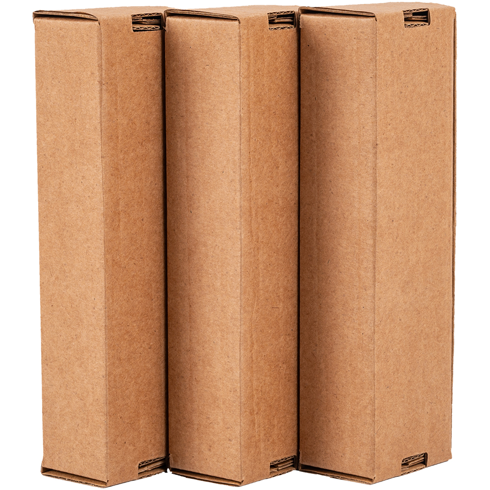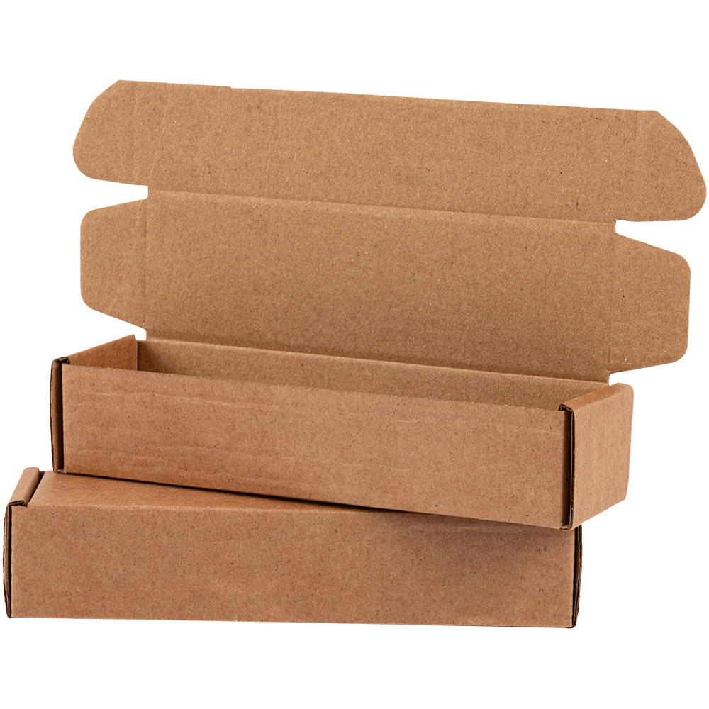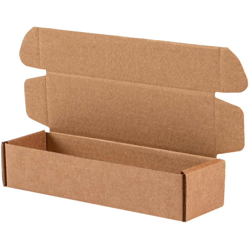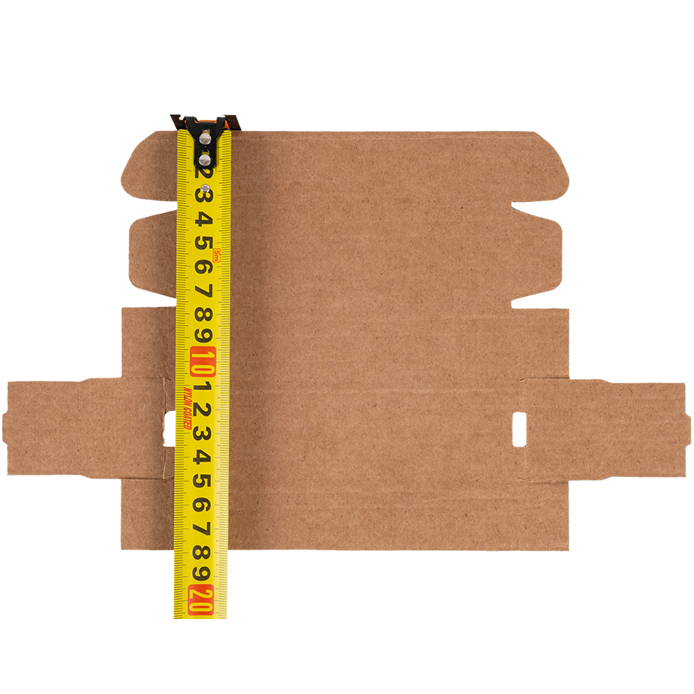 Самосборный короб №135 бурого цвета, длиной 140 мм, шириной 40 мм и высотой 30 мм. Изготовлен из гофрокартона Т-23 Е. Полезный объём — 0.17 л.