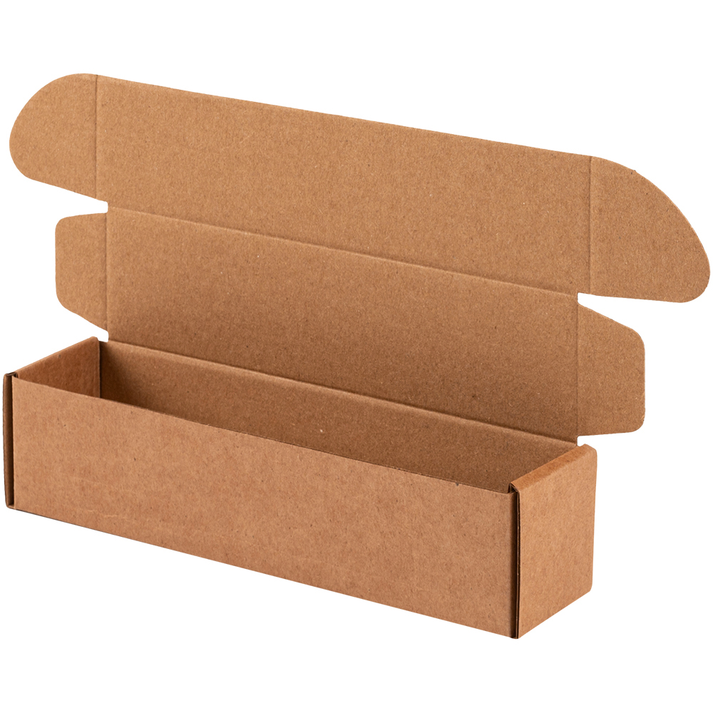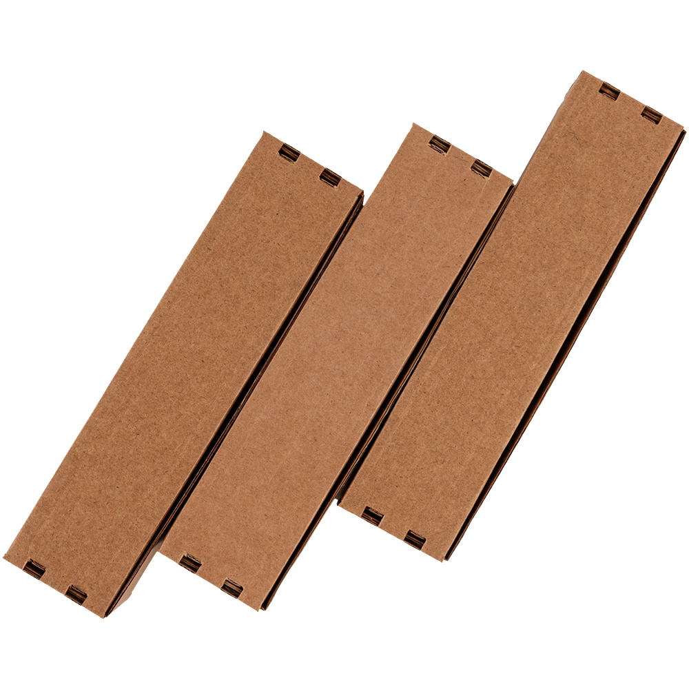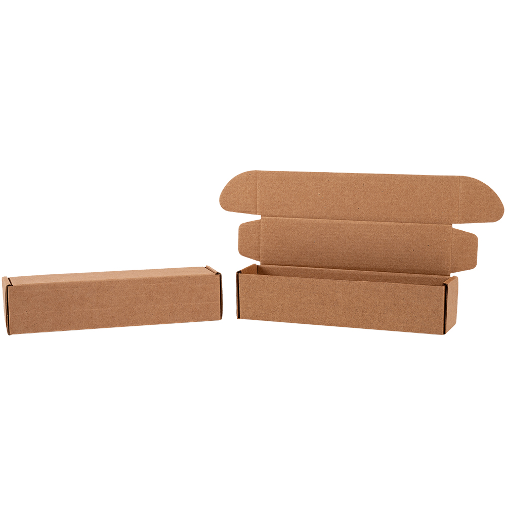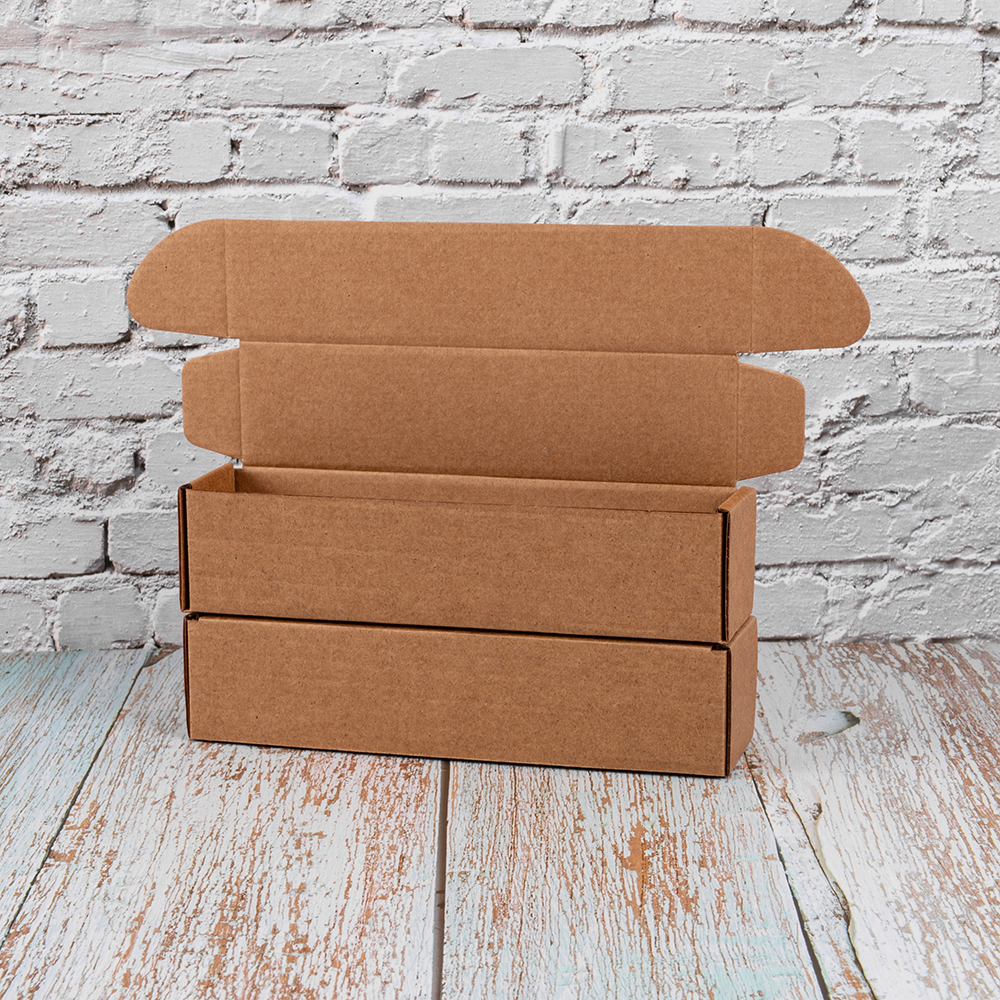Самосборный короб №136 бурого цвета, длиной 190 мм, шириной 45 мм и высотой 45 мм. Изготовлен из гофрокартона Т-23 Е. Полезный объём — 0.38 л.