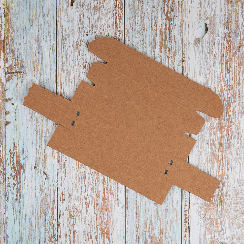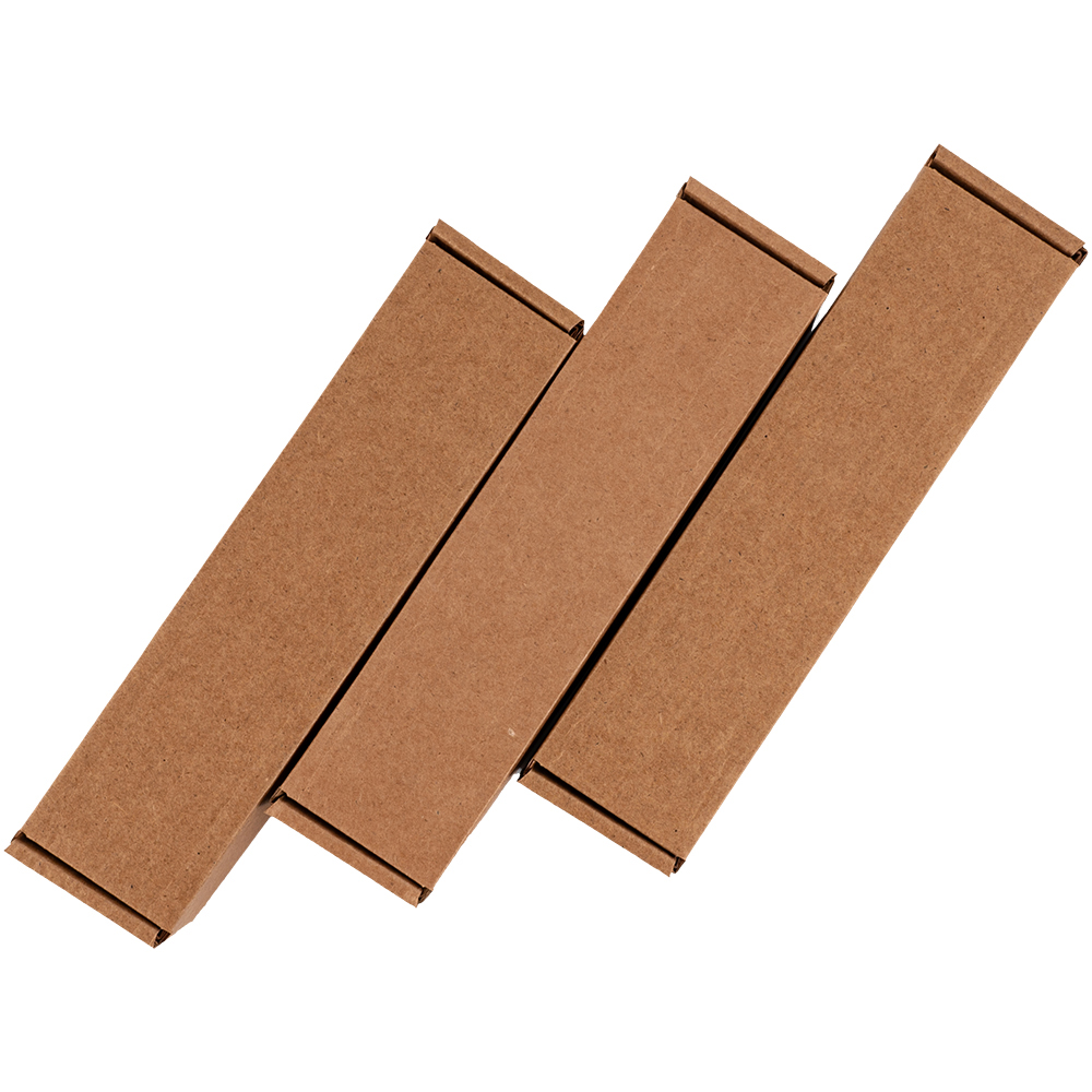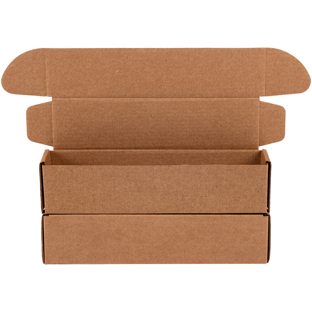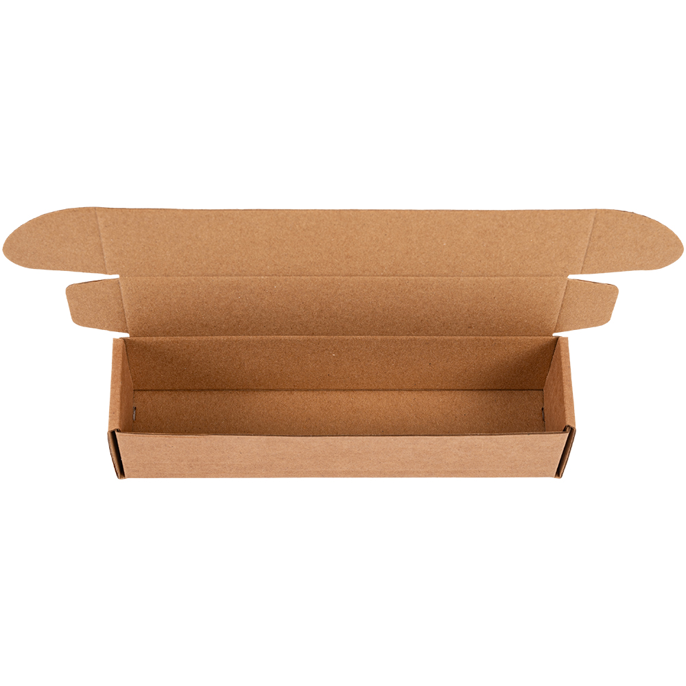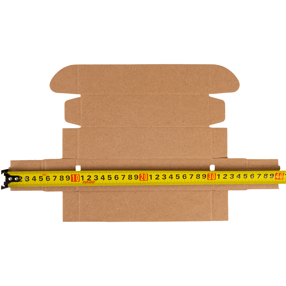 Самосборный короб №136 бурого цвета, длиной 190 мм, шириной 45 мм и высотой 45 мм. Изготовлен из гофрокартона Т-23 Е. Полезный объём — 0.38 л.