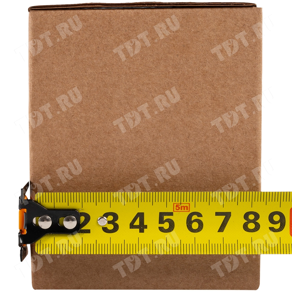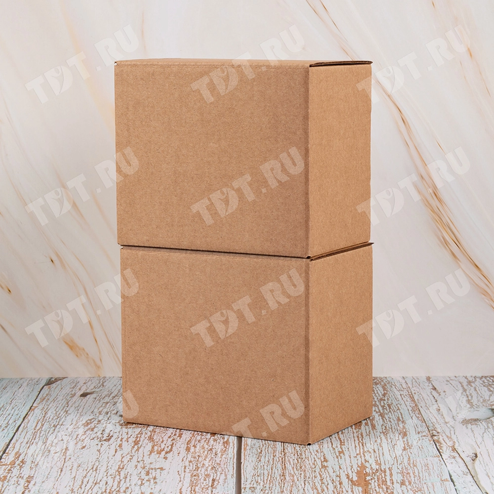 Самосборный короб №158 «Ласточкин хвост» бурого цвета, длиной 120 мм, шириной 80 мм и высотой 100 мм. Изготовлен из гофрокартона Т-23 Е. Полезный объём — 0.96 л.