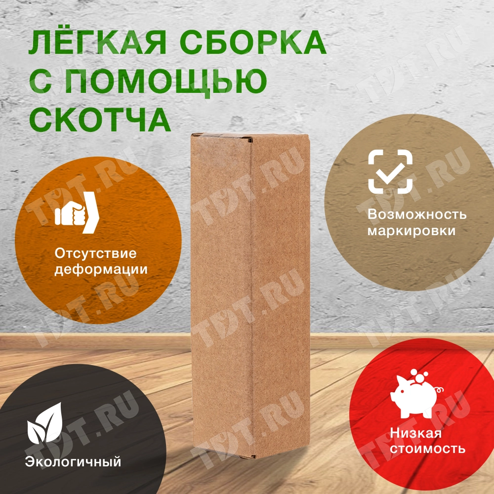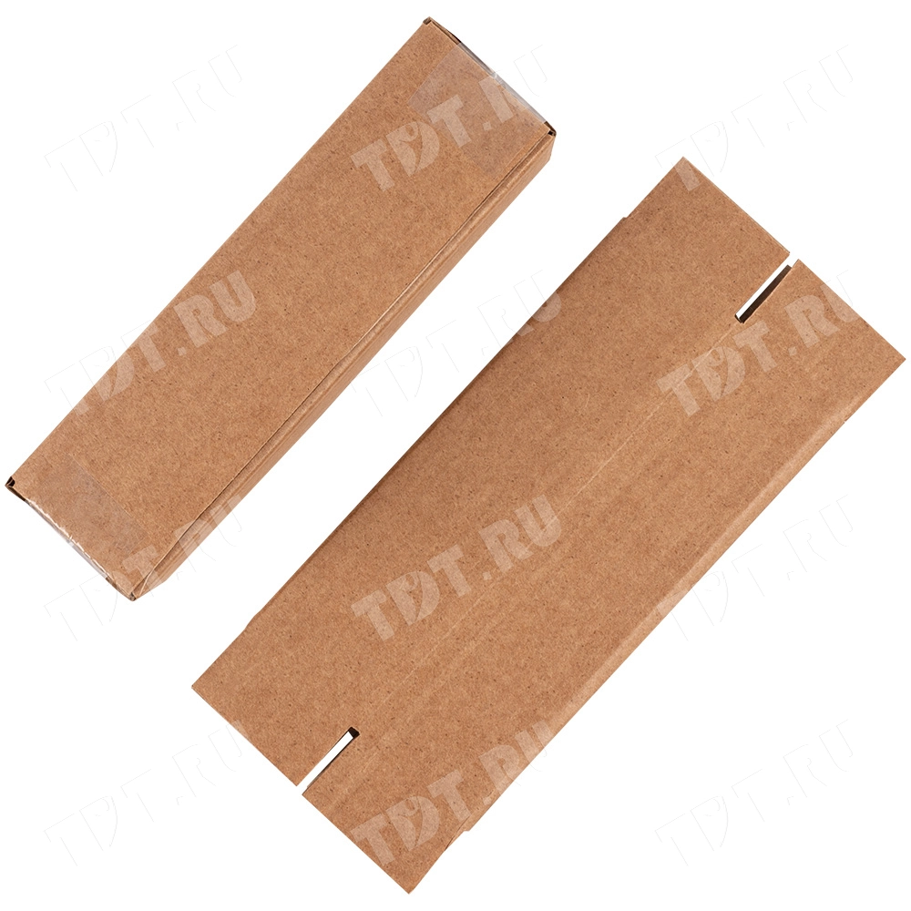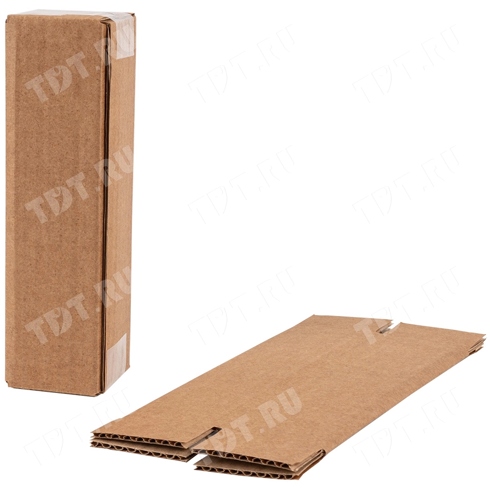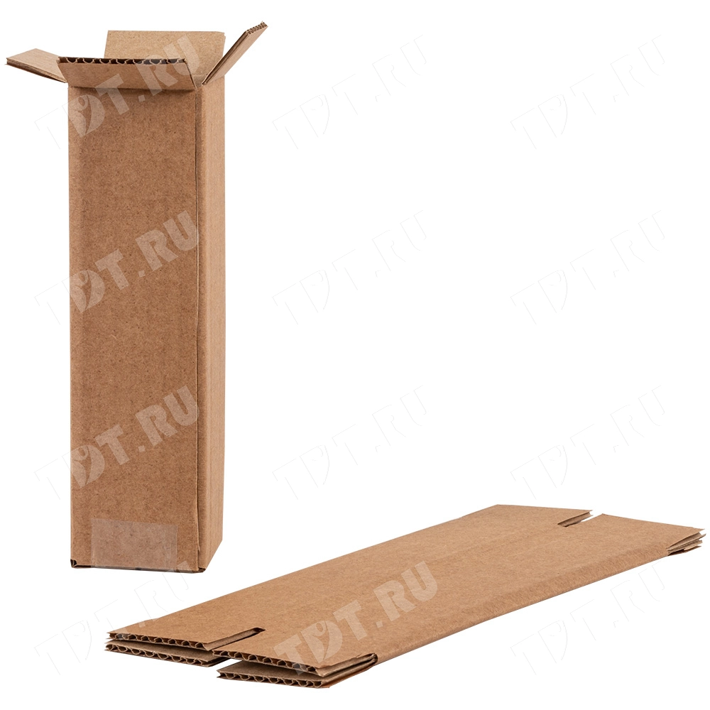 Короб №159 бурого цвета, длиной 50 мм, шириной 50 мм и высотой 190 мм. Изготовлен из трехслойного картона марки Т-23 В. Полезный объём — 0.48 л.
