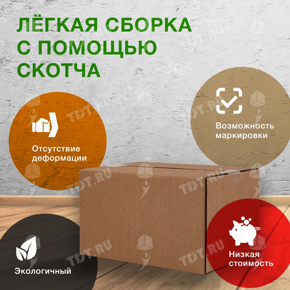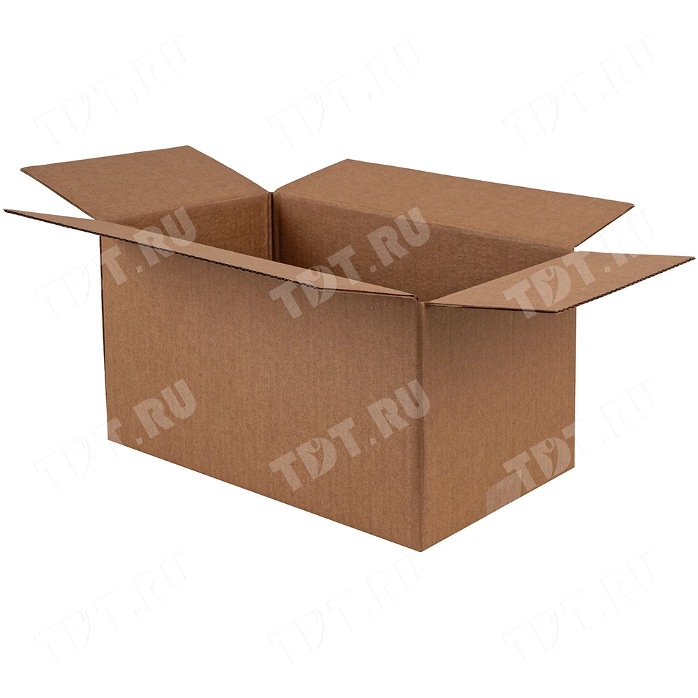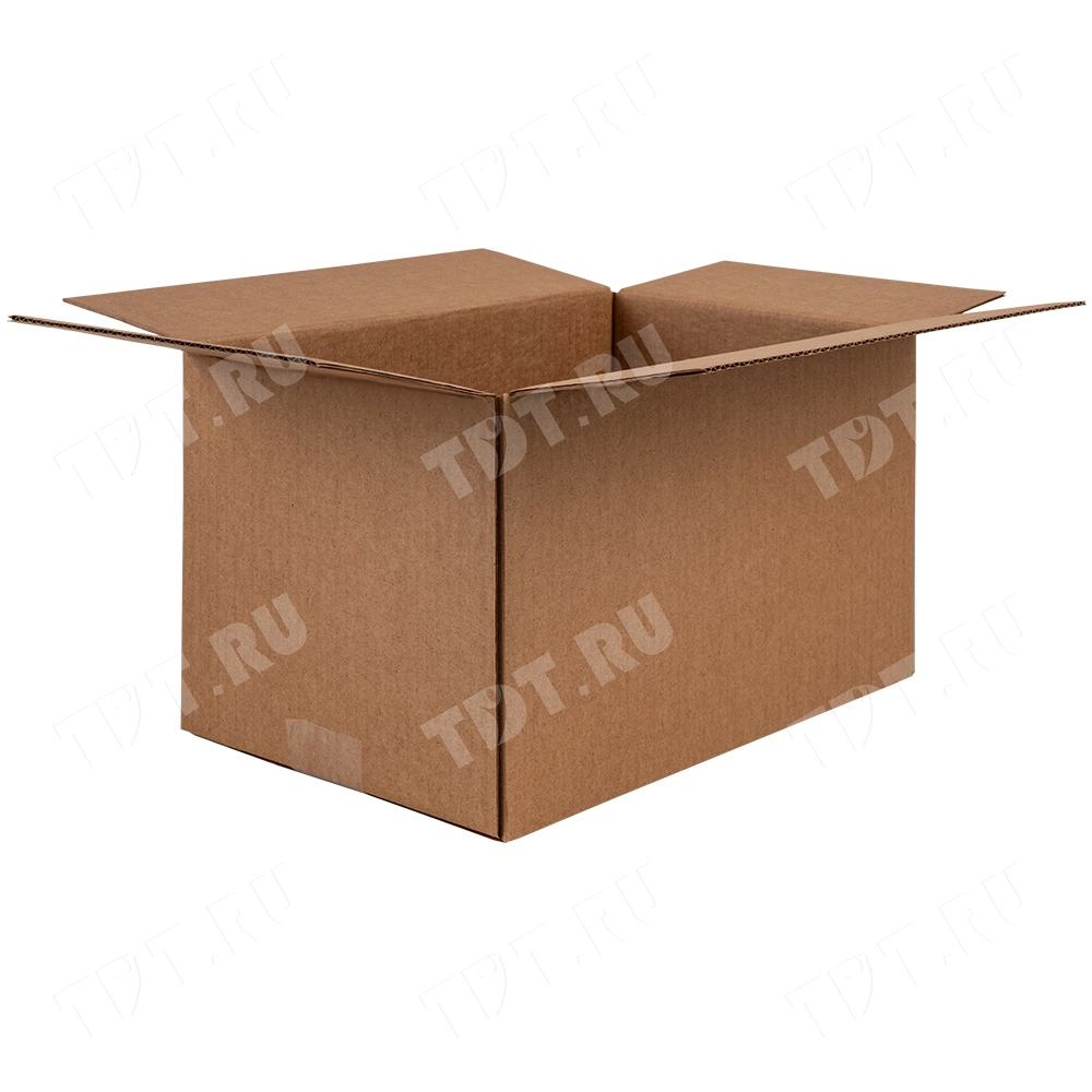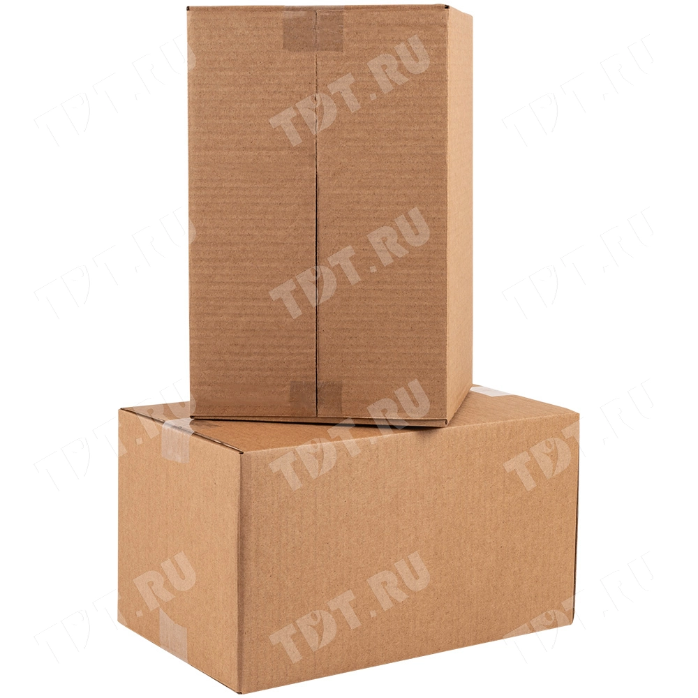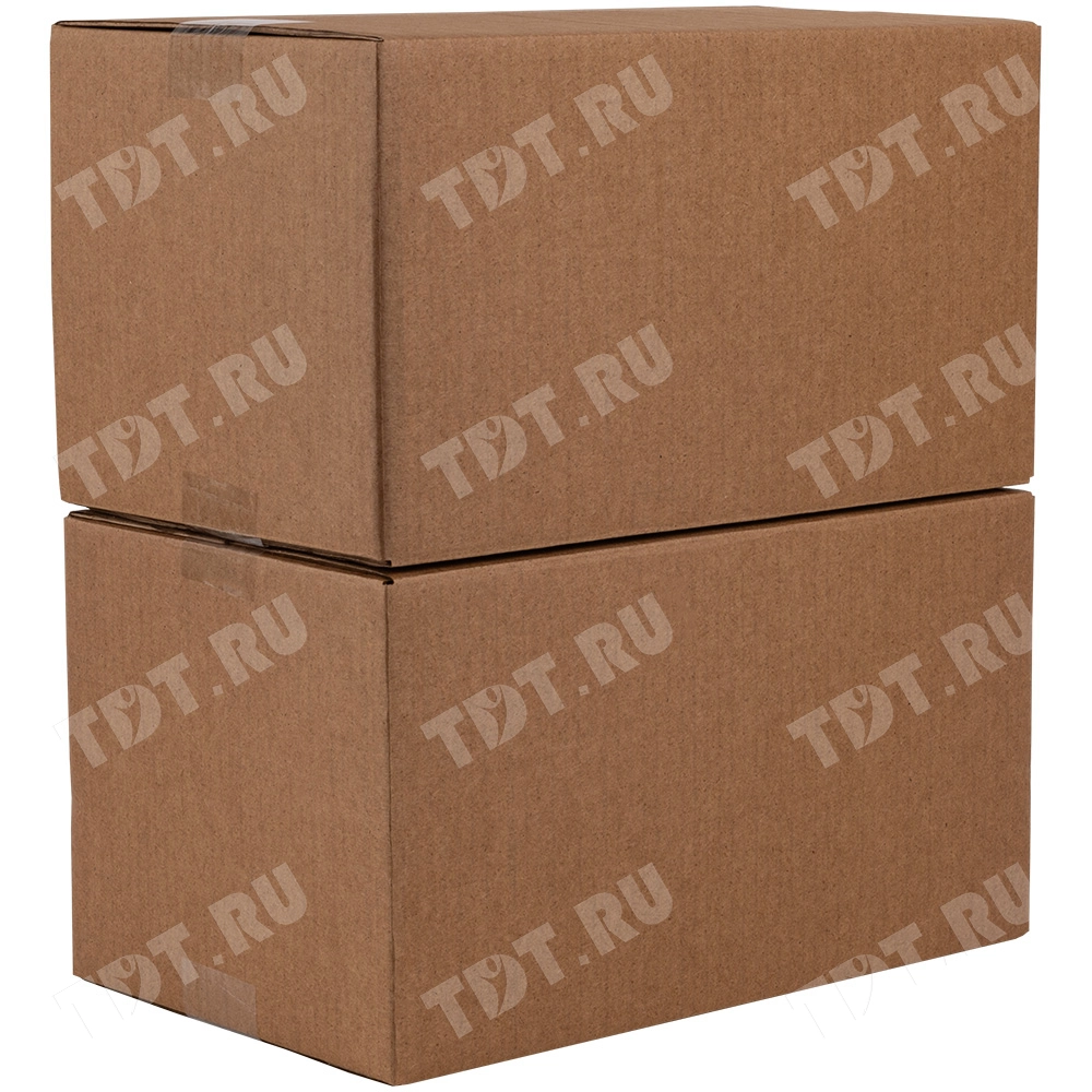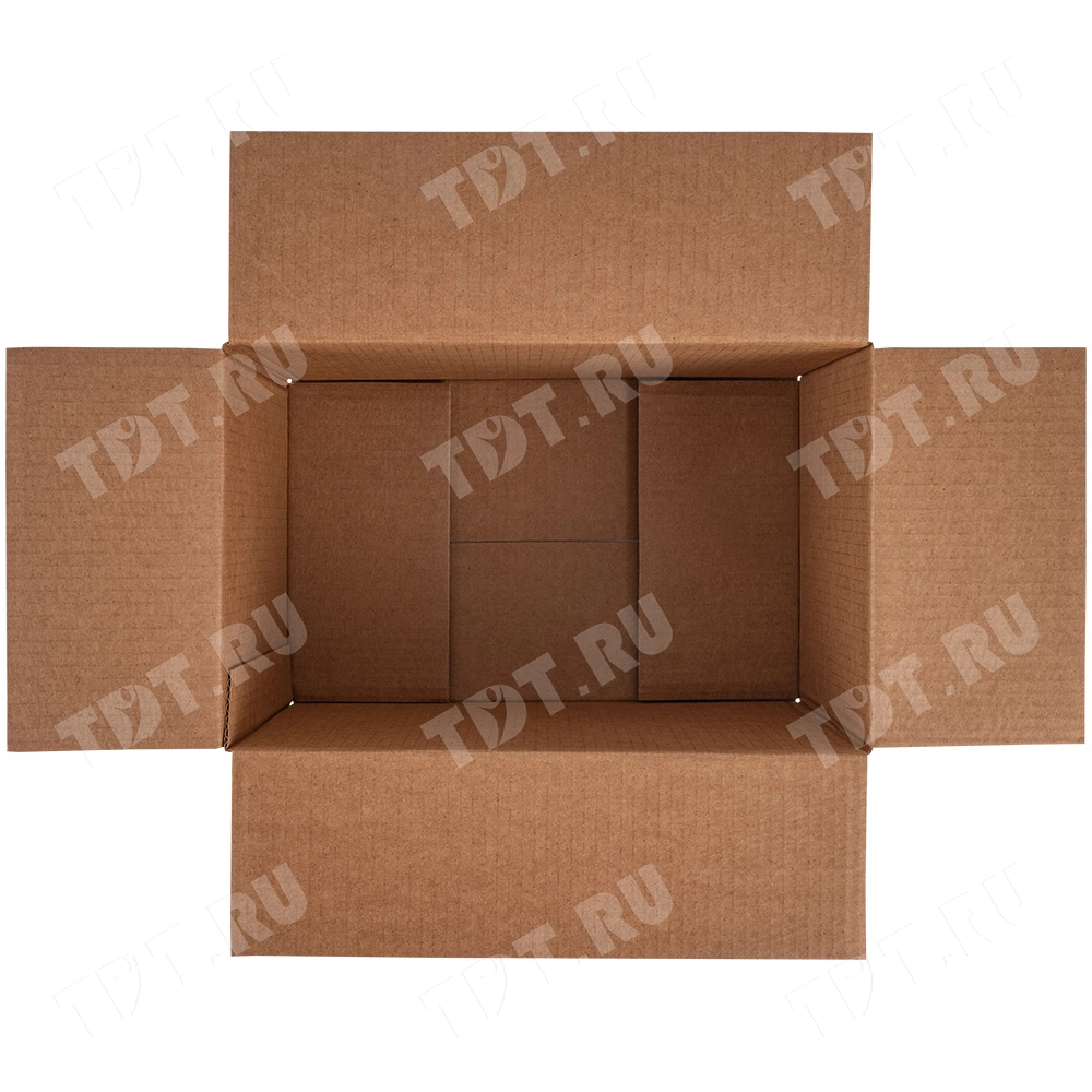 Четырехклапанный короб №164 бурого цвета, длиной 320 мм, шириной 200 мм и высотой 180 мм. Изготовлен из трехслойного картона марки Т-23 В. Полезный объём — 11.52 л.