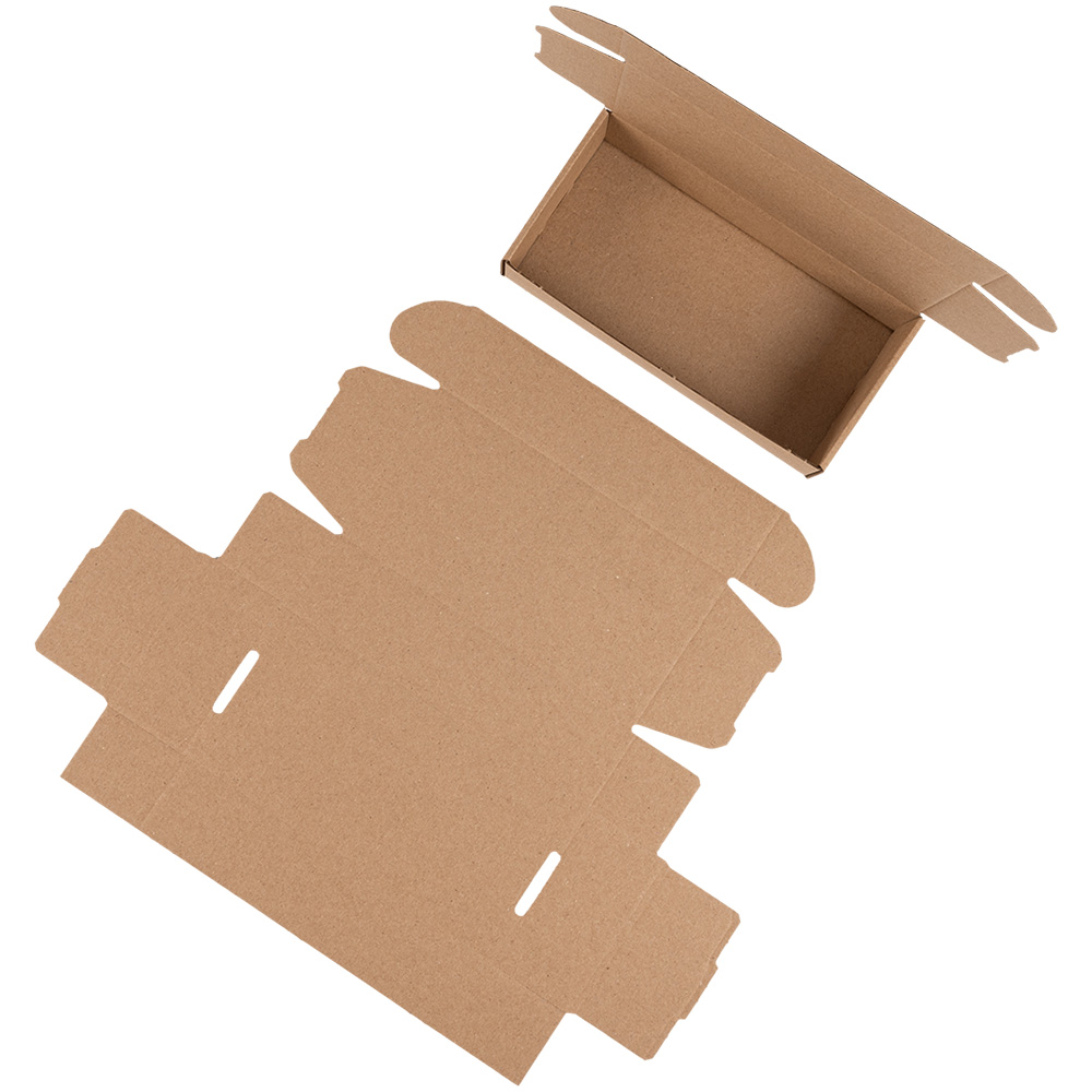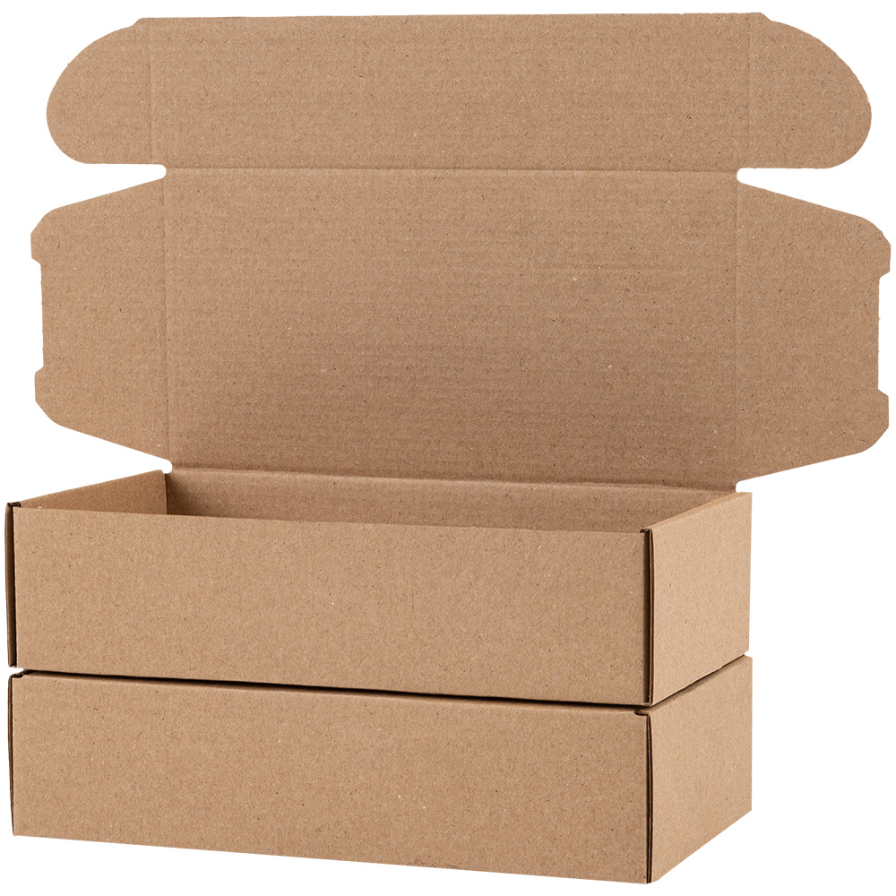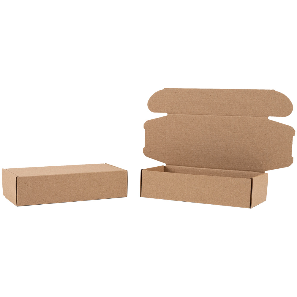 Самосборный короб №170 бурого цвета, длиной 200 мм, шириной 100 мм и высотой 50 мм. Изготовлен из микрогофрокартона Т-22 Е. Полезный объём — 1 л.