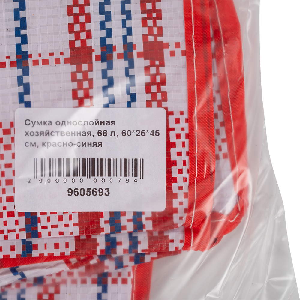 Сумка однослойная хозяйственная, 68 л, 60*25*45 см, красно-синяя