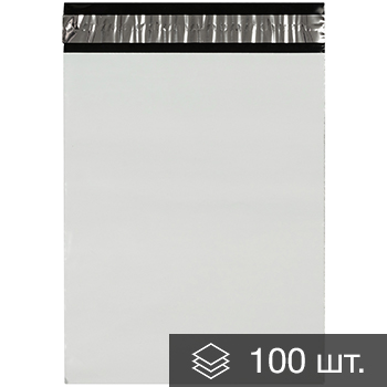 Курьер-пакет белый без печати, без кармана, 120*240+40 мм, 50 мкм, 100 шт.