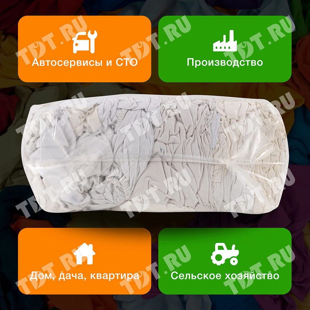 Белая постельная ветошь, весом 10 кг. Материал – 100% хлопок. Производится в России.