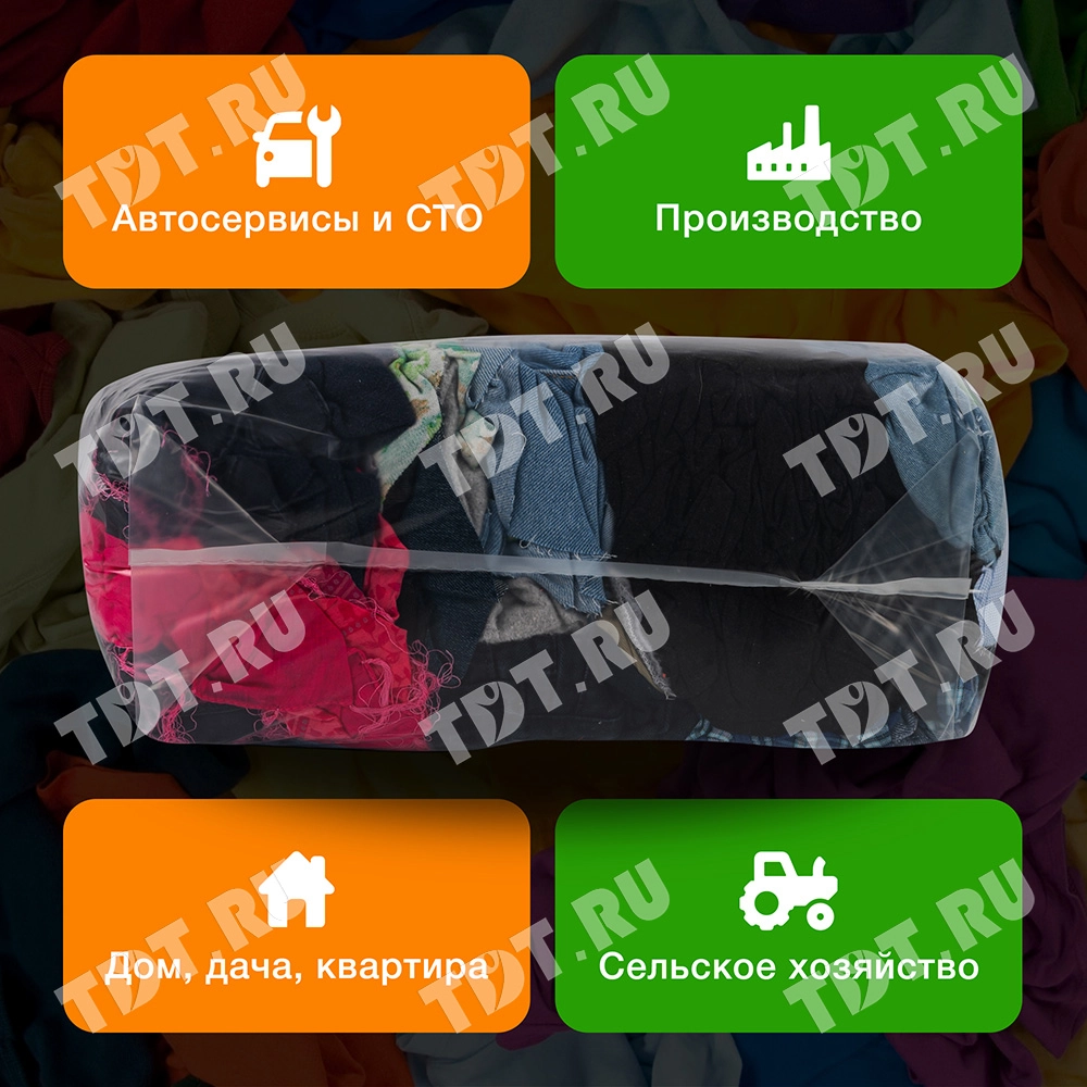 Область применения:Ветошь применяется как обтирочный материал в промышленных цехах, мастерских, на строительной площадке. Обладая хорошими впитывающими свойствами, ветошь позволяет быстро и качественно обтереть масла и смазку с деталей, удалить избыток влаги, очистить загрязнения с рук, станков, рабочих поверхностей.