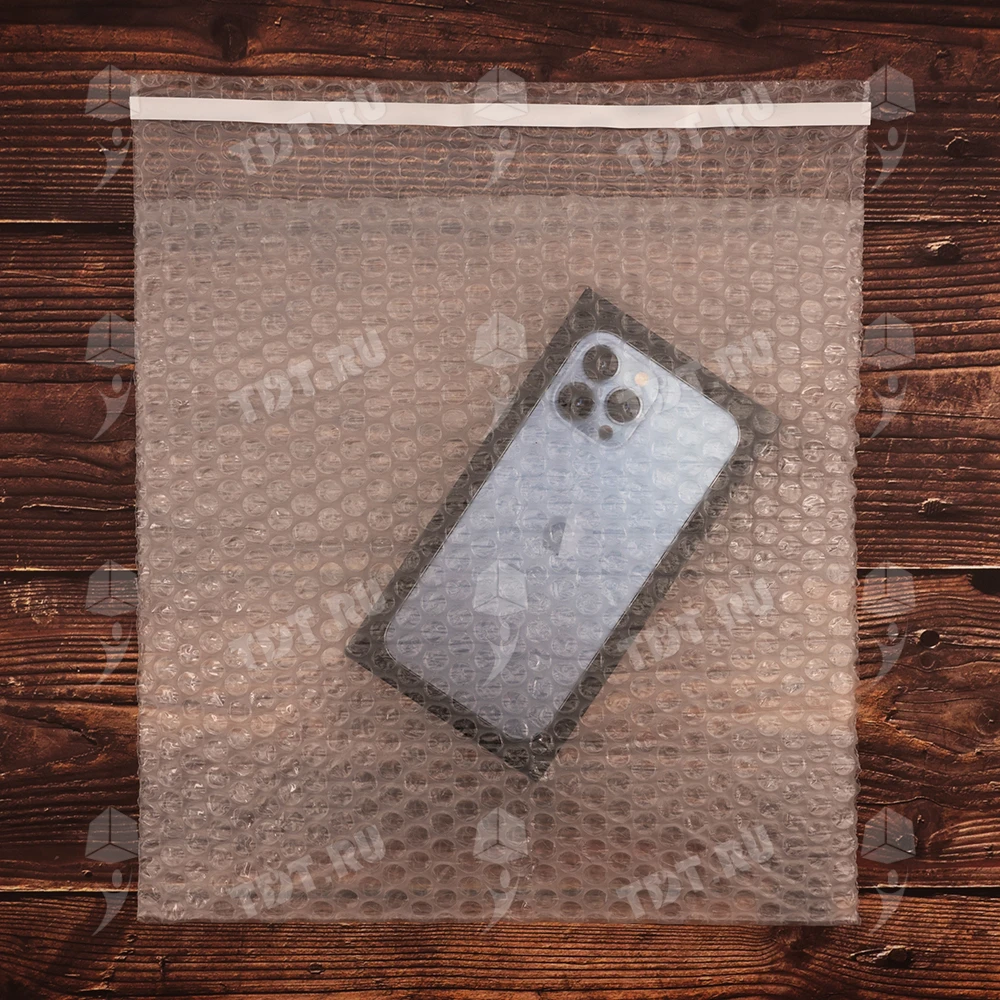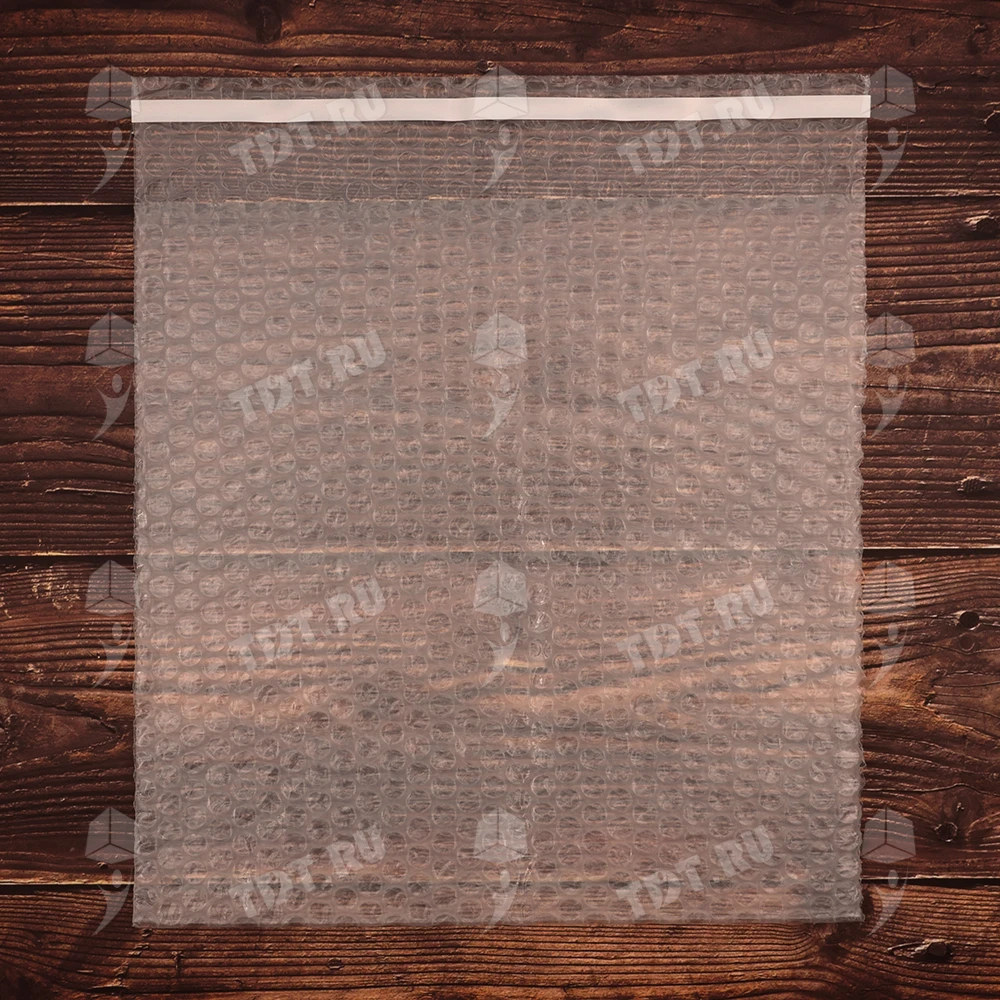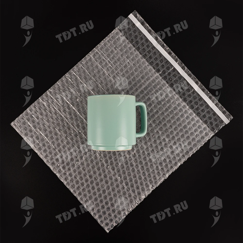 Прозрачный трехслойный воздушно-пузырчатый пакет длиной 20 см, шириной 10 см, с клеевым клапаном 5 см, диаметром пузырька 10 мм, плотностью 60 г/м². Изготовлен из полиэтилена. Производится в России компанией Бета-Куверт.