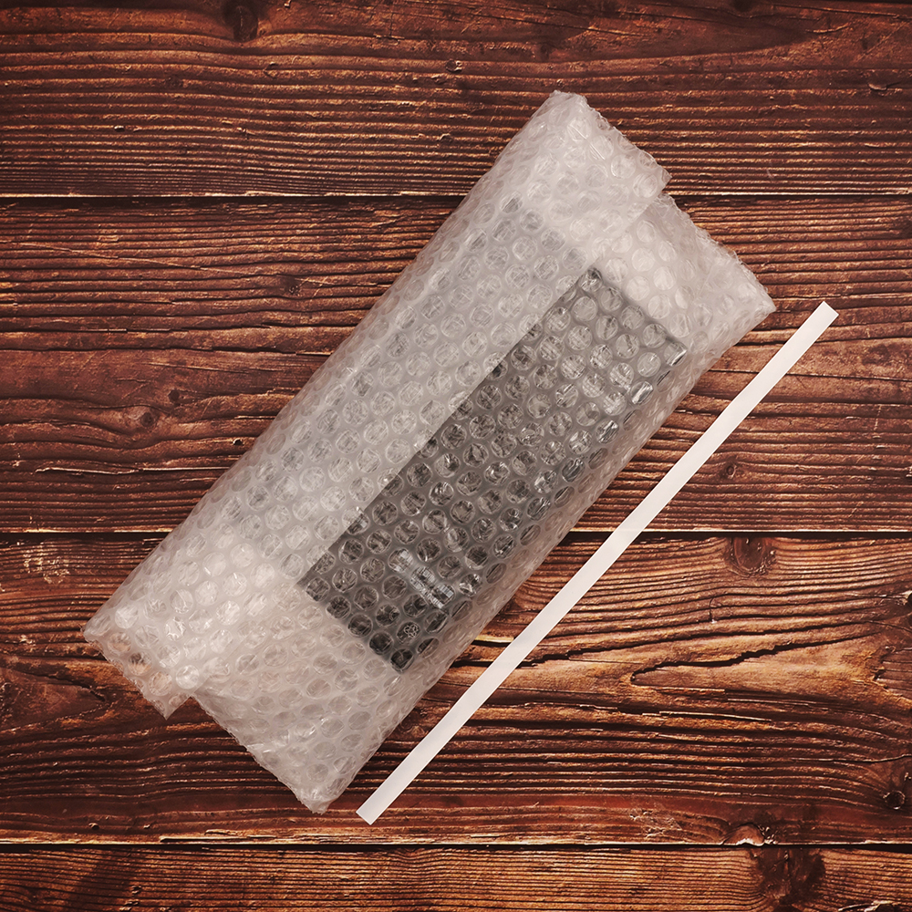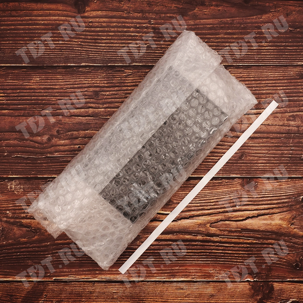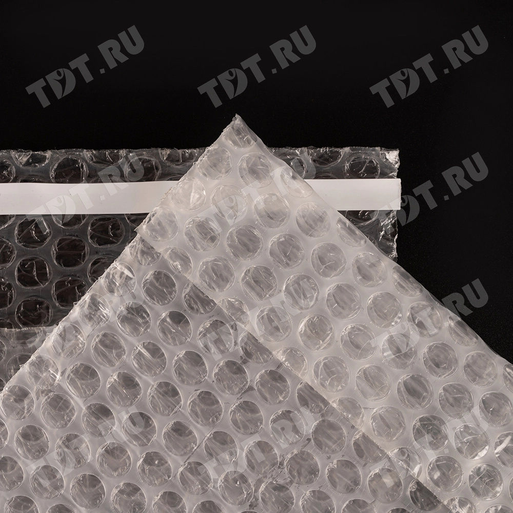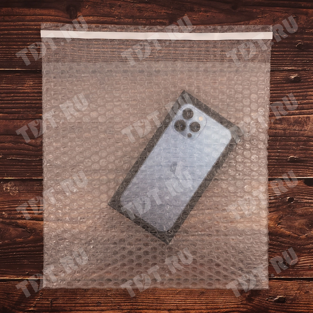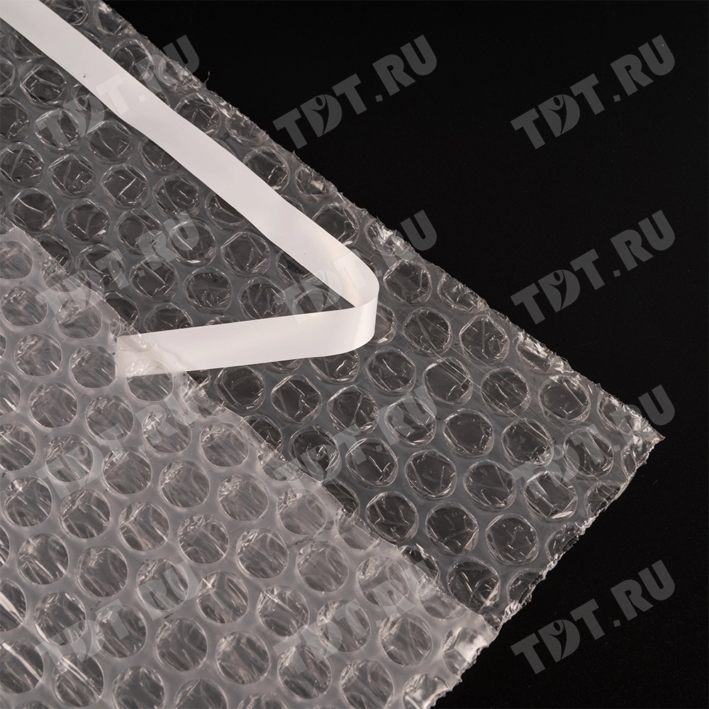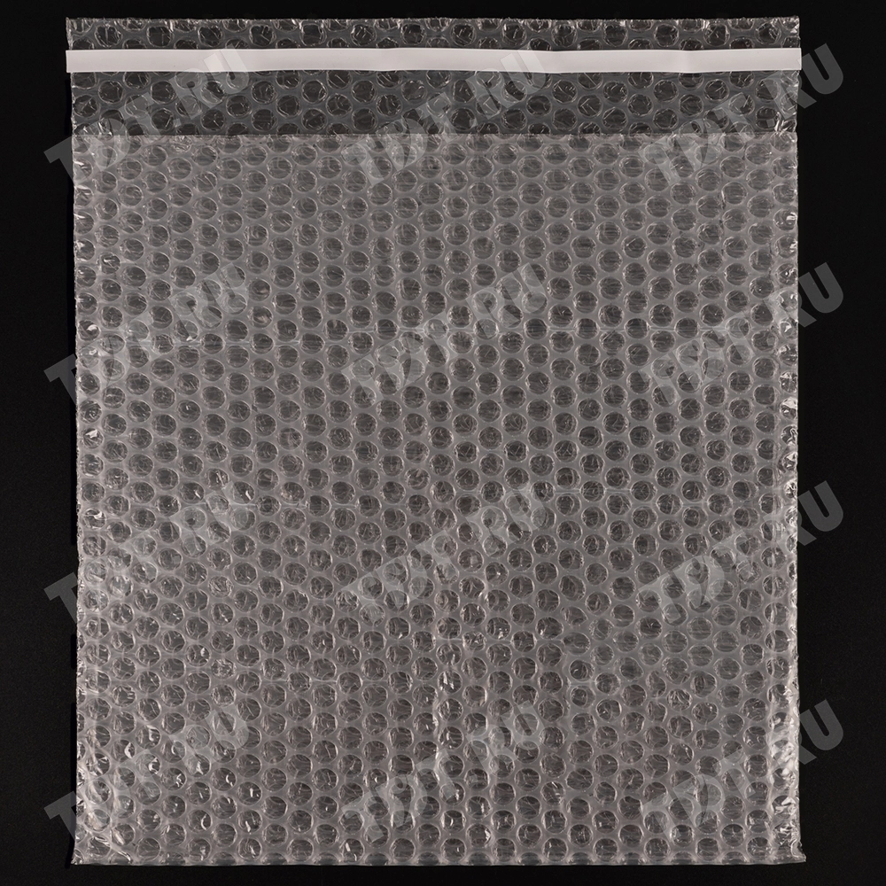 Прозрачный трехслойный воздушно-пузырчатый пакет длиной 10 см, шириной 15 см, с клеевым клапаном 5 см, диаметром пузырька 10 мм, плотностью 60 г/м². Изготовлен из полиэтилена. Производится в России компанией Бета-Куверт.