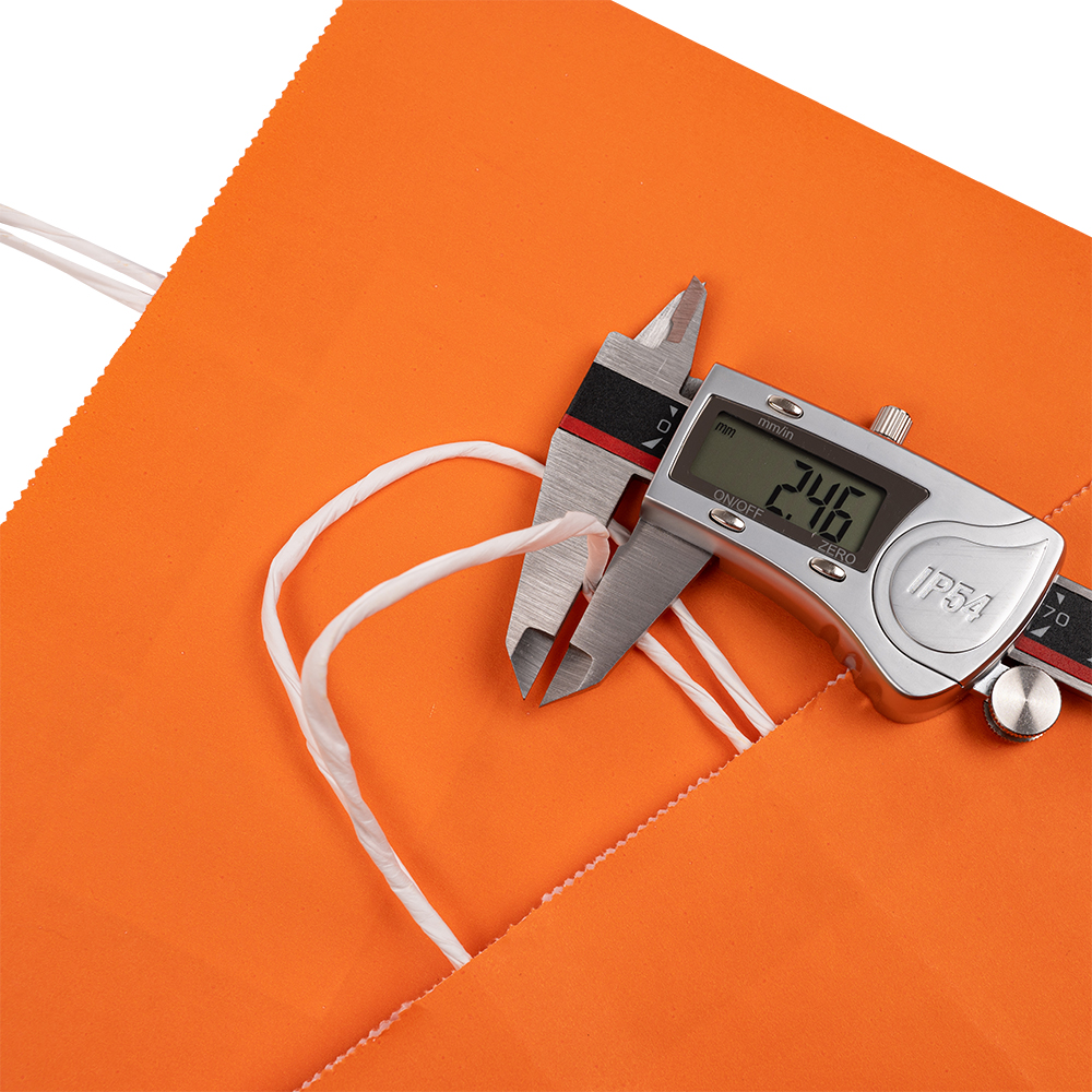 Ручки изготовлены в виде бумажного шпагата путем скручивания и надежным способом закреплены с внутренней стороны, что усиливает прочность, износостойкость и придает пакету эстетичный вид.